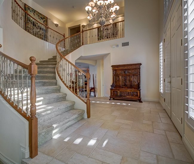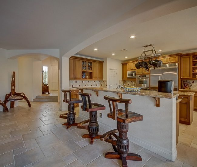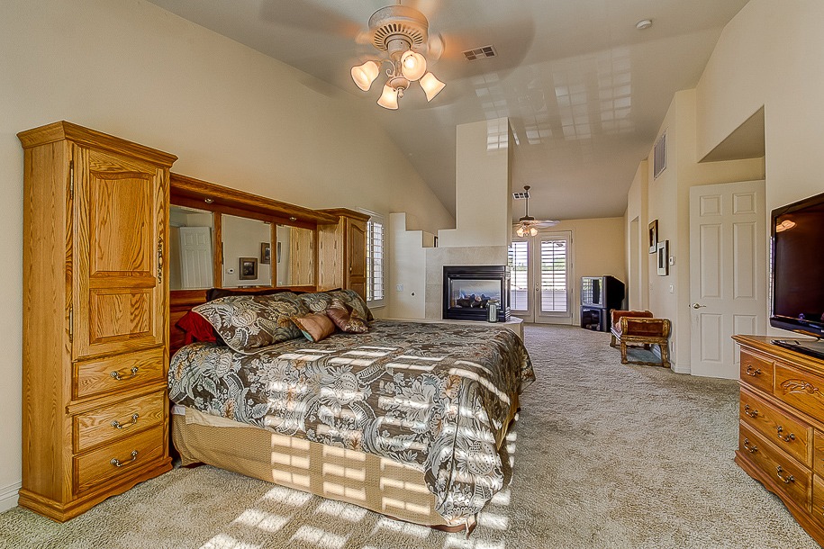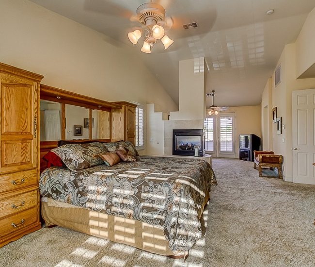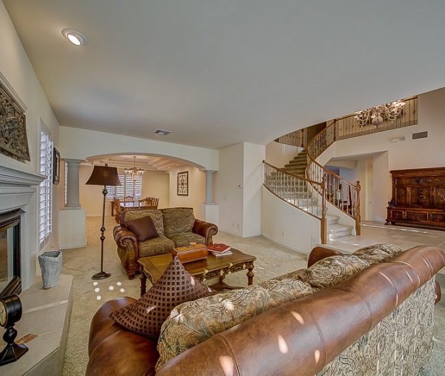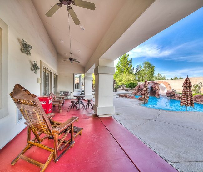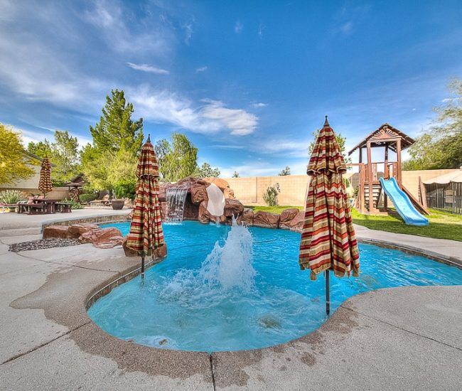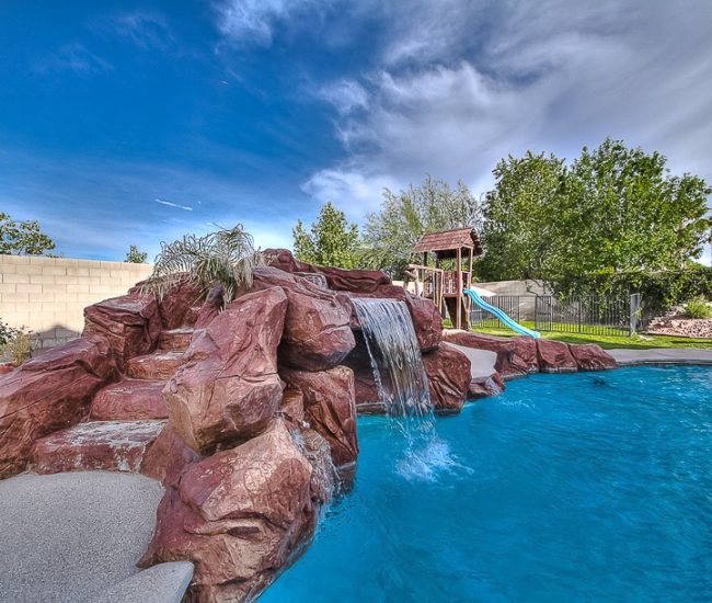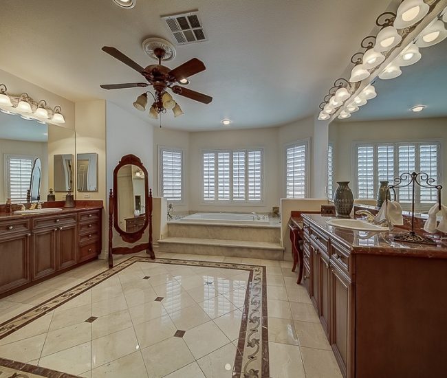 Expansive almost 1/2 acre property in gated cul-de-sac of only five exclusive homes. Just minutes to the South Strip, and close to Eastern Ave and St. Rose Pkwy, with shopping and restaurants. This property boasts 4 bedrooms, 4 baths, and a 4 car garage with potential RV parking. Grand rock facade entry, Versailles pattern ceramic tile floors, and plantation shutters. Open island chefs kitchen features custom maple cabinets, Granite counters and Kitchen Aid stainless steel appliances including built in Sub Zero style fridge, double convection ovens, 5 burner cook top, nook, breakfast bar, and walk in pantry. Master bedroom with 3 way fireplace in sitting area, beautiful marble bath with makeup area, separate spa shower with raised Jacuzzi tub and balcony. Junior master downstairs. Large bonus room with bar, balcony and Mountain Views. Fully landscaped and pavered backyard with Zen Koi Pond, custom built–in BBQ, solar heated pool with waterfall, shade and fruit trees. HOA allows for addition of RV garage or casita. Resort residence priced at $759,900