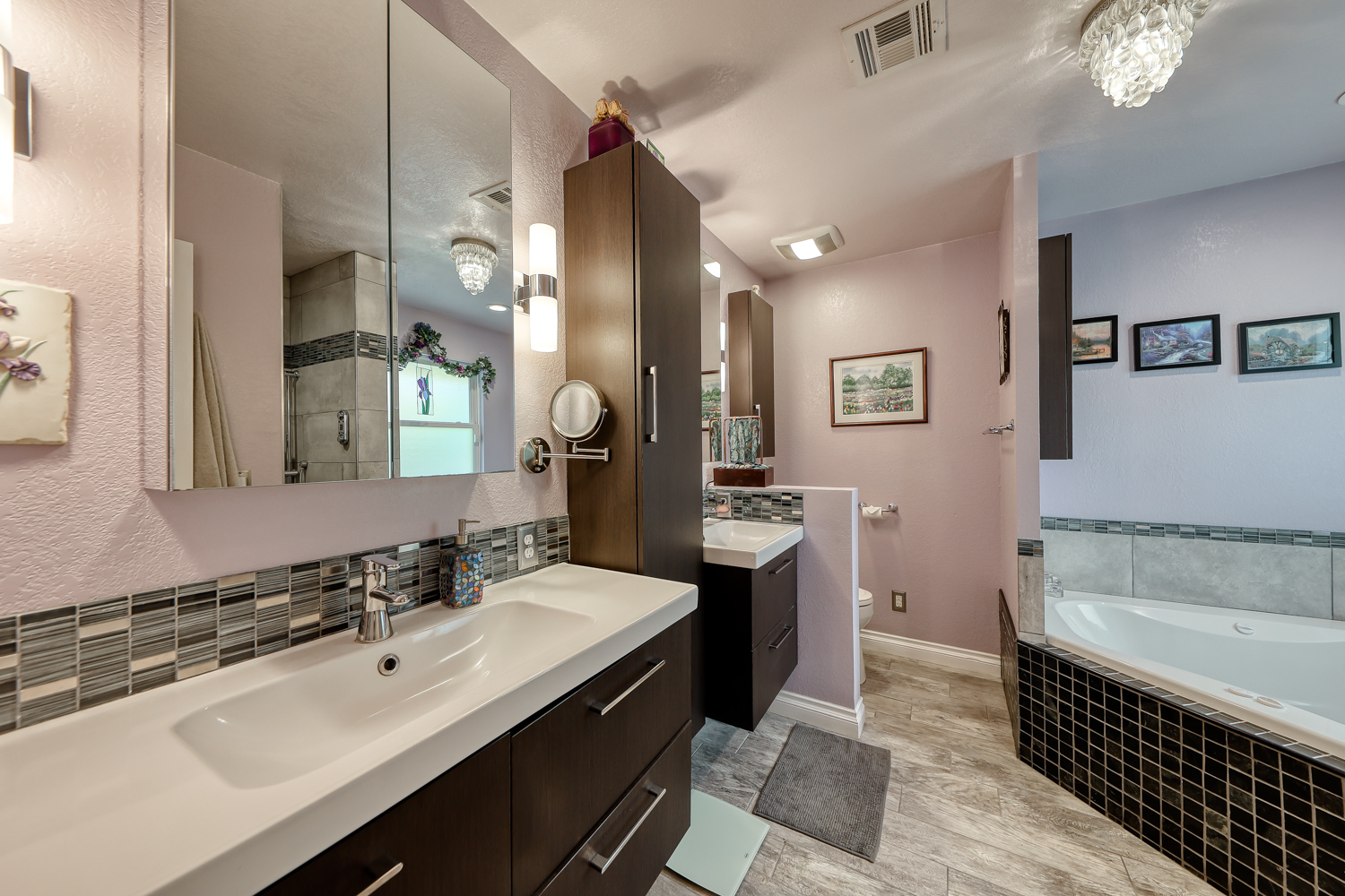 Upgraded laminate and tile floors throughout the majority of the home plus carpet in the bedrooms. Large master suite has an ensuite bath that has been recently renovated with tile surrounds, soaking tub and walk-in shower.