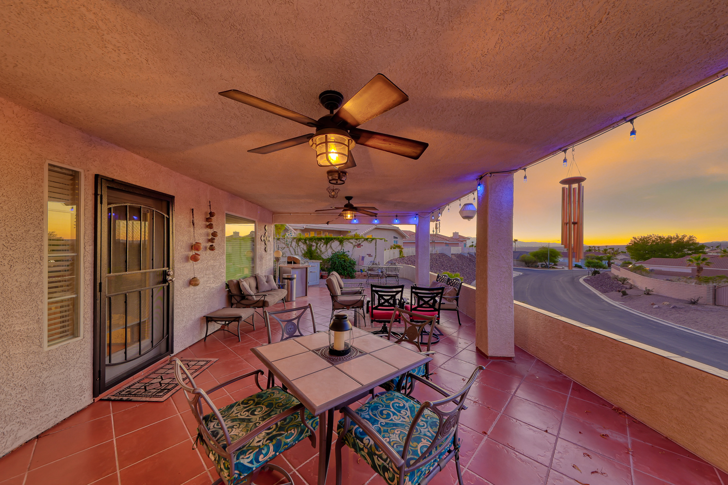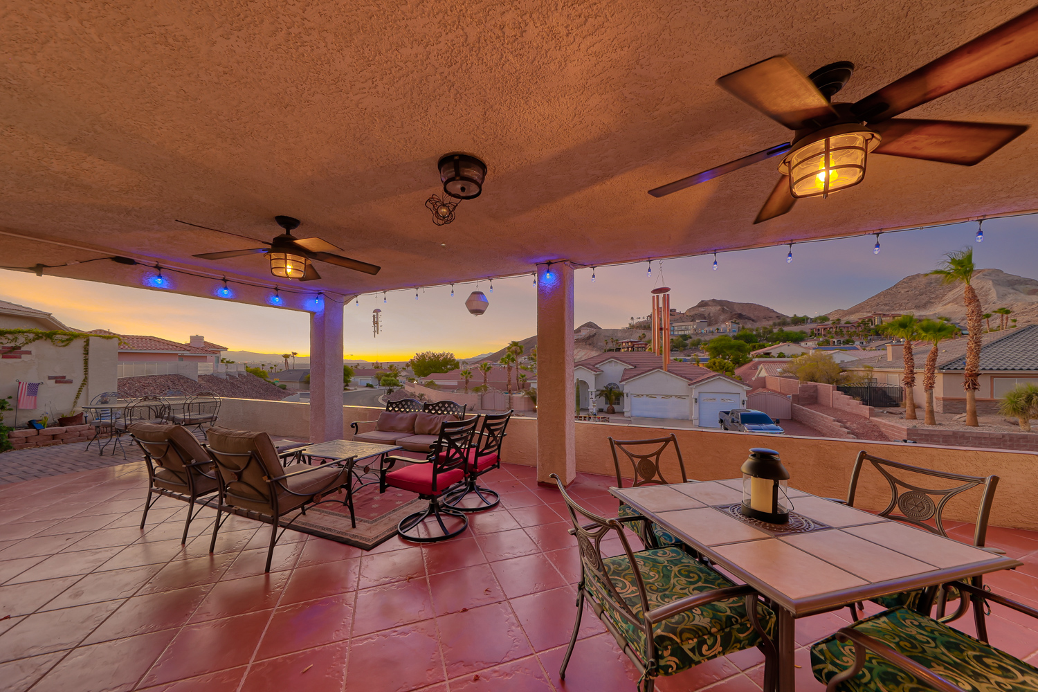 Large open side view deck is fully tiled and offers a great place for a barbecue, with a perfect amount of shade from the full covered patio. Easy maintenance, desert landscaping and backyard with artificial grass. Enjoy the gorgeous city lights and sunset views here.