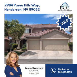 4 By Dulcie Crawford|2024-11-13T06:09:06-08:00November 13th, 2024| Share This Story, Choose Your Platform! FacebookXRedditLinkedInWhatsAppTumblrPinterestVkEmail Dulcie Crawford NV Lic #S.0042780 Signature Real Estate Group Buyers: 702.505.2775 Sellers: 702.505.2775 Office: 702.568.2530 Get Directions to My Office: 2200 Paseo Verde Pkwy Suite 300A, Henderson, NV 89052 FREE Real Estate Market Report Get in Touch