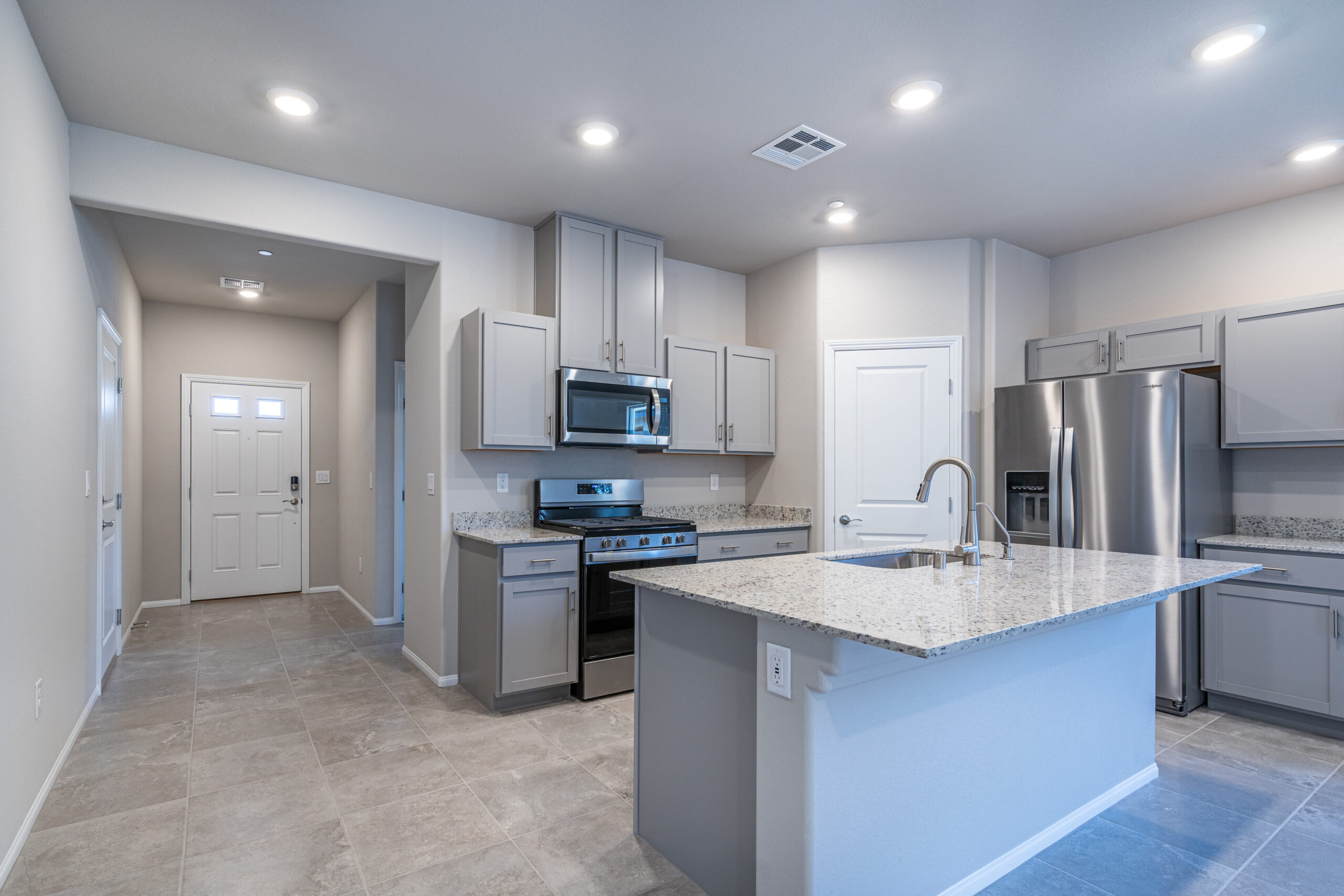 Grove at Willow Ranch is a collection of single-story, single-family homes that range in size from 1,500 to 1,825 square feet with 3 to 4 bedrooms and 2-car garages. These modern ranch style homes include designer features, upscale finishes, granite countertops, stainless steel appliances, smart home automation and covered patios.