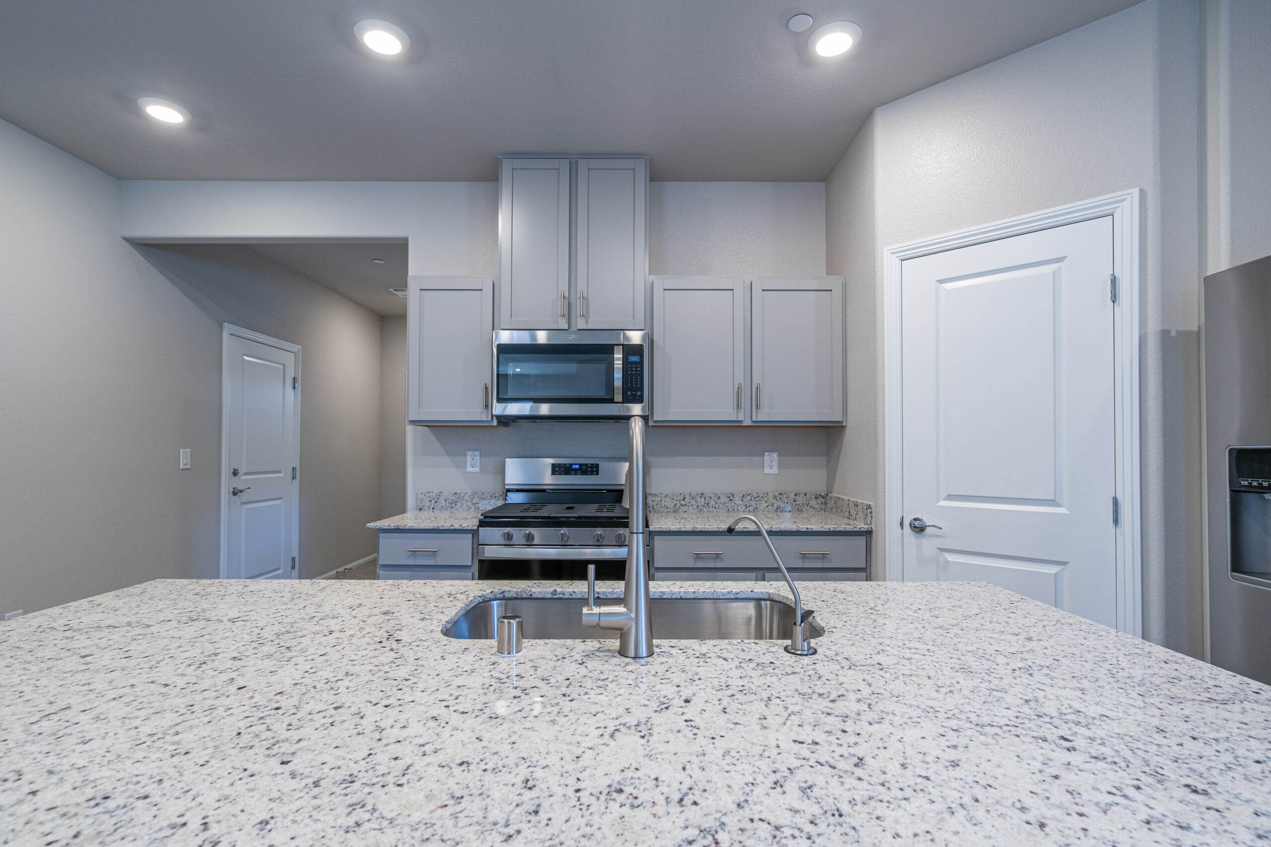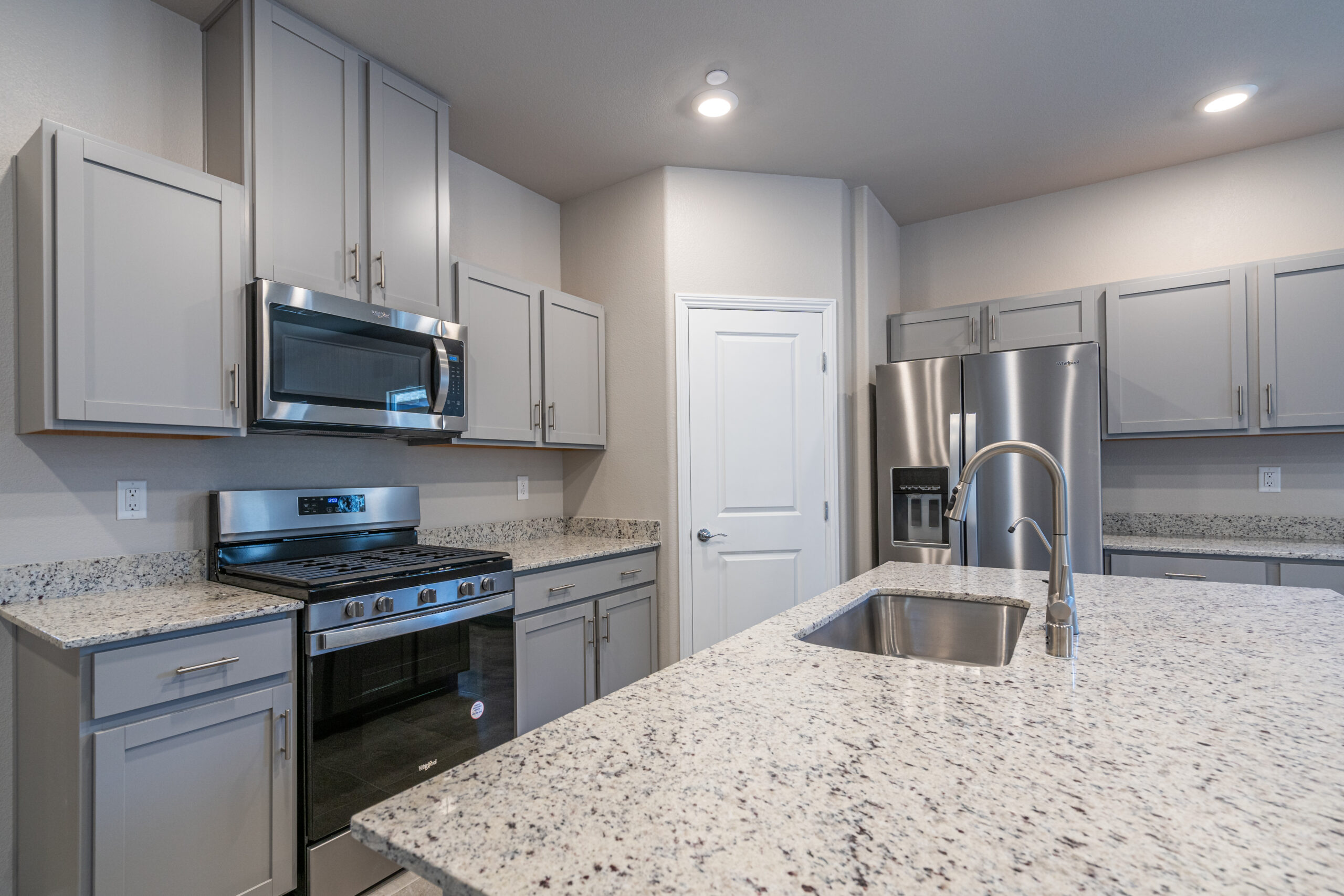 Open kitchen w/ large island opens to a great room concept & separate formal dining area. Dallas White Granite countertops, Whirlpool stainless steel microwave/stove/dishwasher package. Cooks preferred stainless steel single basin sink & a pull-out spray faucet. Plus a Stainless French door refrigerator & freezer.