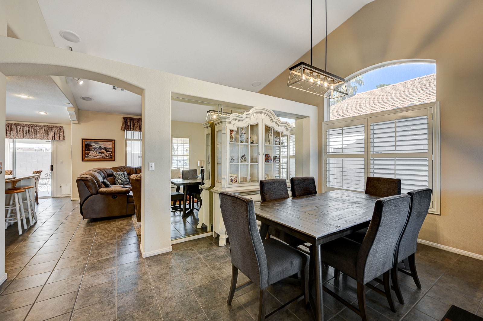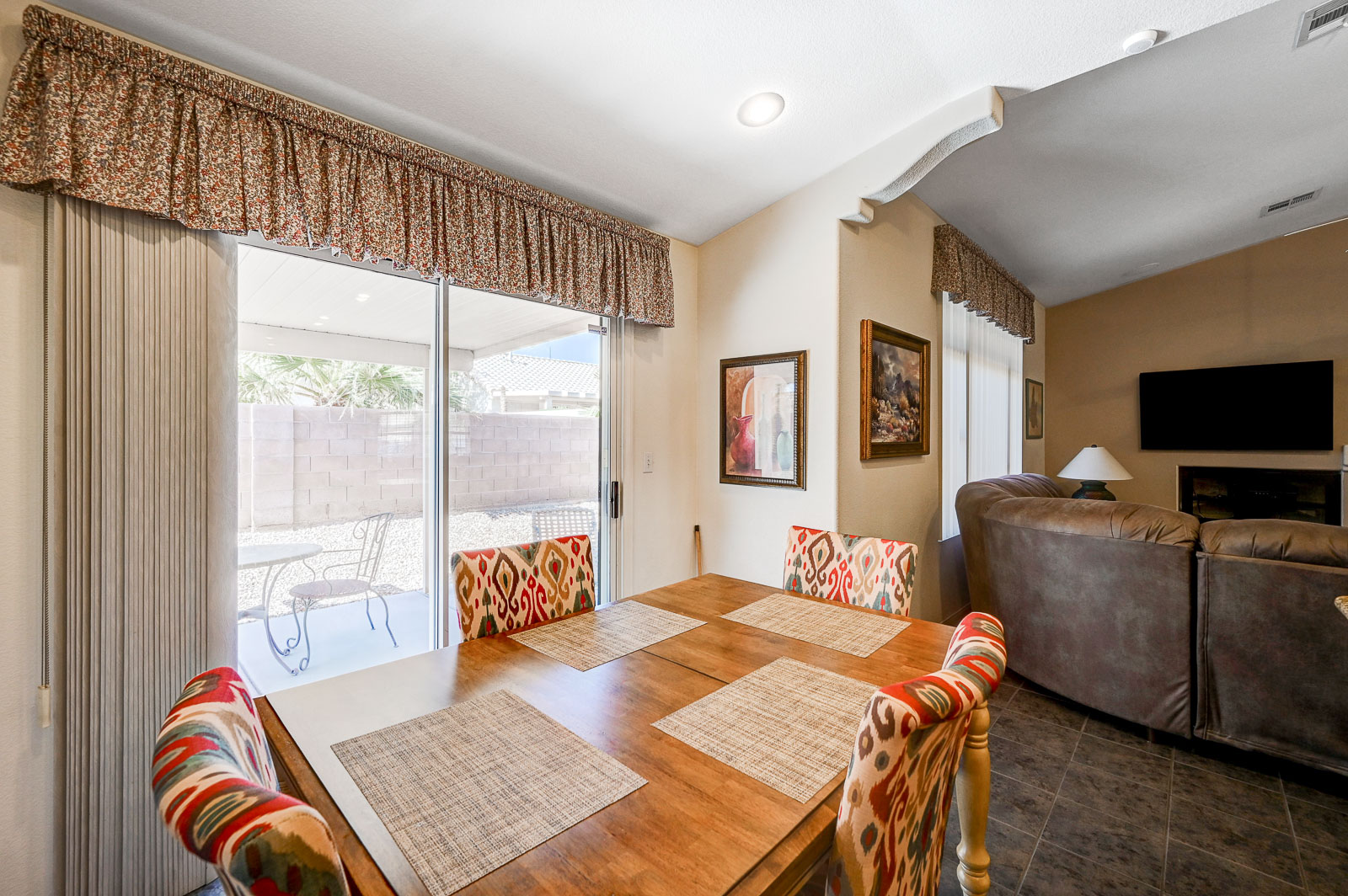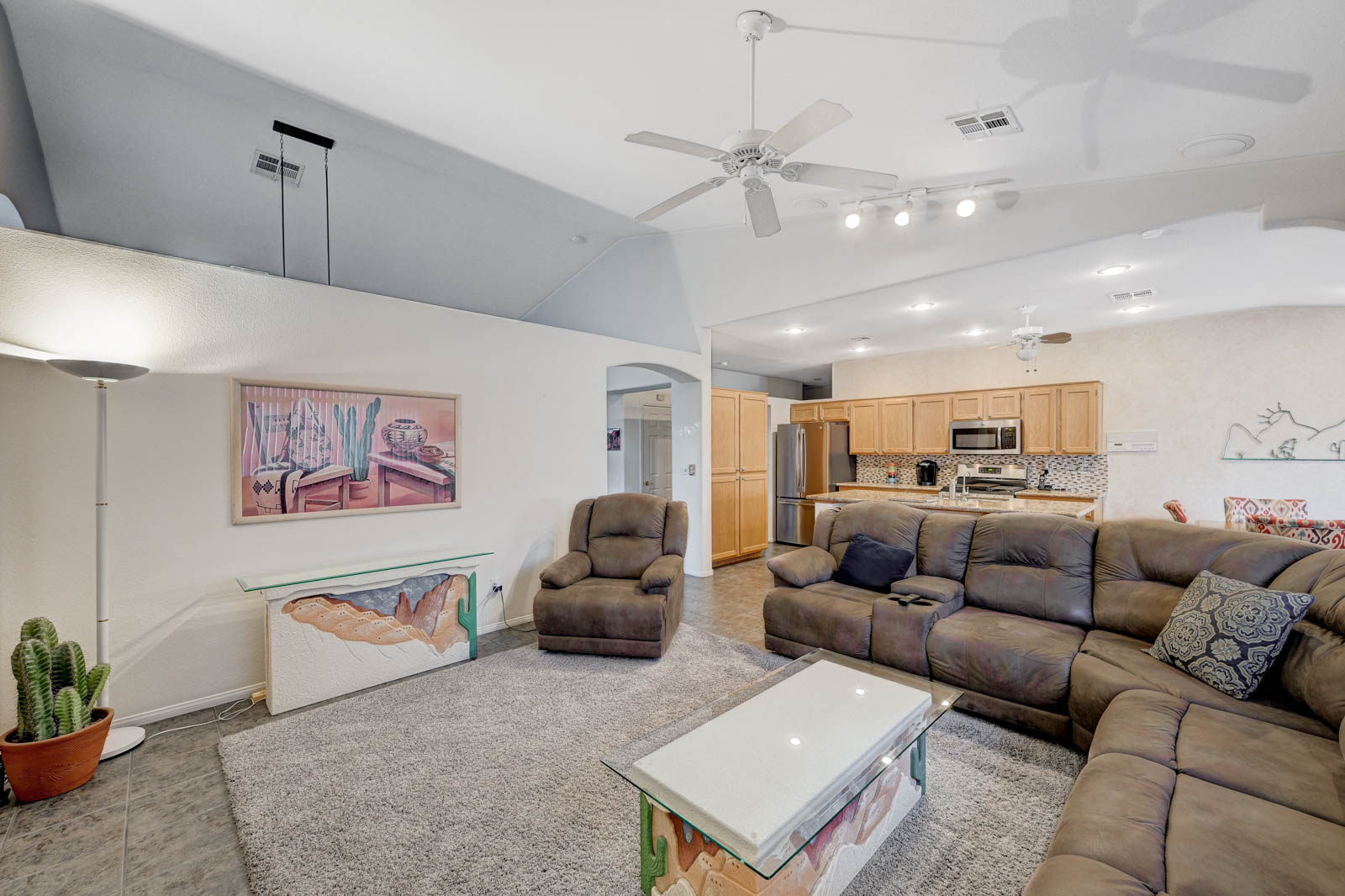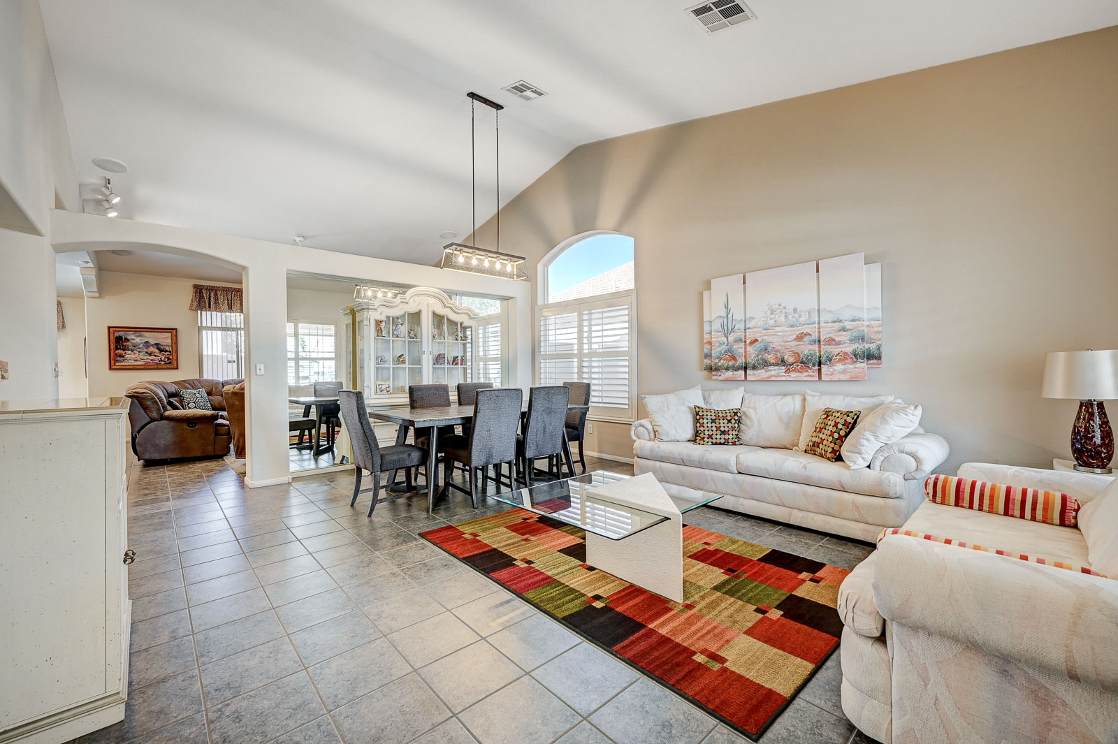 Front living room w/ dining area & separate family room w/ Gas fireplace & ceiling fans in all bedrooms.