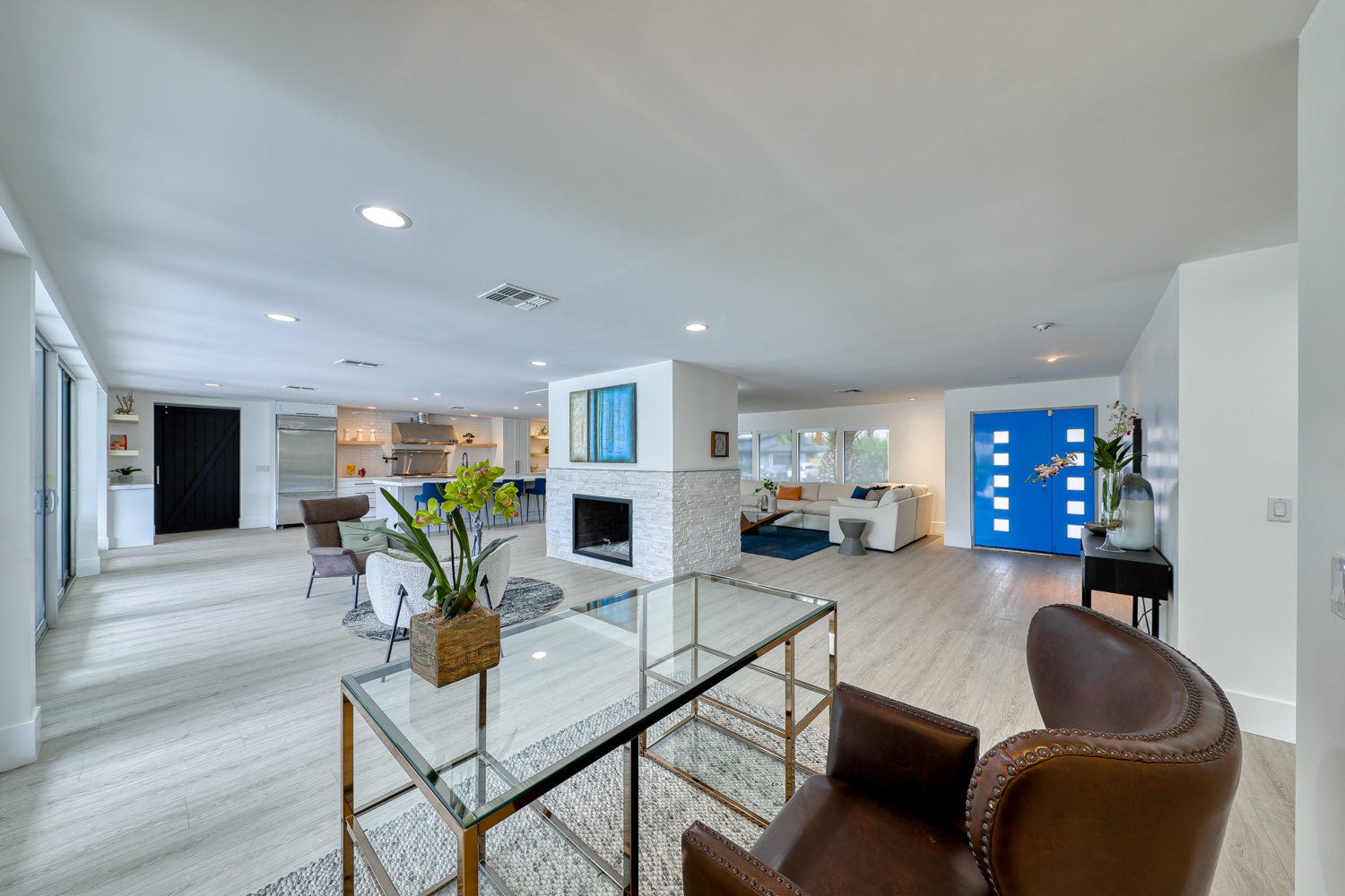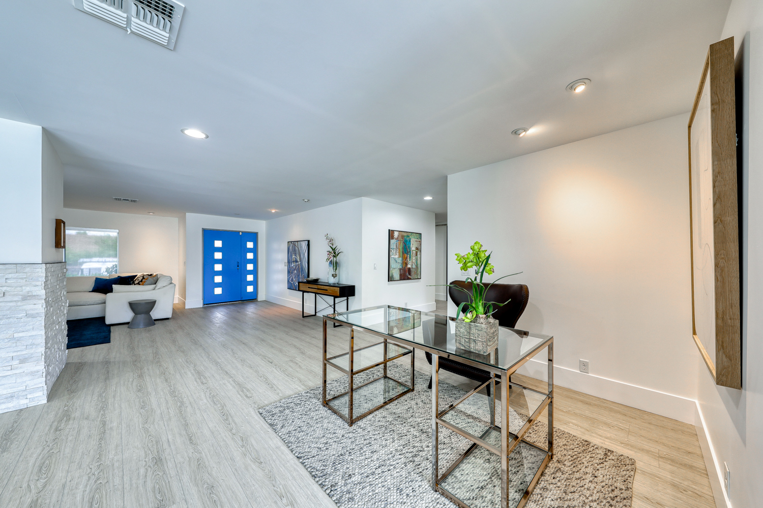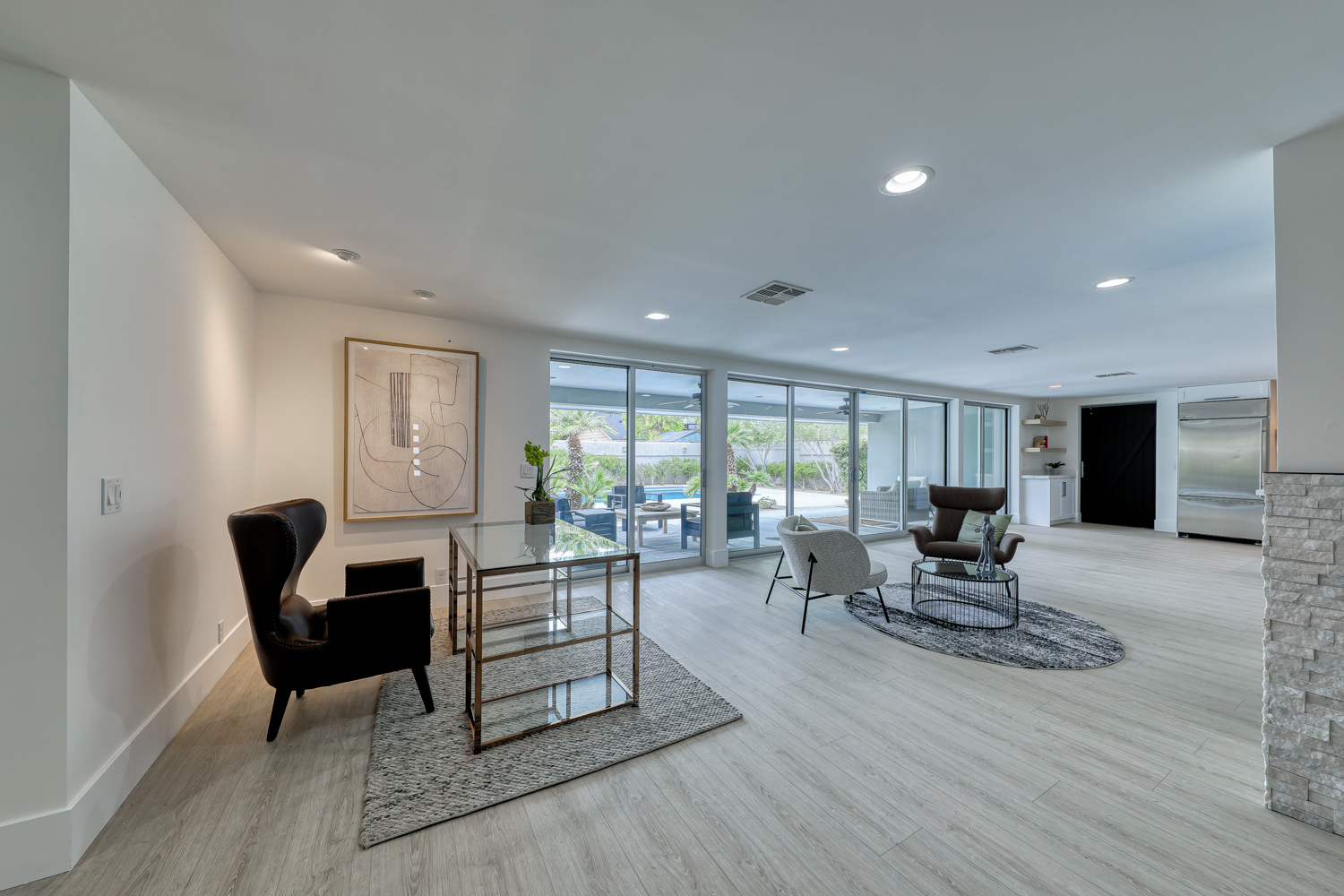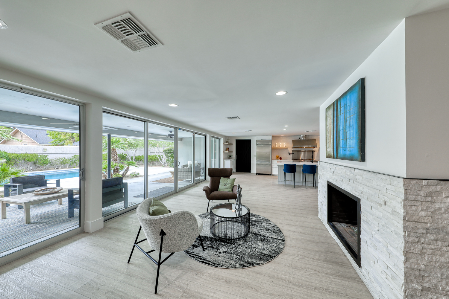 Open Concept Living w/ Dual Great rooms, the perfect Home Office workspace that looks out over the 40 ft sliding glass doors to the tropical yard w/ magnificent Pool & shaded Patio area.