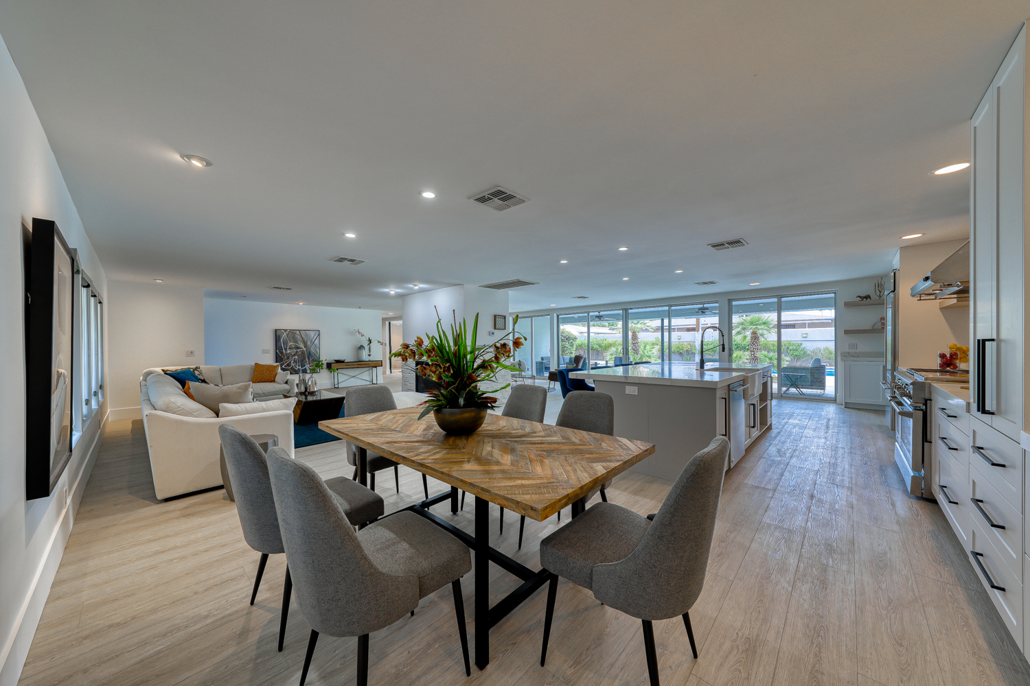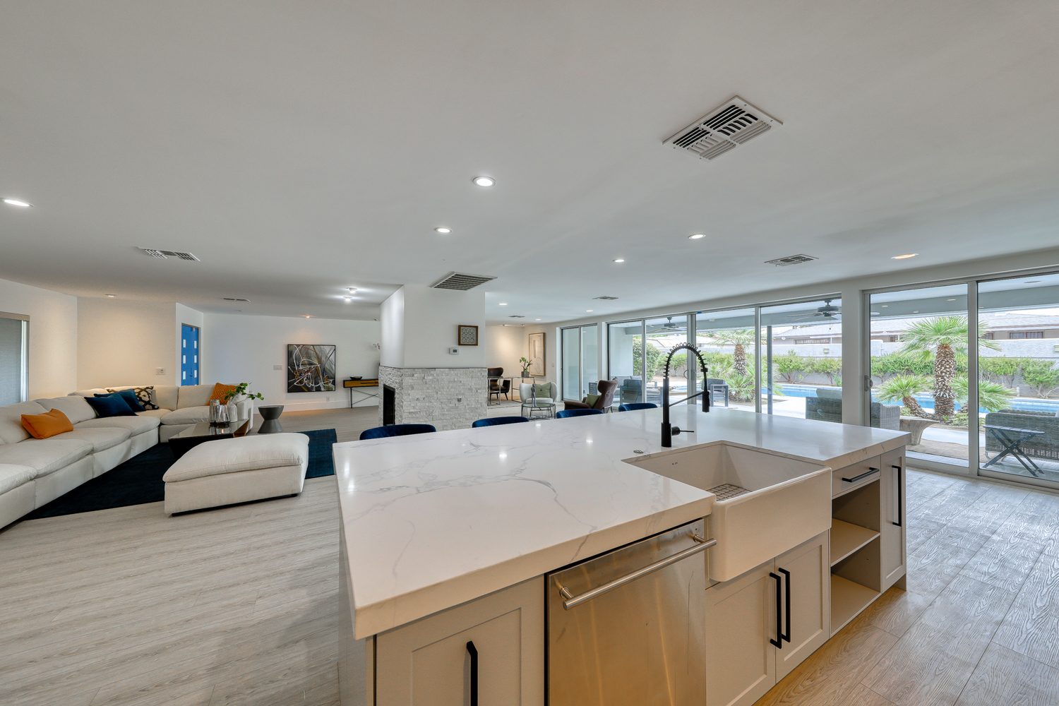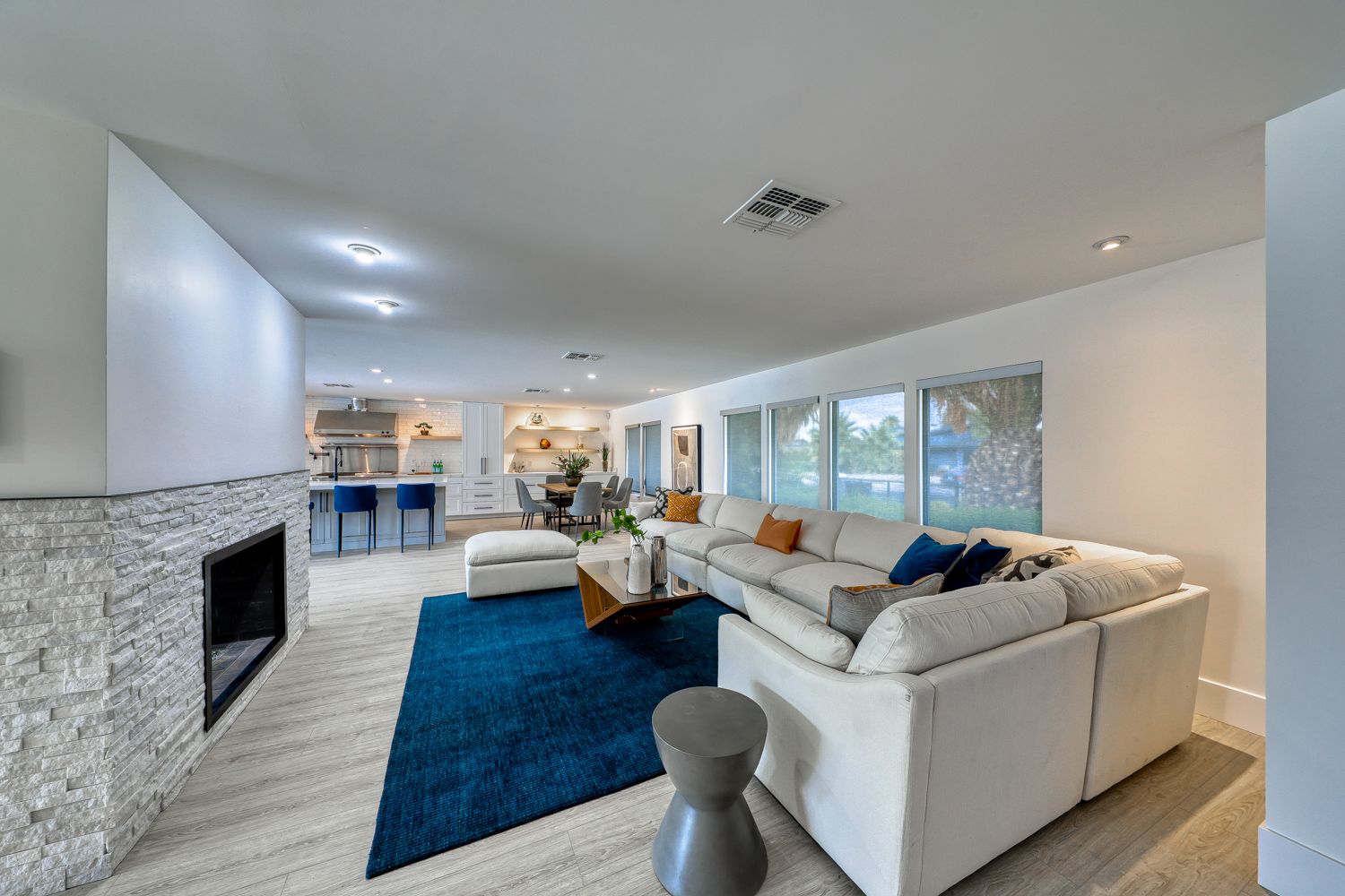 Open Concept Living w/ Dual Great rooms, the perfect Home Office workspace that looks out over the 40 ft sliding glass doors to the tropical yard w/ magnificent Pool & shaded Patio area.