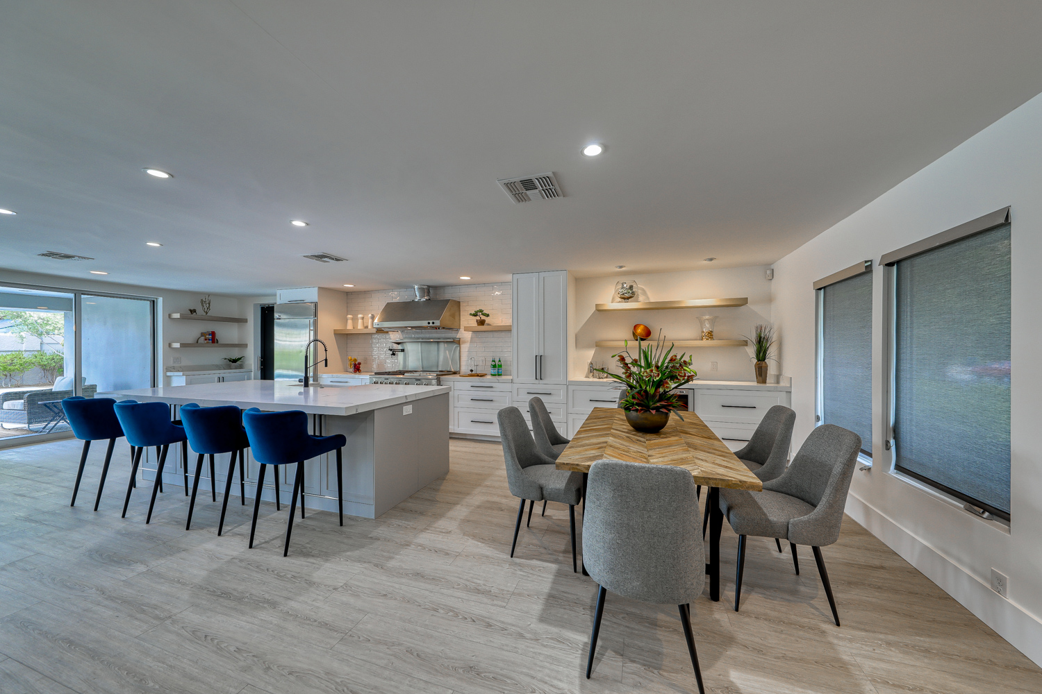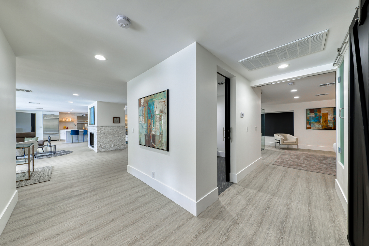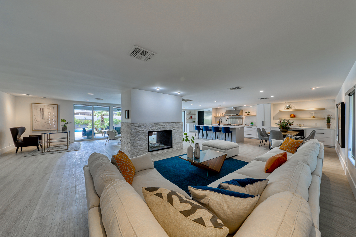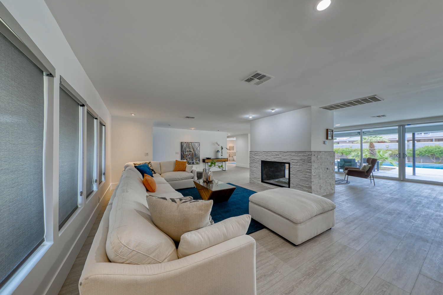 Open Concept Living w/ Dual Great rooms, the perfect Home Office workspace that looks out over the 40 ft sliding glass doors to the tropical yard w/ magnificent Pool & shaded Patio area.