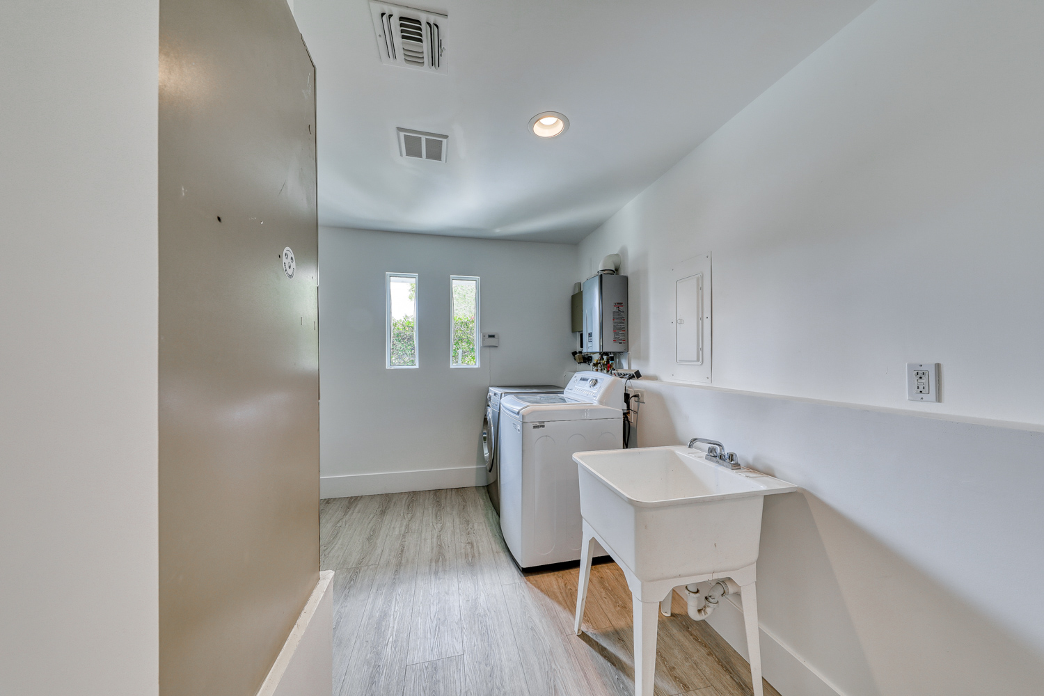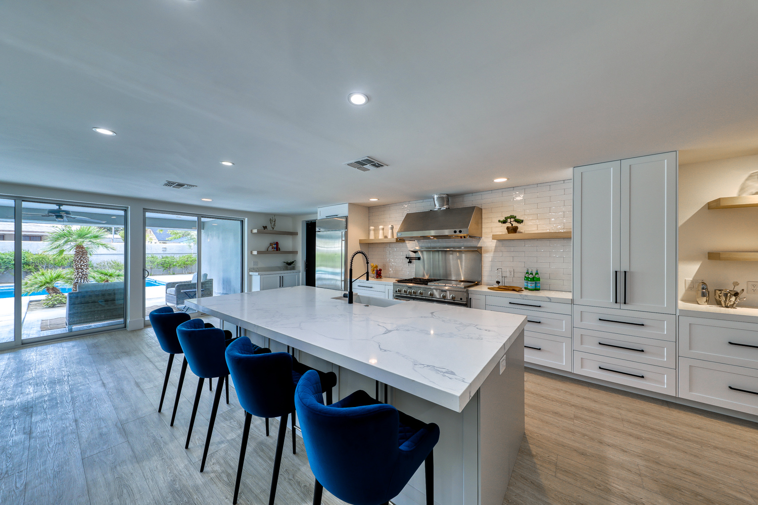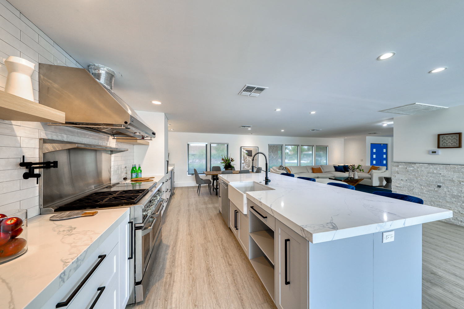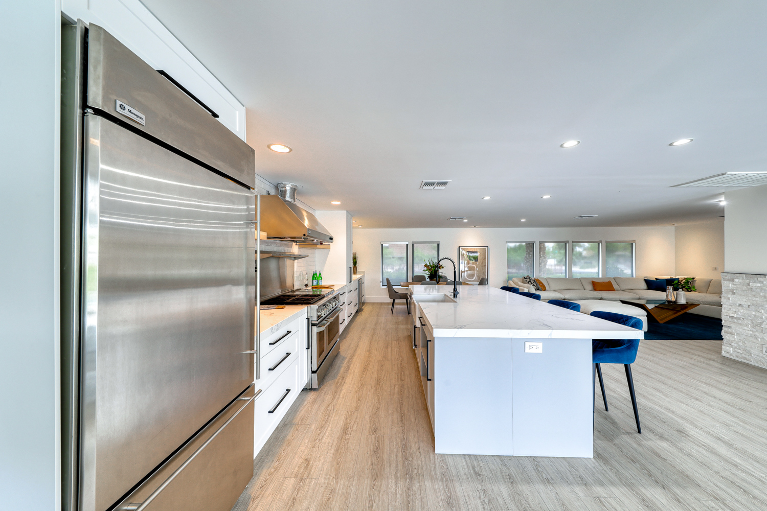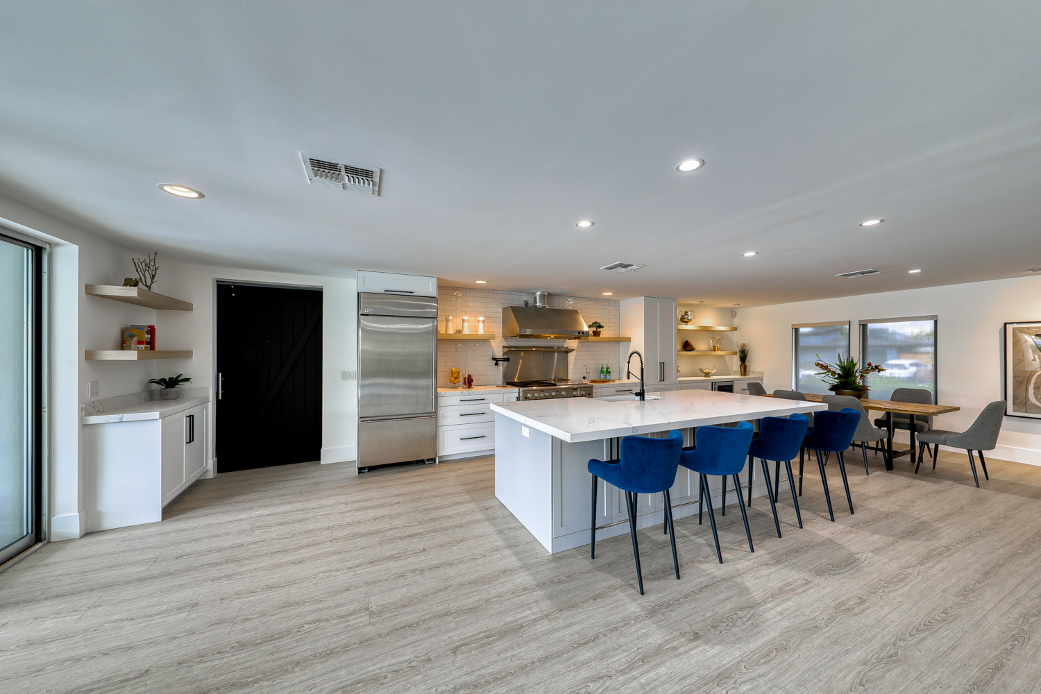The Top Quality finishes include level 5 drywall, all new designer kitchen cabinets w/ Raphael Quartz countertops & contemporary plank laminate flooring. The kitchen is a showplace w/ Art niches & Beachwood shelving plus GE Commercial Grade stainless steel appliances including built-in fridge freezer.