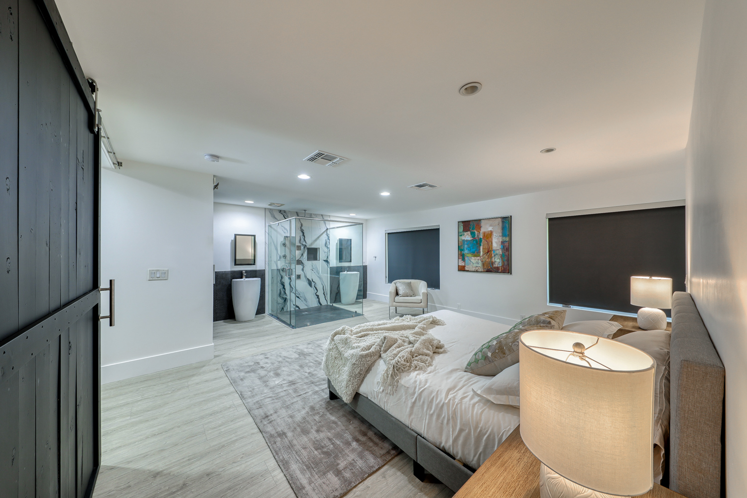 1408 S. 6th Street, Las Vegas, NV 89104 is a one-of-a-kind Custom Home in UNIQUE Downtown LV w/ Super Upgrades! This Fully Fenced Property is like a Mini Estate that features an open layout w/ a Custom Jerusalem stone Two-Way Fireplace.