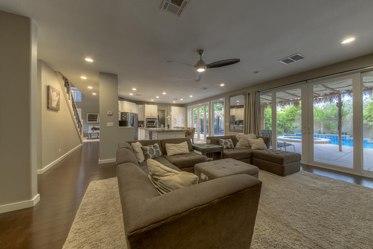 Gorgeous home fully renovated from the ground up! 5 beds plus LOFT, 4 baths, 2 story in the heart of Anthem Coventry. Beautiful mountain view and tropical pool/ spa property with courtyard entrance leading to custom front door. Designer bamboo wood flooring throughout and contemporary tile in master bath. Custom modern electric fireplace in family and living room. Milgard Tuscany French door in family room leading to luxury white kitchen. Features shaker style Craftsman wood cabinets, designer granite counters, sit down island, and stainless steel Kitchen Aid and Thermador appliances. Double ovens and plenty of built-in cabinet space. Custom sliding door for indoor outdoor living. Large private oasis backyard features mature lush landscaping, a custom waterfall pool and spa system and gazebo area. Double upstairs master suites and bath with white cabinets and custom hardware, double vessel sinks, glass shower and deep basin soaking tub. JR master bed with upgraded guest bath and custom tile backsplash. Expanded floor plan with large loft space. Energy efficiency built with 16 seer AC units, dual pane windows, soundproof walls, 6” LED recess lighting, new top of the line ceiling fans and a brand new roof. Large 3 car garage includes epoxy floors. Community features include a huge park with pet friendly walking trails and playground located nearby Del E. Webb Middle School. Zoned for high ranking schools including Lamping Elementary, Del Webb Middle, and Coronado High School.
