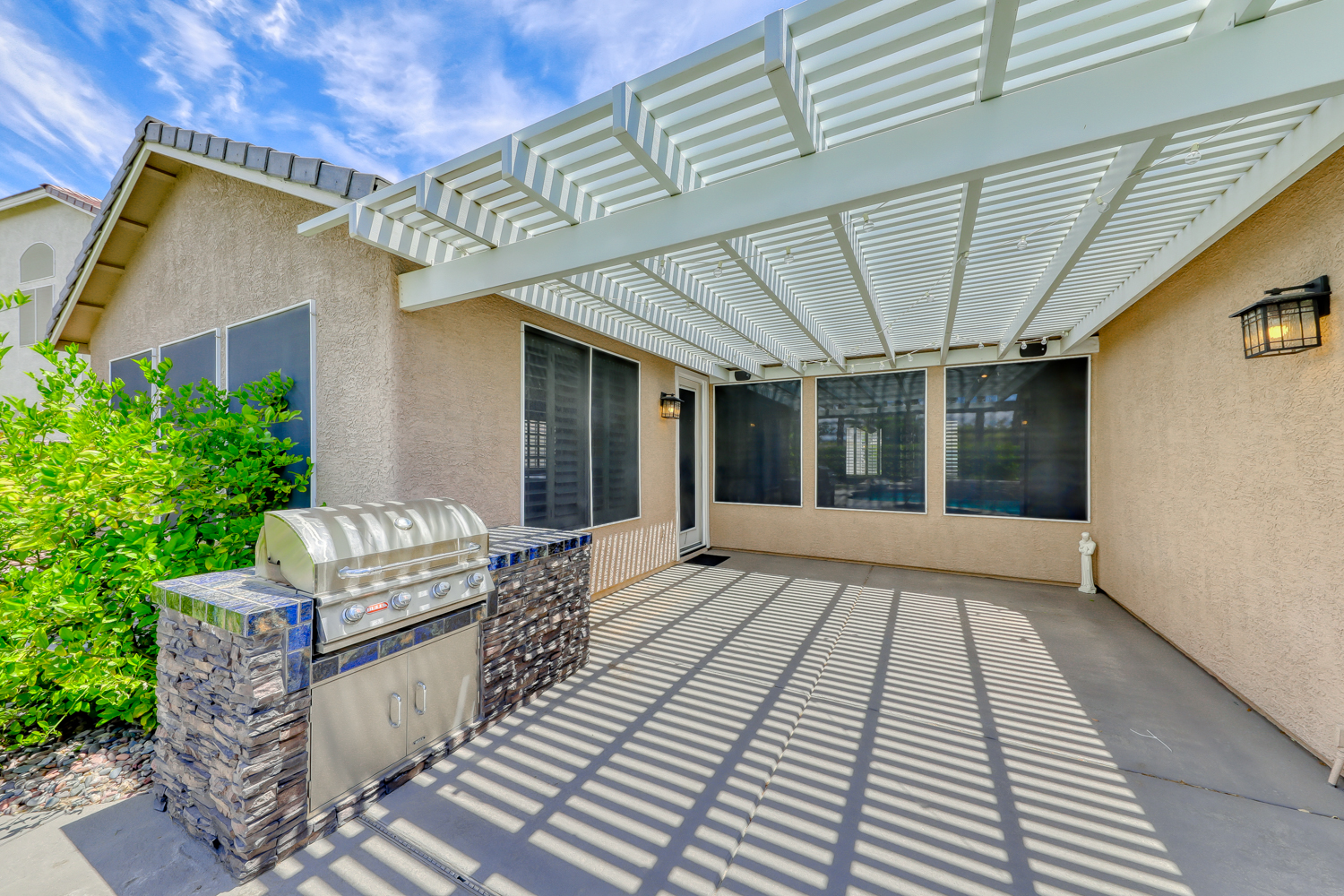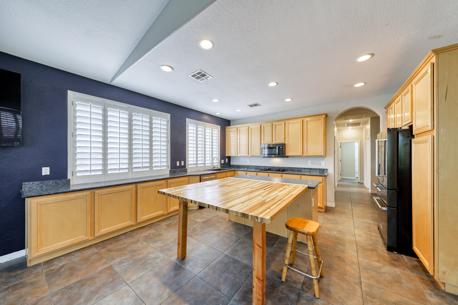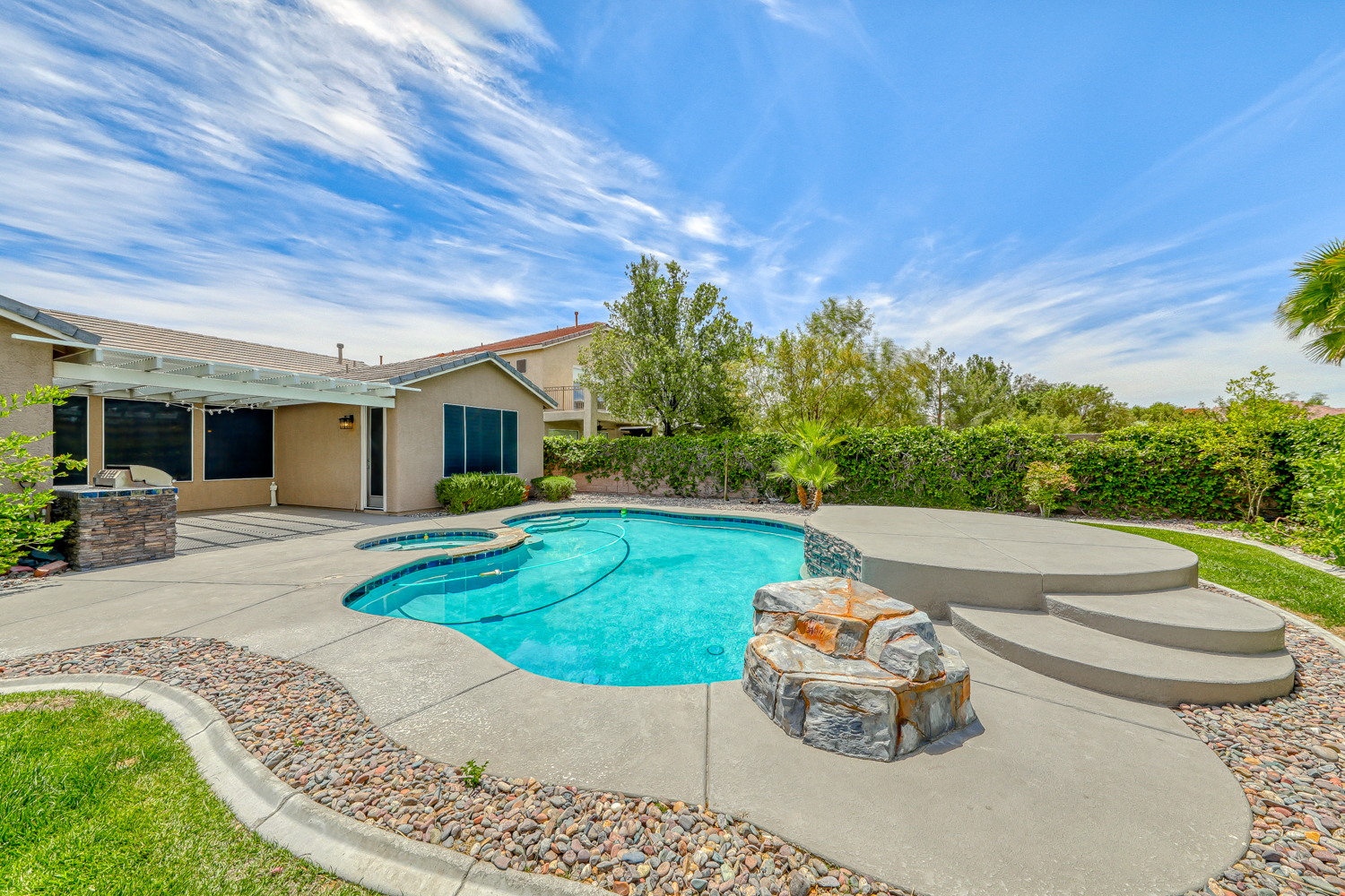 Anthem Coventry in the famous Anthem Master Plan – Hard to find Oversized Lot with a Beautiful 1 story Pool/Spa home. 3 bedrooms, 3 car garage. Located nearby Anthem Hills Park and Del Webb Middle School. Great Flexible floor plan with large living room, Possible 4th bedroom with Den and a Barn door for privacy. Easy Maintenance 18” Tile throughout home. Great room – family room Opens to the Large Island Kitchen with Granite countertops, 42’ Maple Cabinets, sit-down Island, and black Kitchen aid Stainless Steel Appliances including In-wall Oven & Refrigerator. Upgraded Vaulted ceilings and offers Surround Sound at Family room and entry foyer. Primary bedroom with double sinks, separate shower and soaking bathtub, and private backyard entry door to enjoy the Hot tub and Pool. A raised lot afford privacy and has a covered patio and awesome BBQ Center. A lovely serene community, that is sought after.