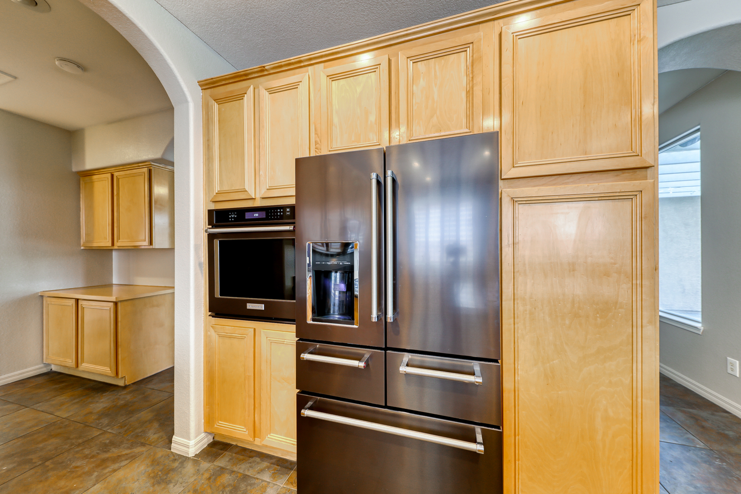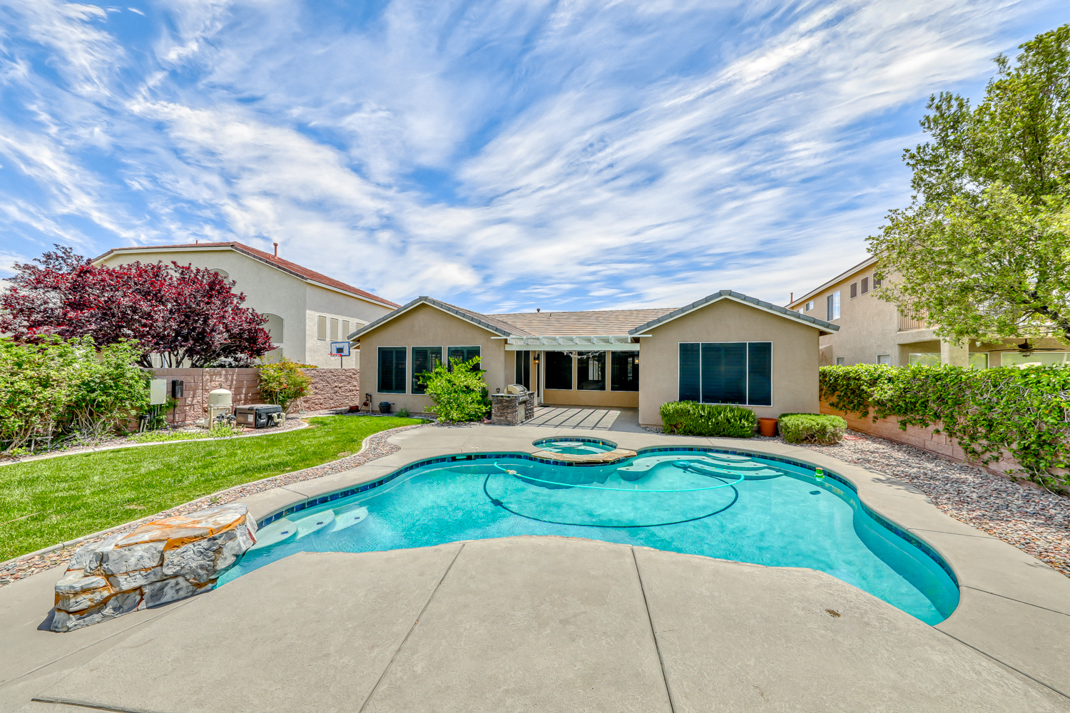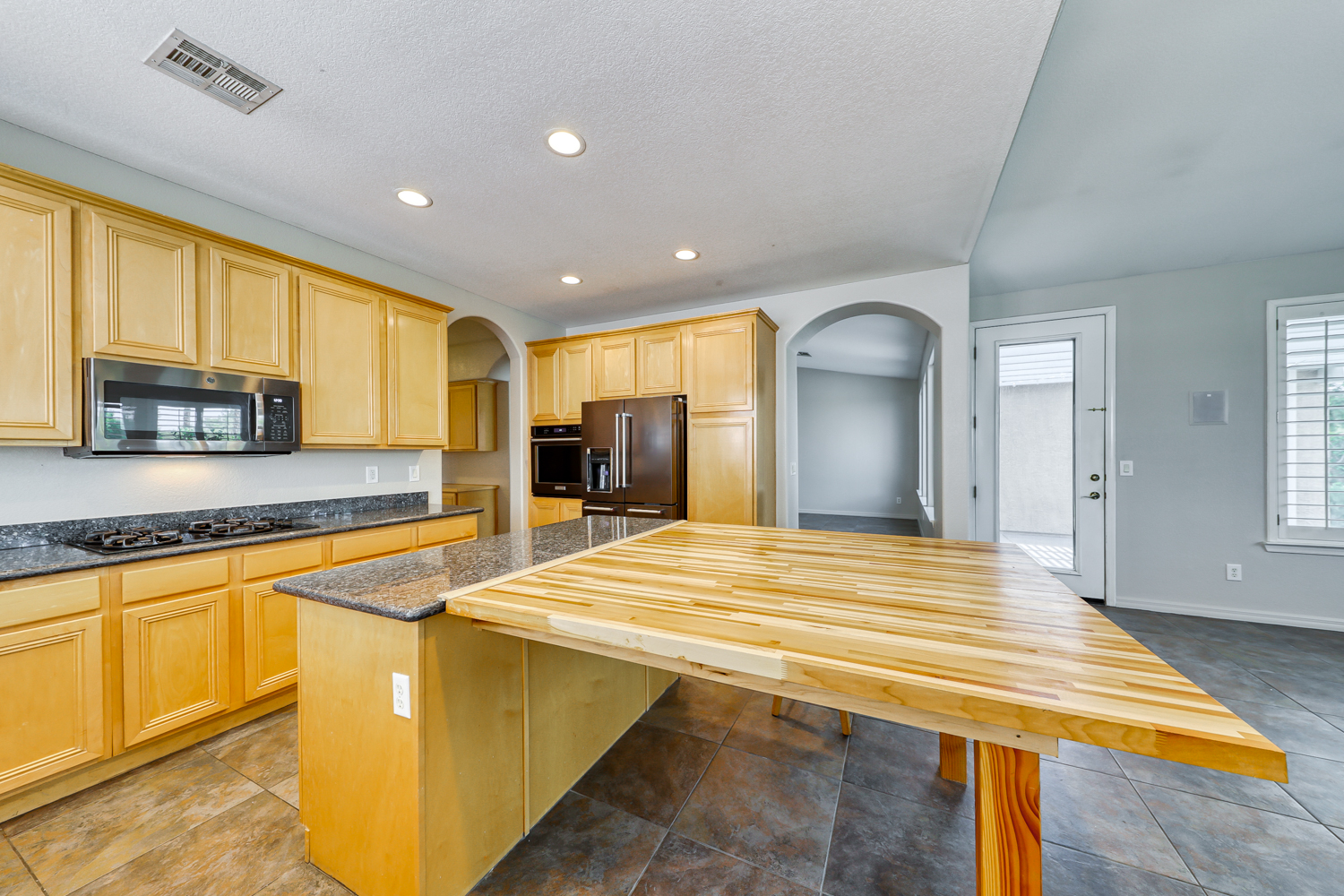 Anthem Coventry in the famous Anthem Master Plan – Hard to find Oversized Lot with a Beautiful 1 story Pool/Spa home. 3 bedrooms, 3 car garage. Located nearby Anthem Hills Park and Del Webb Middle School. Great Flexible floor plan with large living room, Possible 4th bedroom with Den and a Barn door for privacy. Easy Maintenance 18” Tile throughout home. Great room – family room Opens to the Large Island Kitchen with Granite countertops, 42’ Maple Cabinets, sit-down Island, and black Kitchen aid Stainless Steel Appliances including In-wall Oven & Refrigerator. Upgraded Vaulted ceilings and offers Surround Sound at Family room and entry foyer. Primary bedroom with double sinks, separate shower and soaking bathtub, and private backyard entry door to enjoy the Hot tub and Pool. A raised lot afford privacy and has a covered patio and awesome BBQ Center. A lovely serene community, that is sought after.