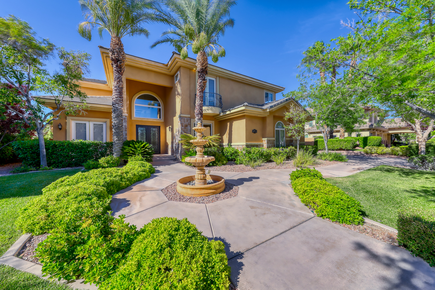 A Mediterranean luxury home in the first and only Guard-Gated custom community of Green Valley Ranch. You can’t find a better location than the Green Valley Ranch Estates Community, which is less than 5 minutes from the Green Valley Ranch hotel and shopping district. Over 4,000 sq ft with 4 beds, a custom Den office, and 4.5 baths.