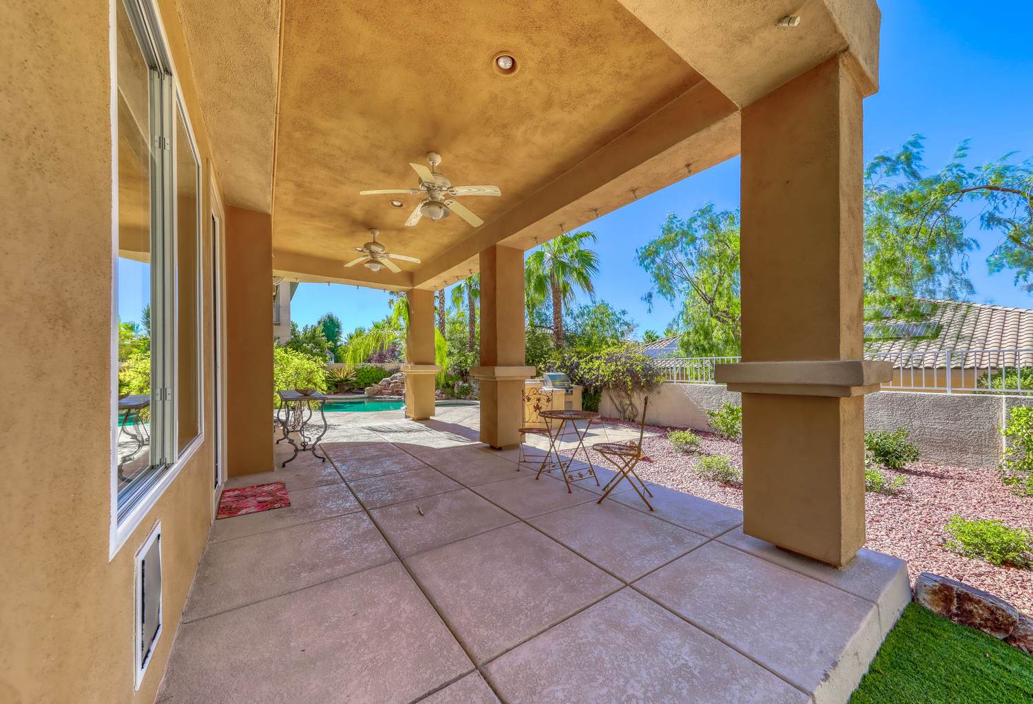 But don’t forget your own back yard. Within the guarded gates of this secluded community you’ll find a private park, basketball and tennis courts, all available for your use. Step through the gates and you have access to miles of pedestrian walkways, winding throughout the Green Valley Ranch community.