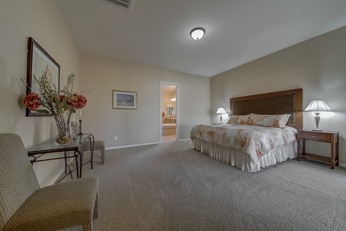 Large master suite leads to generously sized master walk in closets. Ensuite master bath features double sinks and jetted tub. Private guest suites with ensuite baths and den/teen room separate from master bedroom. Custom 2” wood blinds throughout the home. Water conditioner and water filtration system. Pre-wired for Surround Sound.
