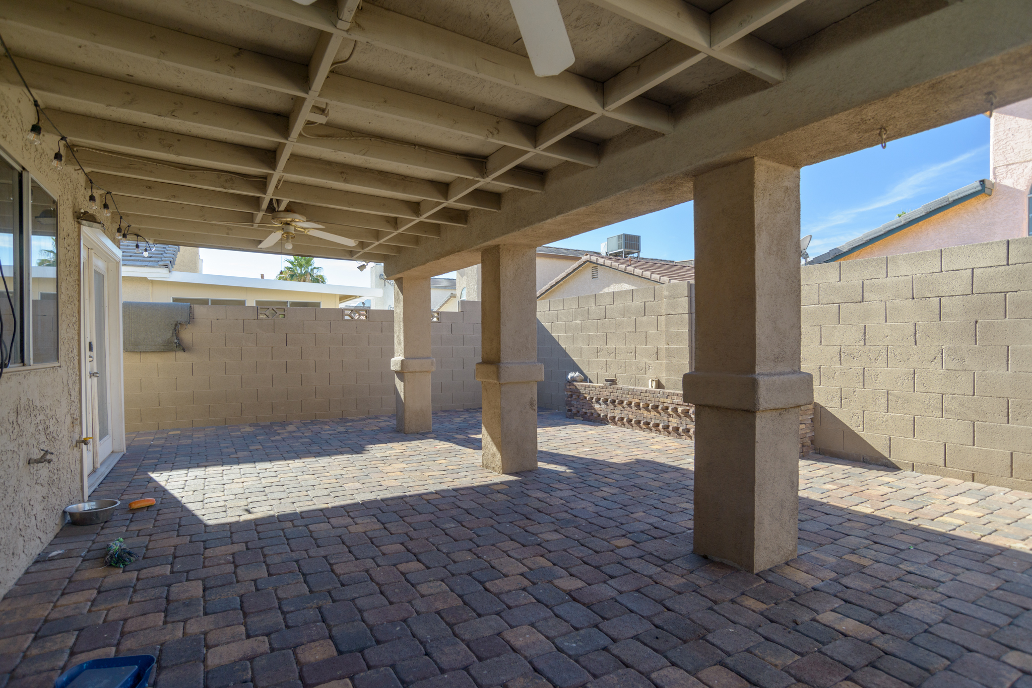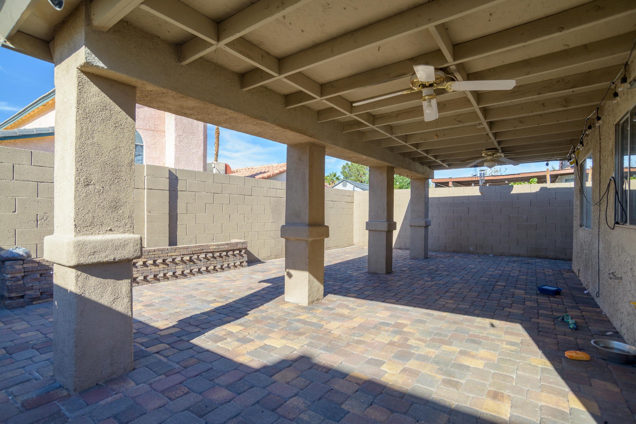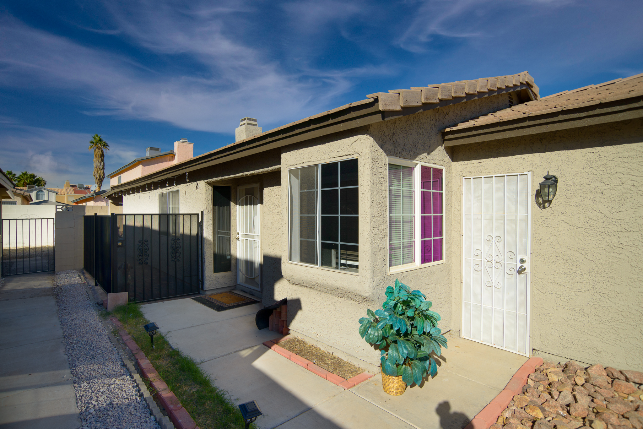 2787 Sandyfalls Way in Las Vegas is a charming home with 2-car garage, 2-bed, 2-bath & den! Front of the home has double panel & energy-efficient windows, security doors, and easy maintenance landscaping. Home is laid with like-new laminate flooring throughout and crown molding. Living area features a fireplace and leads to the kitchen. Granite countertop and size-able pantry! Kitchen has French double doors that lead out to the backyard with a covered patio. Both bedrooms have full-length mirror doors. Den can be used as an office, home gym, or a 3rd bedroom. Backyard was recently upgraded with professionally installed pavers, low maintenance & a good amount of space for hosting events. Lovely home with NO HOA fees!