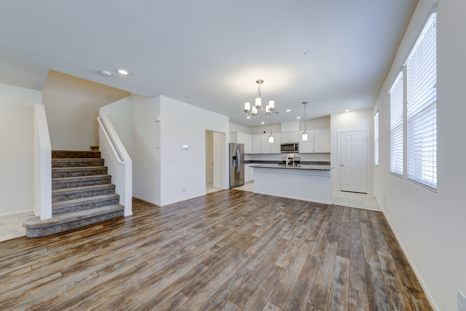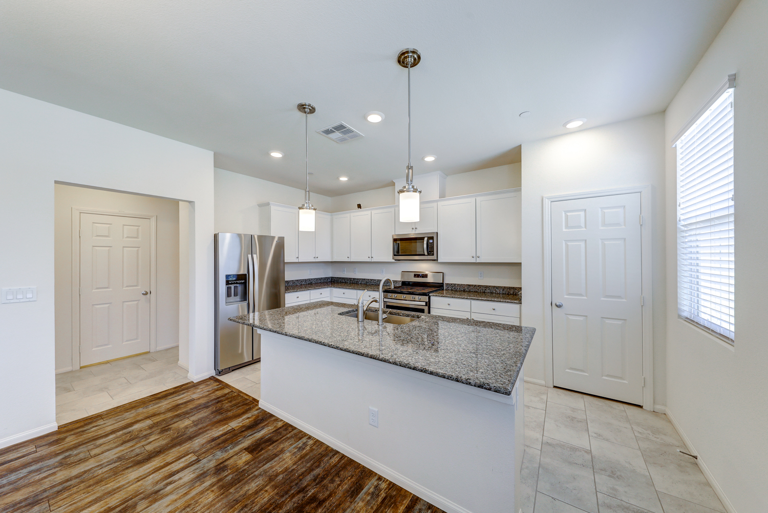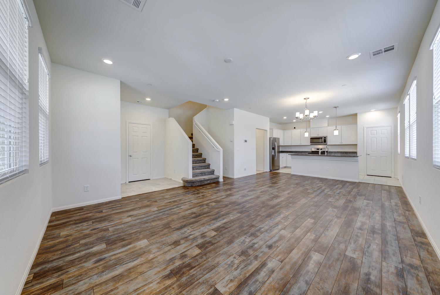 Sophisticated & Like New KB Townhome with 4 bedrooms and 2 car garage located in Inspirada master plan community. Over 1800 sqft of spacious living space, with designer ceramic wood plank style tile floors, trendy grey and white concept kitchen with modern white flat panel cabinets, Grey Granite counter tops showcase under mount basin stainless steel sink, pull out faucet, and stainless steel range and microwave. Large master suite, roomy enough for a sitting area and en suite bath with gorgeous white subway style overlay. Solid surface quartz style counter tops and upgraded luxury shower and tile surrounds. Secondary bedrooms are open and share a guest bathroom with extended vanity and linen closet. Convenient garage location off kitchen features a tankless water heater. Truly a home and community you will forever enjoy.