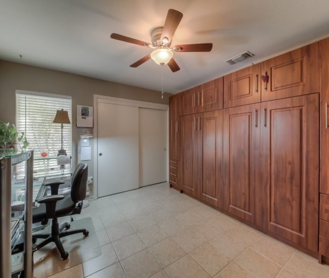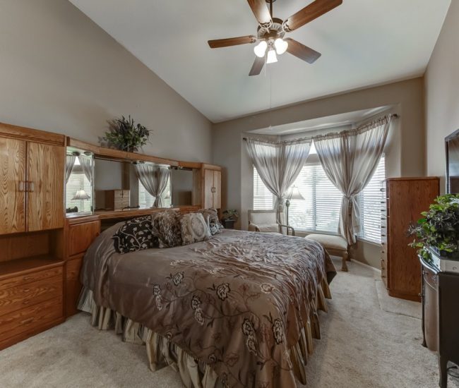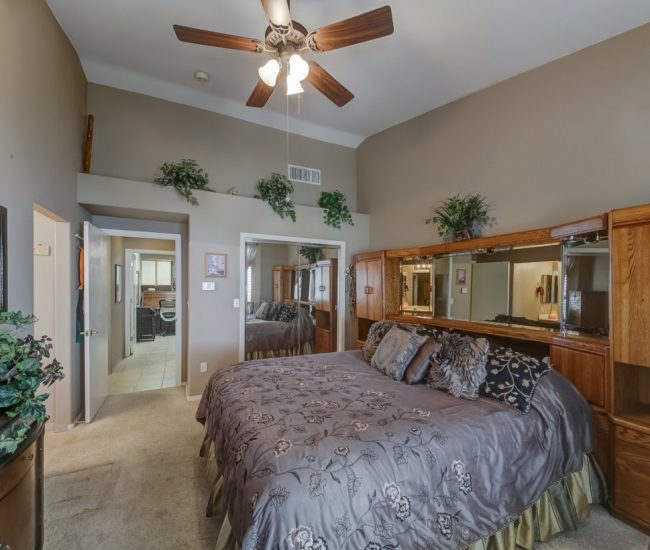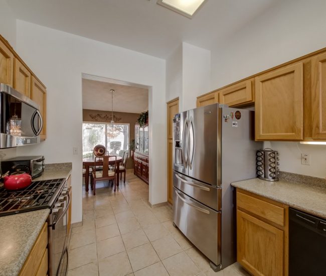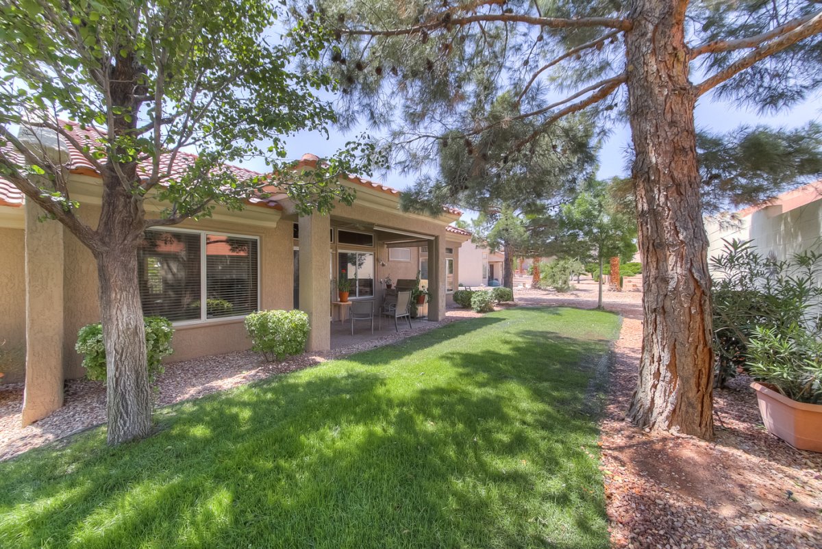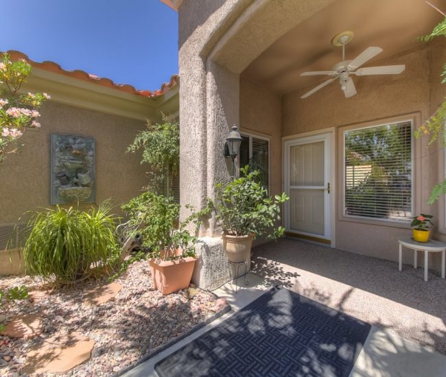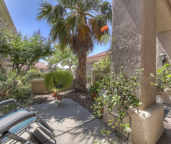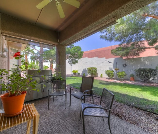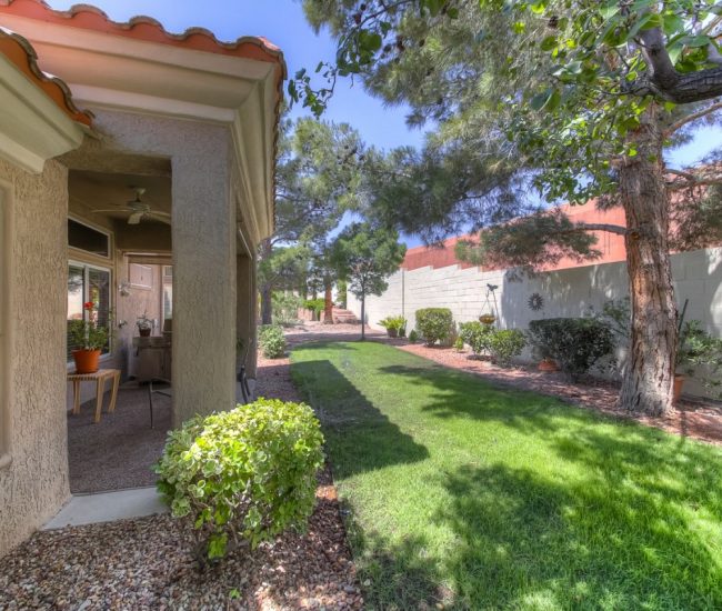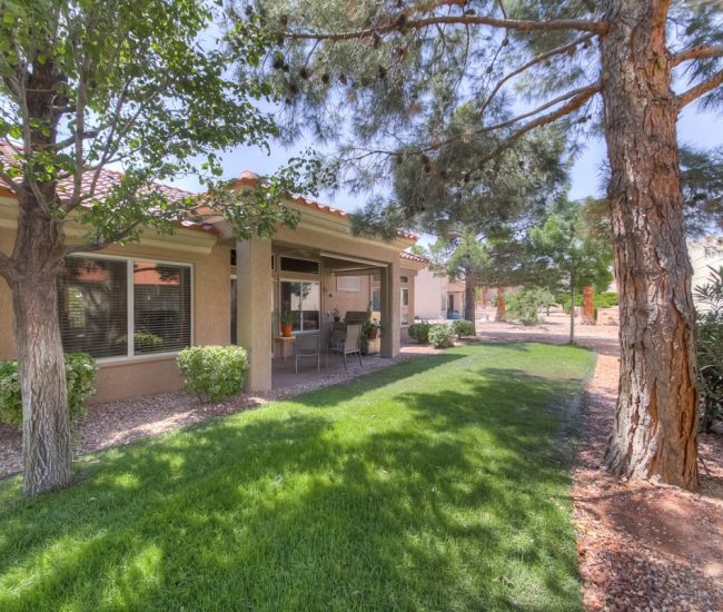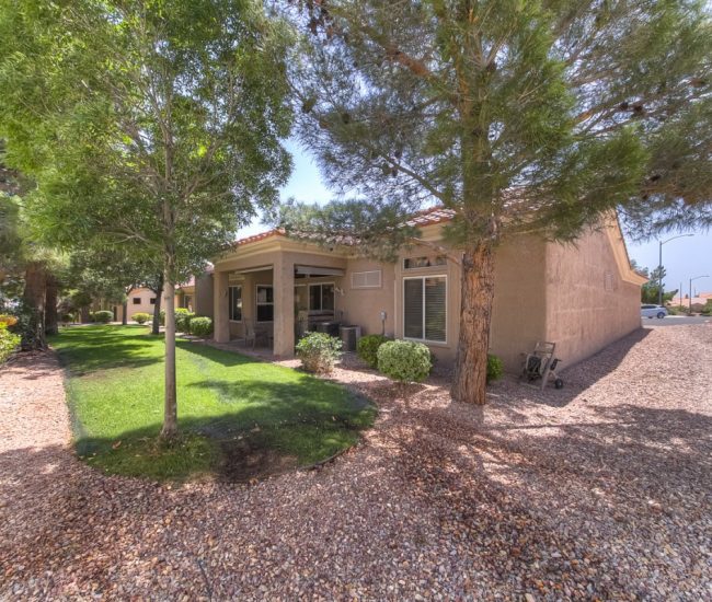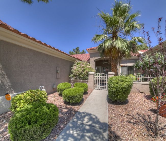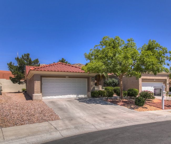 Adorable 2 Bed plus office, 2 bath home over 1,300 square feet in Sun City. Beautiful gated front courtyard and patio. Open concept floor plan with newer two tone neutral paint and upgraded ceiling fans throughout. Nice 12×12 tile flooring. Upgraded kitchen with new stainless steel oven and fridge with French drawer, as well as a new range. Large master bedroom with bay window. Expanded washroom converted into a home office. Guest bedroom features a pull down Murphy bed. Guest bath with new sink. Built in storage in garage. Private backyard with extended patio cover, ceiling fan, and pull down blinds for privacy. Located directly by Red Rock Canyon National Park, Calico Basin, and multiple hiking, biking and walking trails.