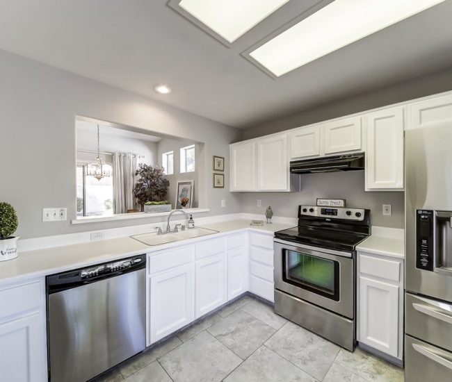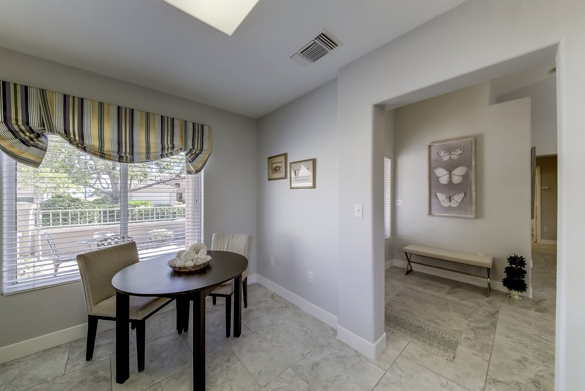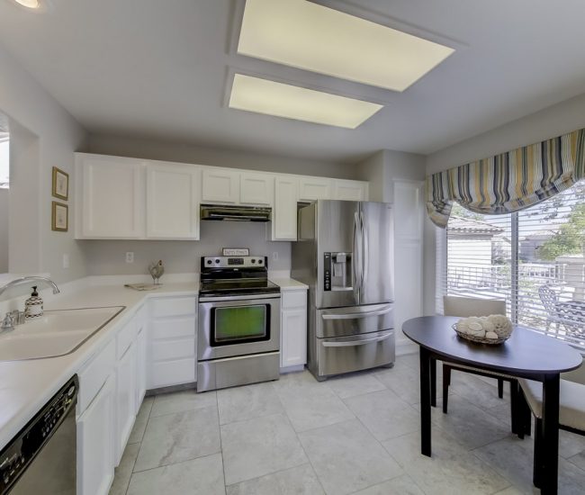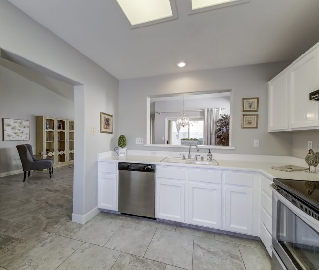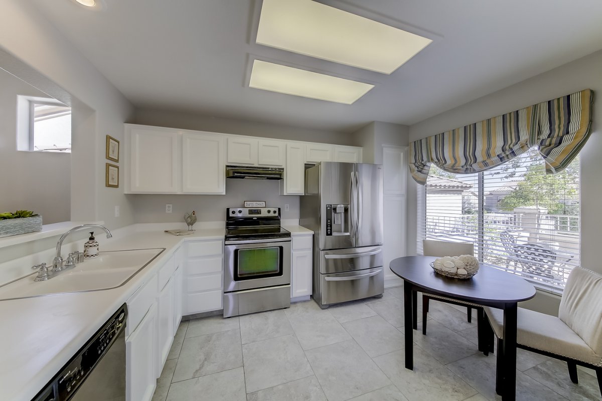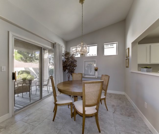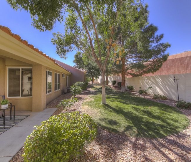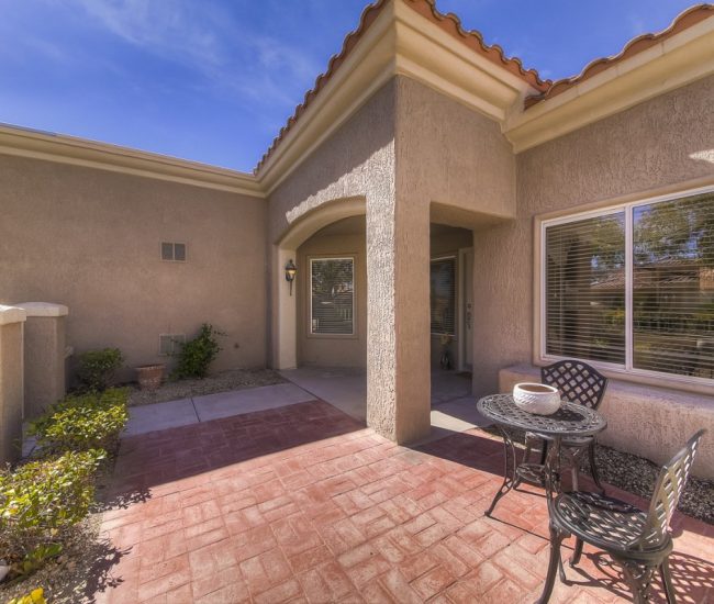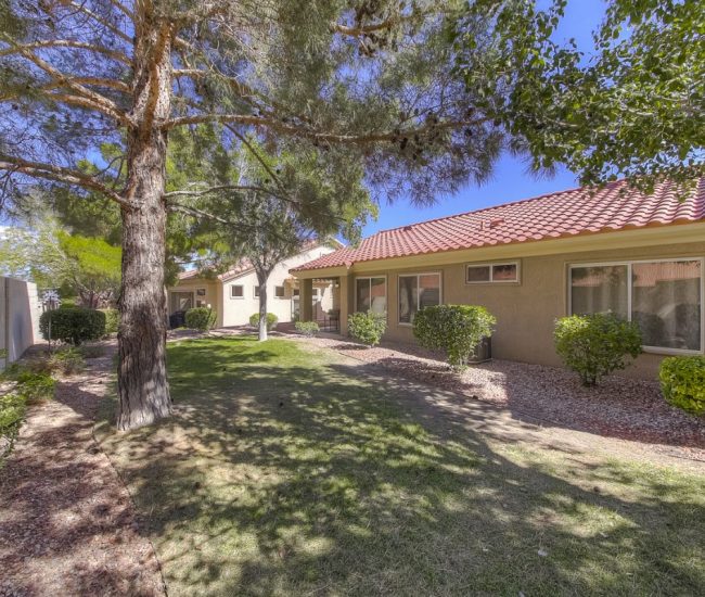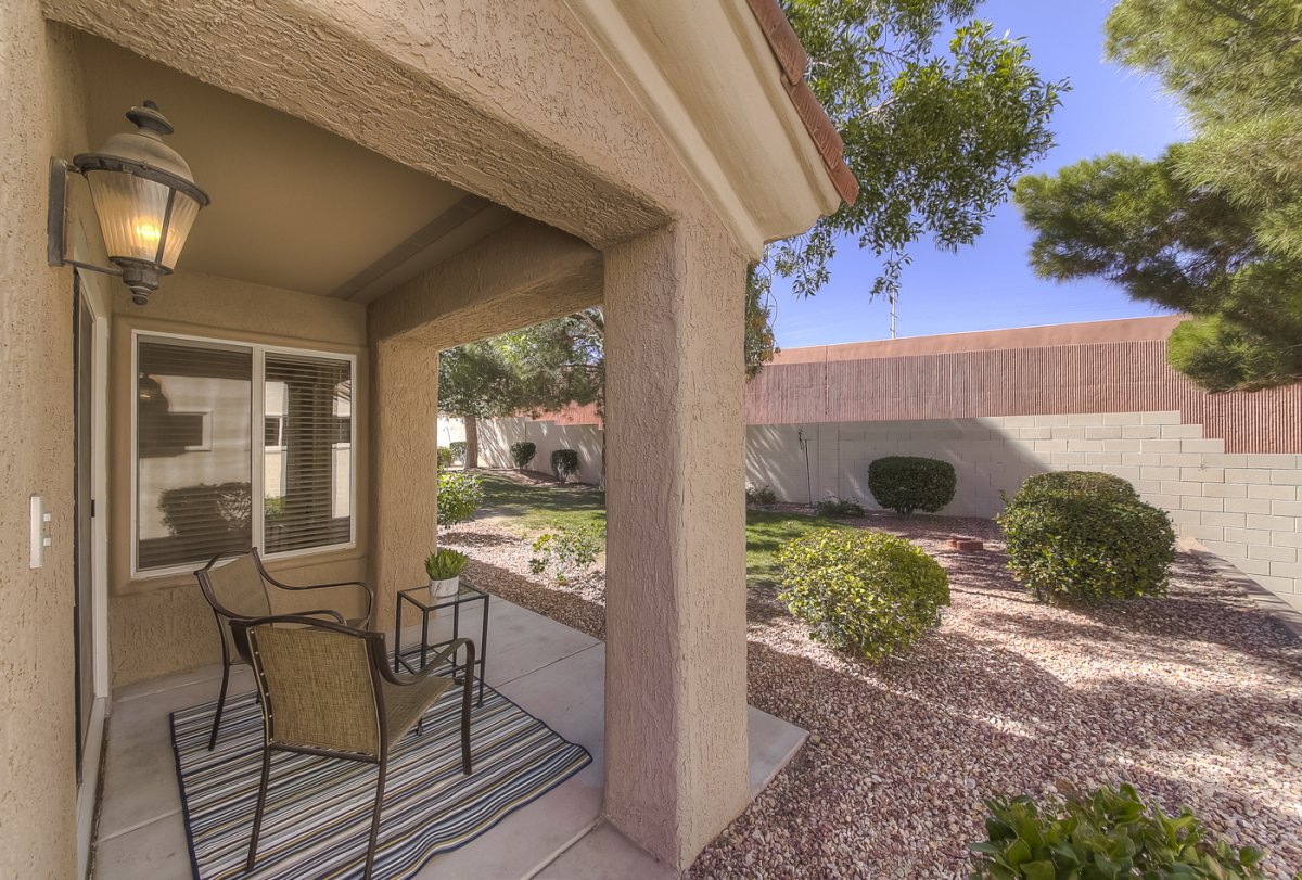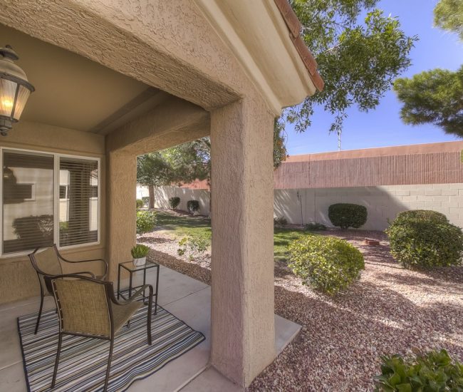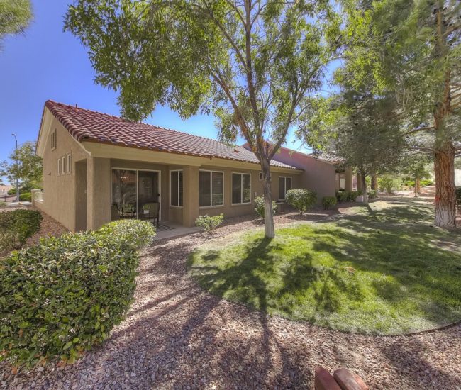 Adorable 2 bed, 2 bath single level patio home in Sun City Summerlin. Gated English style entrance courtyard. Bright and open with brand new designer marbled style large tile flooring and new baseboards throughout. Gorgeous recently renovated white kitchen with upgraded appliances including an LG stainless steel fridge and sunny kitchen nook. Breakfast bar opens to great room. Large sliding glass back doors lead to quiet covered patio space. Master suite includes walk in closet an en suite bath with large shower. Large shady backyard and covered patio. Located nearby Red Rock Canyon National Park and Calico Basin as well as multiple walking, hiking, and biking trails. 1,220 Sq Feet $279,900