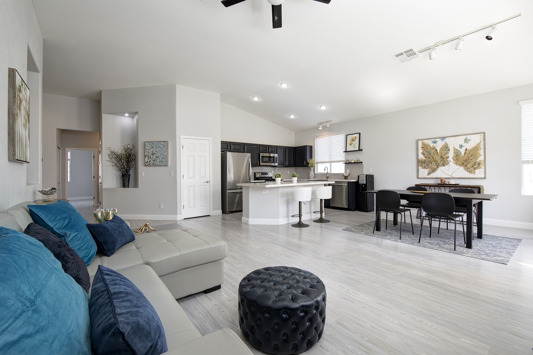 The property at 2979 Scenic Valley Way is a beautiful 3 bed 2 bath, over 1500 square feet. This single story home is in the desirable Seven Hills area. Move-in ready, ideally located on a large interior lot almost 7,000 square feet. The home is newly remodeled with gorgeous modern gray color scheme. Sunny and open concept floor plan with entertainment kitchen. Brand new white quartz with subway tile backsplash and breakfast bar island. Cool contemporary renovated cabinets, new Samsung stainless steel appliances and farm sink with bib.