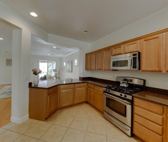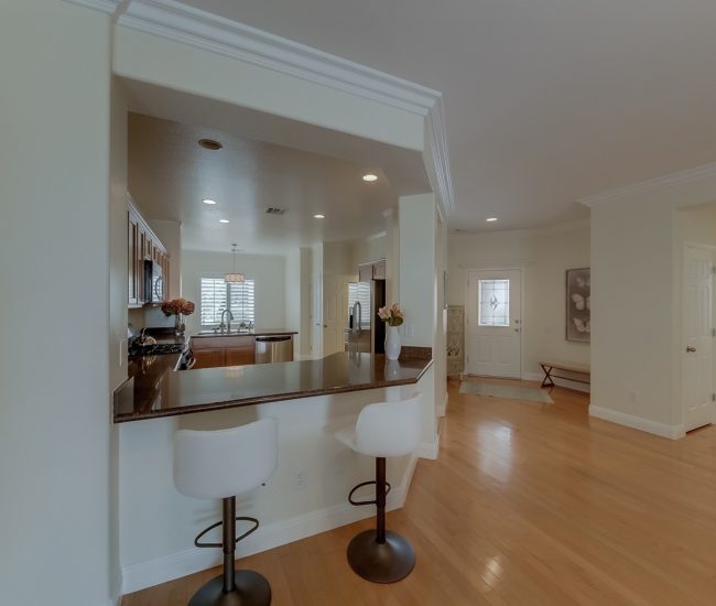 Upgraded Granite kitchen and pantry with undermount stainless steel sink, autumn wood cabinets, breakfast bar & sunny kitchen nook. Kitchen faucet and garbage disposal recently installed. Master bedroom features bay window with mountain views and custom closet. Gorgeous fully renovated ensuite bath with subway tile and porcelain tile surrounds, double sided walk in shower with dual shower head and double sink with custom marble vanity. Two guest bedrooms and renovated guest bath with marble vanity. Pre-wired for Surround Sound.