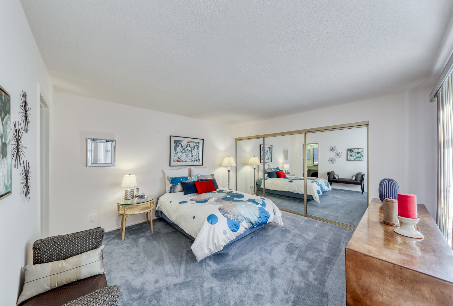 The Family room’s large and open space allows for flexibility to design your own living concept. The spacious master suite also features a deep, wall length mirrored wardrobe and access to the courtyard as well as an en-suite bath that with tiled walk-in shower and large vanity area and box window that overlooks the unique interior-atrium which allows for lots of natural sunlight to flow through the property.