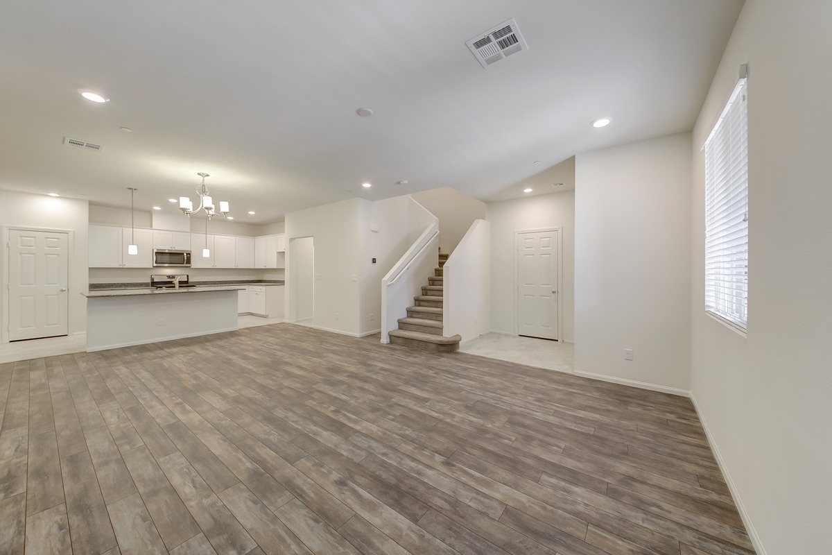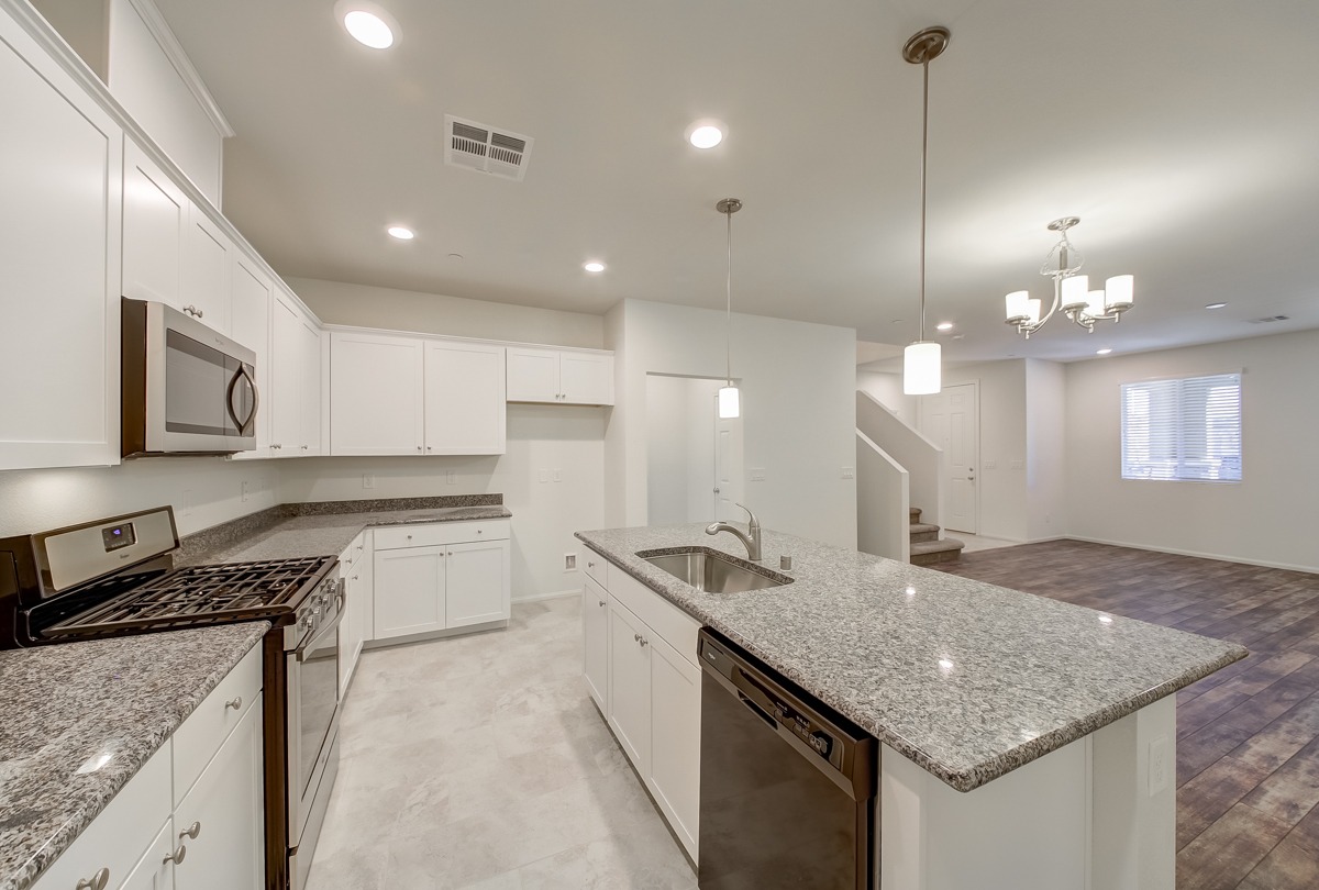 3208 Via Da Vinci Henderson NV 89044 is a new KB 3 bed plus LOFT 2.5 bath townhome in Inspirada is 1850 square feet. Features Armstrong plank neutral tone wood style waterproof laminate flooring. Upgraded subway tile in the bathrooms and kitchen. Luxury kitchen with brand new Whirlpool stainless steel appliances, stone gray laminate cabinetry with group 2 granite countertops and undermount sink! Convenient breakfast bar island.