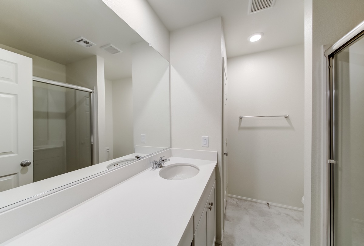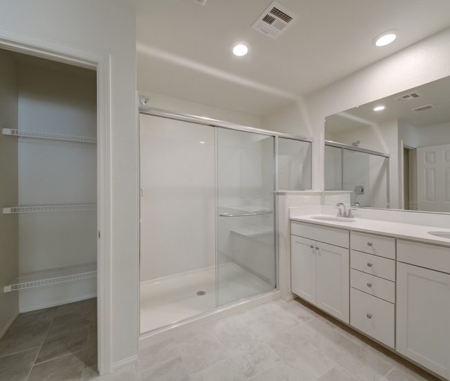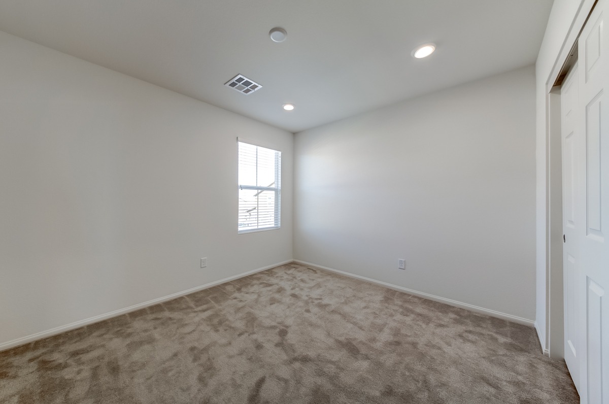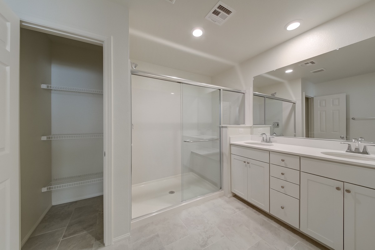 There is an enlarged shower and double sinks in master bath. Large master bedroom with spacious walk in closet. New two tone paint package. Dual zone climate control system with a Smart Thermostat, tankless water heater, and 16 seer HVAC system. Easy care desert landscaping. Community features include a pool, pet park, family friendly playground, basketball courts, and tennis courts. Minutes away from Potenza and Capriola Park as well as walking trails.