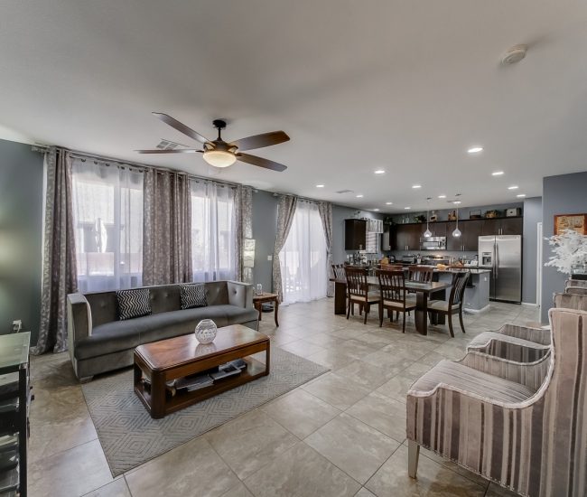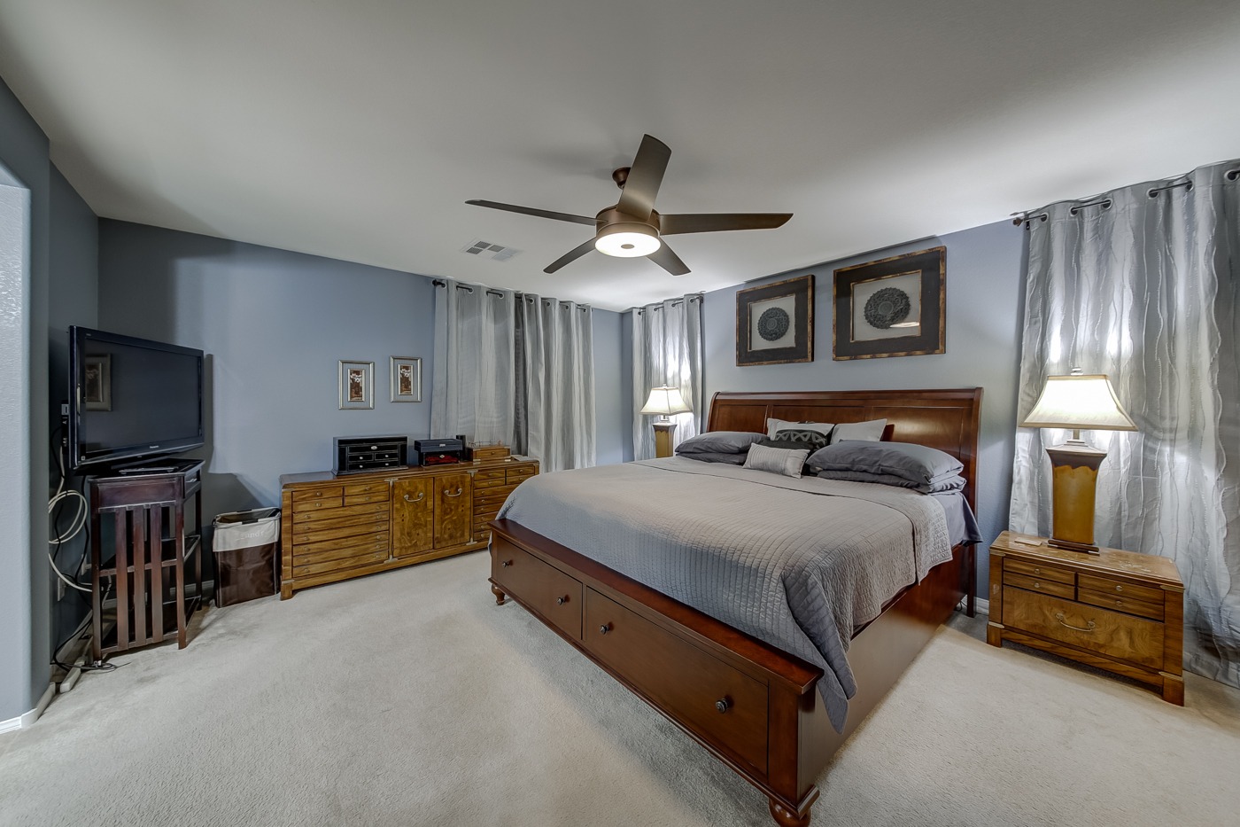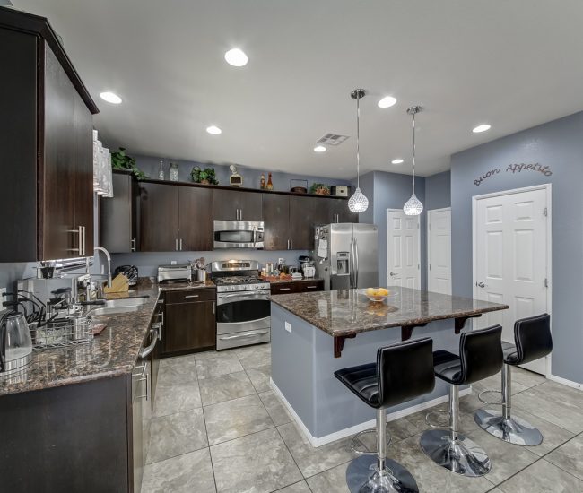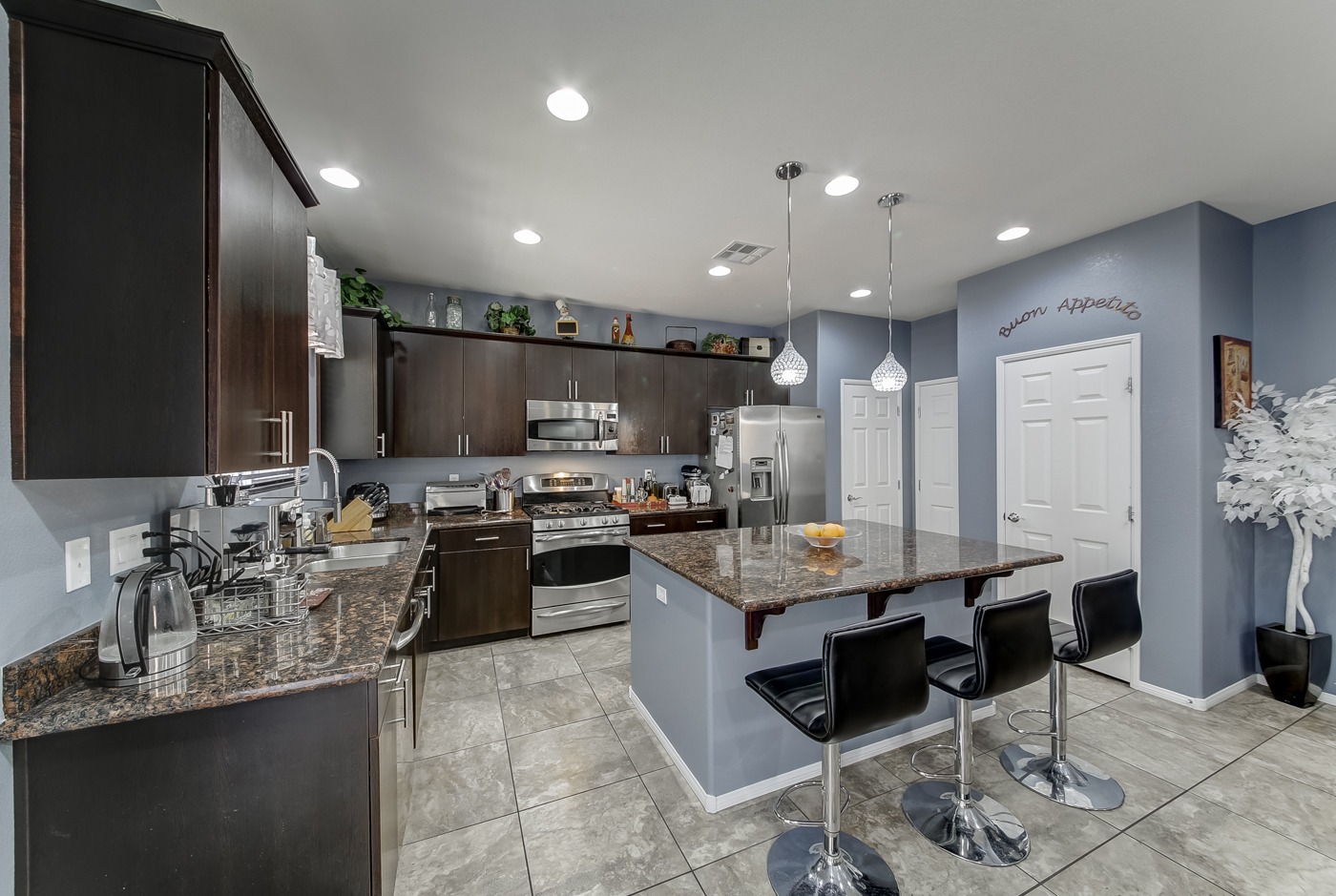 Like a Model Home! Awesome Village of Avellino Estate in a Guard Gated Community with Community Pool, Dog Park, Walking Paths and Club House. Open-concept floor plan with downstairs Bedroom & Bath. Tons of Curb Appeal with Exterior Stonework and Paver-Stone Driveway Upgrades plus Beautiful Backyard Landscaping, Gas BBQ Stub, Modern Custom Espresso Color Cabinets, Granite Kitchen Countertops, Custom Pendant Lighting over the Large Kitchen Island, Stainless Steel Kitchen Appliances and plenty of recessed lighting. Gorgeous Two Tone Paint throughout, Upgraded neutral Mocha 20×20 Tile Flooring. Upstairs features a Spacious Loft Area, two large Guest Bedrooms, and a Spacious Master Suite. Master Bath features European Vanities with double sinks, separate Soaking Tub, and Walk-in Shower.