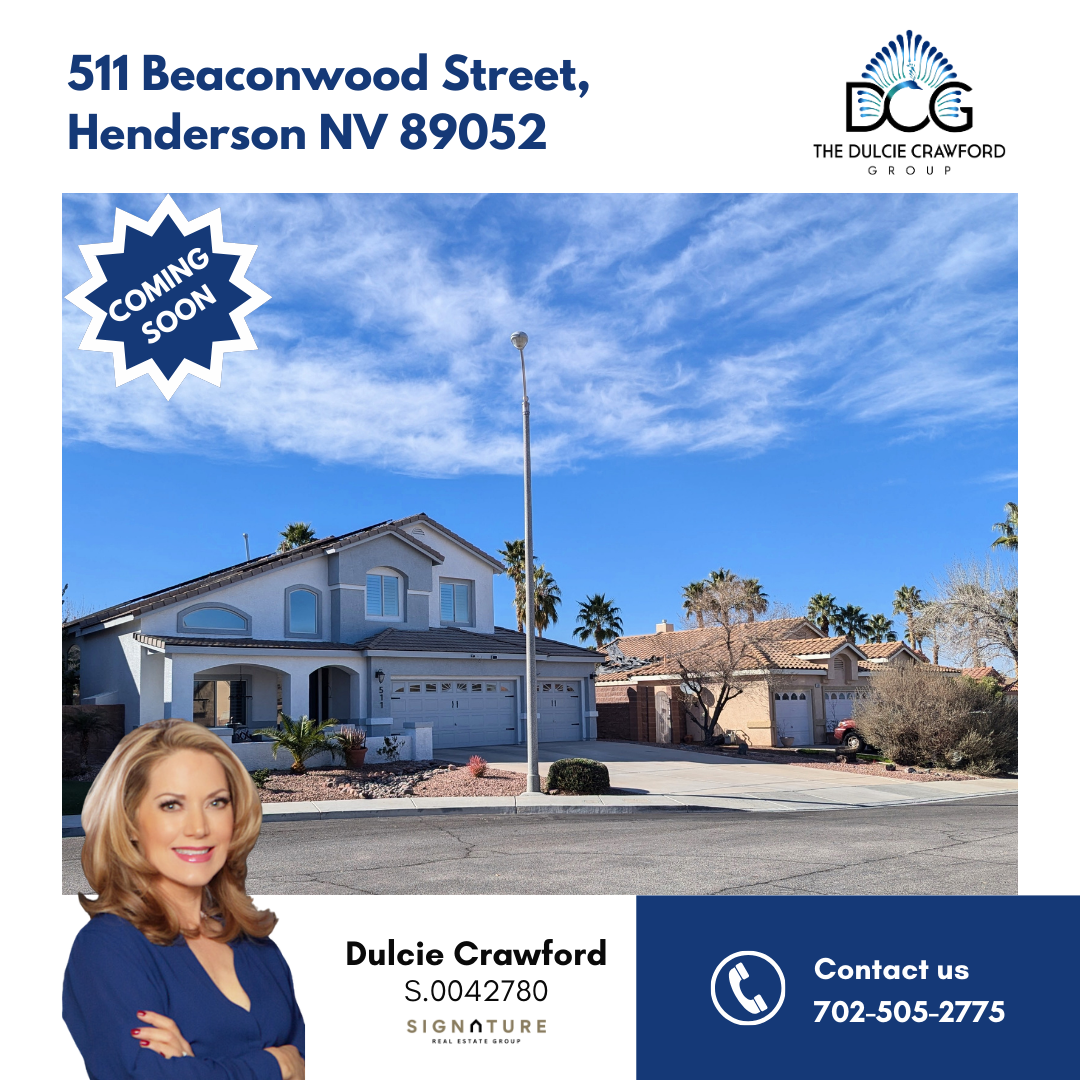 Listing Blogs Featured Photos (23) By Dulcie Crawford|2025-03-01T06:43:35-08:00March 1st, 2025| Share This Story, Choose Your Platform! FacebookXRedditLinkedInWhatsAppTumblrPinterestVkEmail Dulcie Crawford NV Lic #S.0042780 Signature Real Estate Group Buyers: 702.505.2775 Sellers: 702.505.2775 Office: 702.568.2530 Get Directions to My Office: 2200 Paseo Verde Pkwy Suite 300A, Henderson, NV 89052 FREE Real Estate Market Report Get in Touch