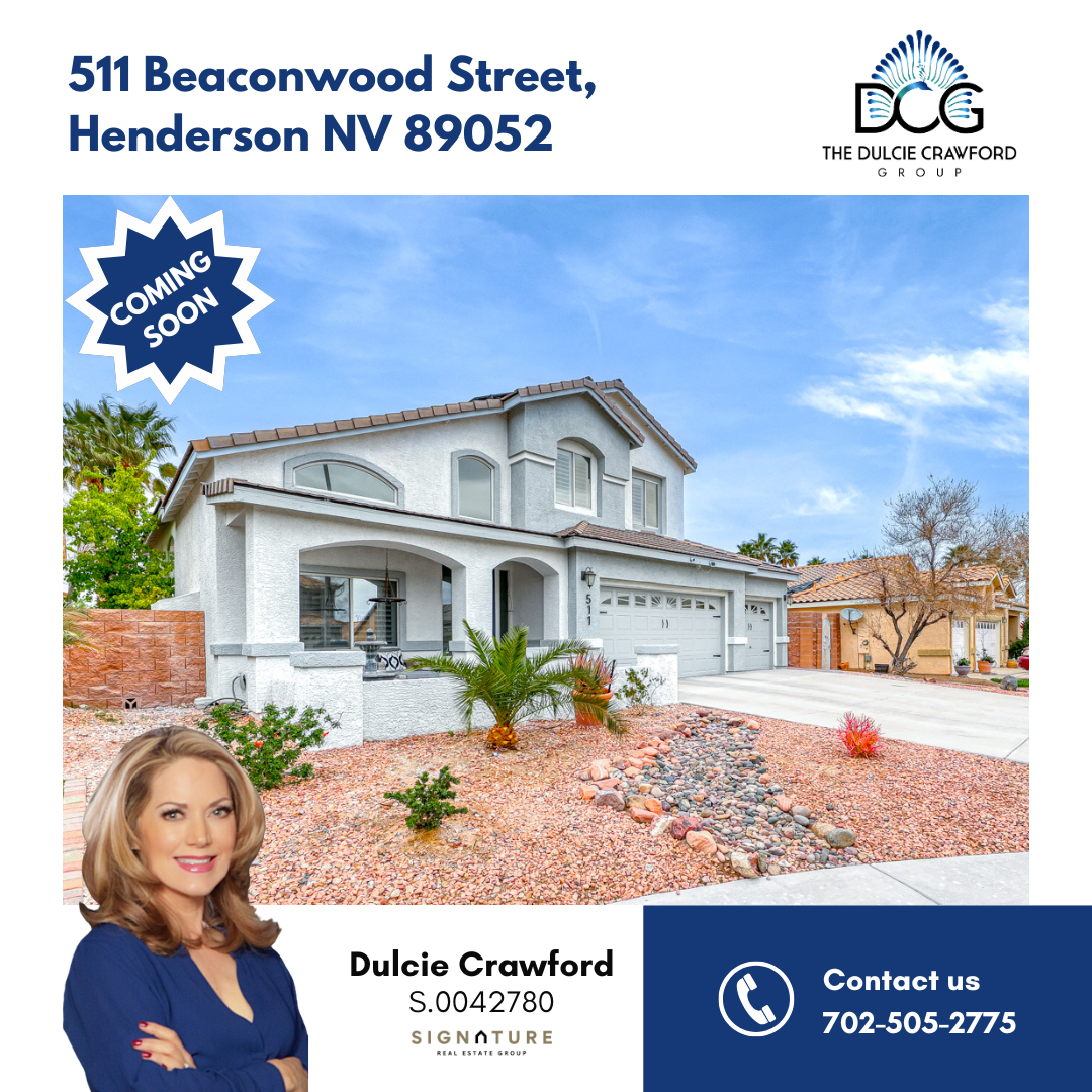 Listing Blogs Featured Photos (31) By Dulcie Crawford|2025-03-09T07:19:00-07:00March 9th, 2025| Share This Story, Choose Your Platform! FacebookXRedditLinkedInWhatsAppTumblrPinterestVkEmail Dulcie Crawford NV Lic #S.0042780 Signature Real Estate Group Buyers: 702.505.2775 Sellers: 702.505.2775 Office: 702.568.2530 Get Directions to My Office: 2200 Paseo Verde Pkwy Suite 300A, Henderson, NV 89052 FREE Real Estate Market Report Get in Touch