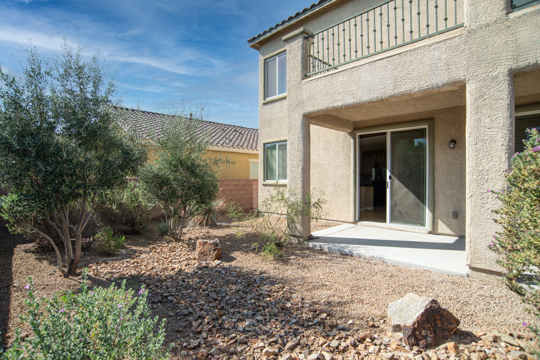 Upgraded Spacious Home! Interior features inviting kitchen area with custom cabinetry, backsplash, granite counters & island. Custom interior paint, ceiling fans, cozy fireplace, and huge master suite with balcony! Bonus entertainment room with Built-In Cabinets to enjoy like a Big Screen Style. Exterior with covered patio and professionally installed low maintenance landscape.