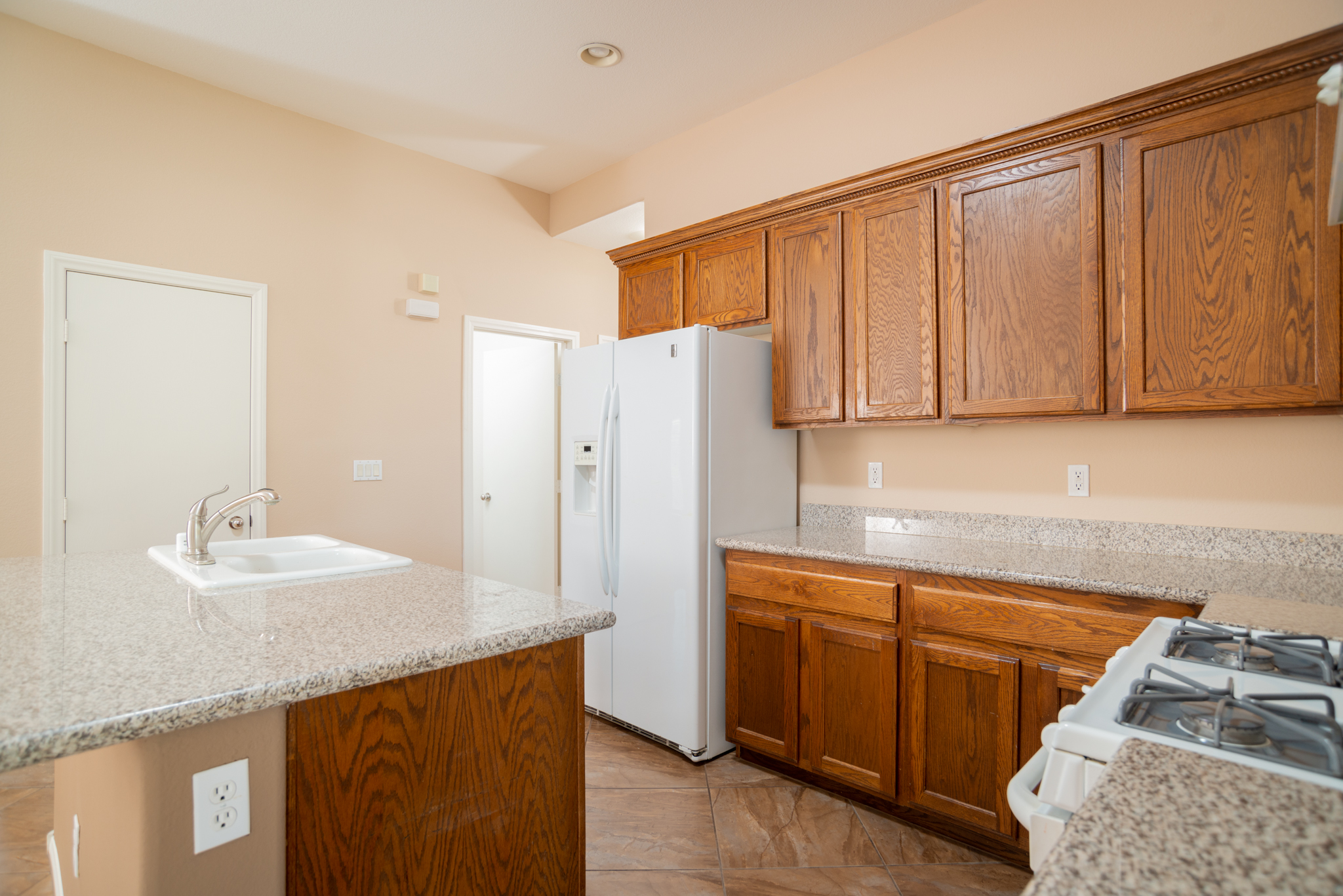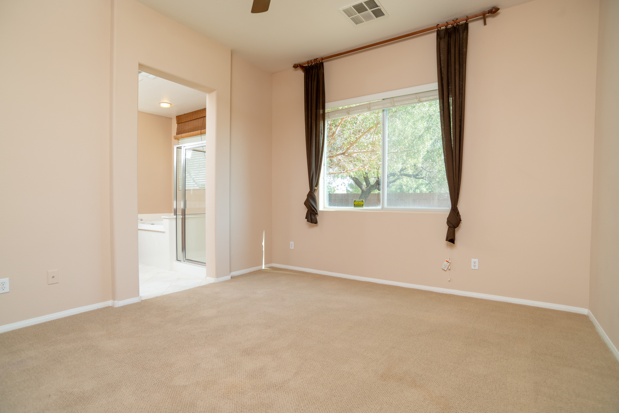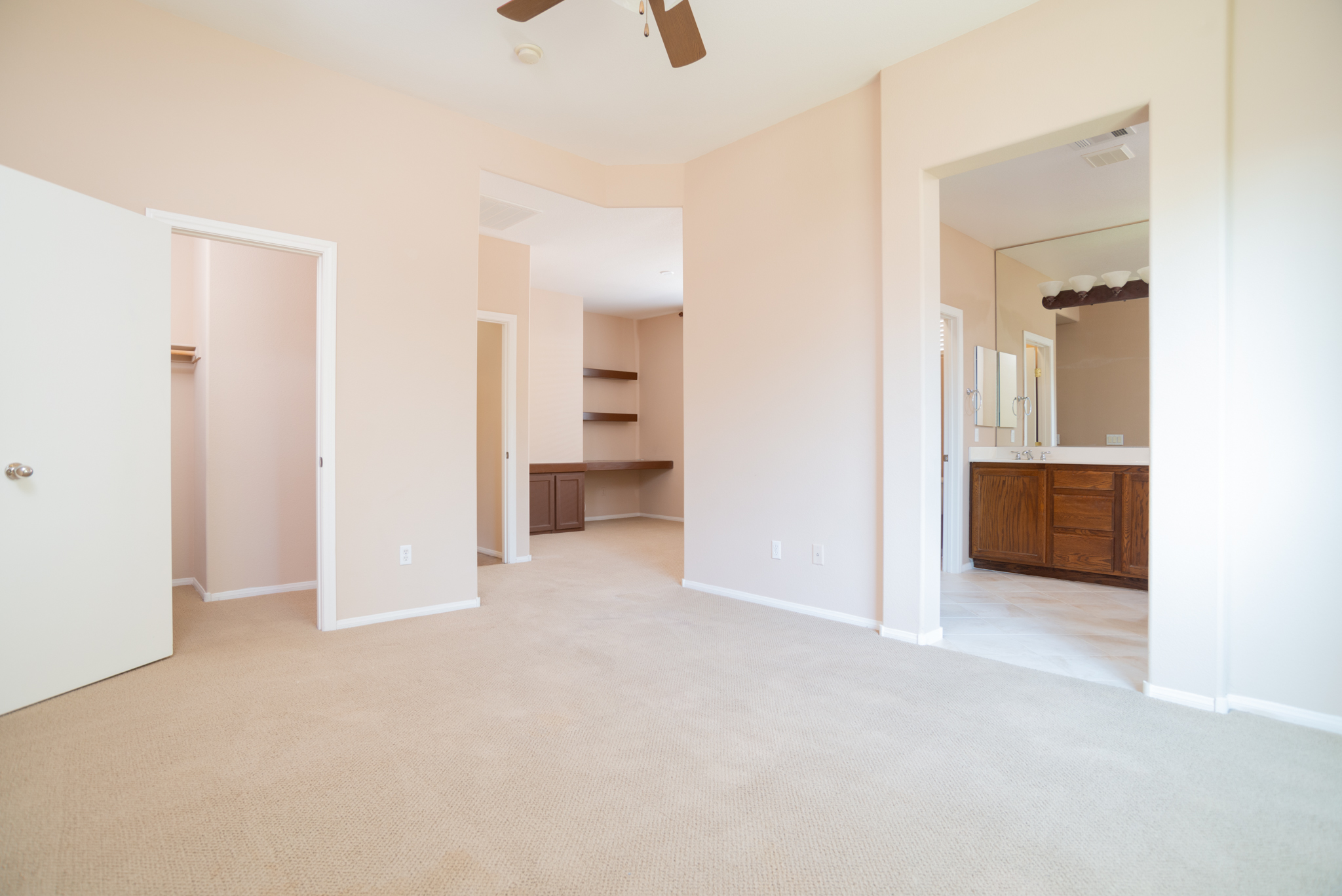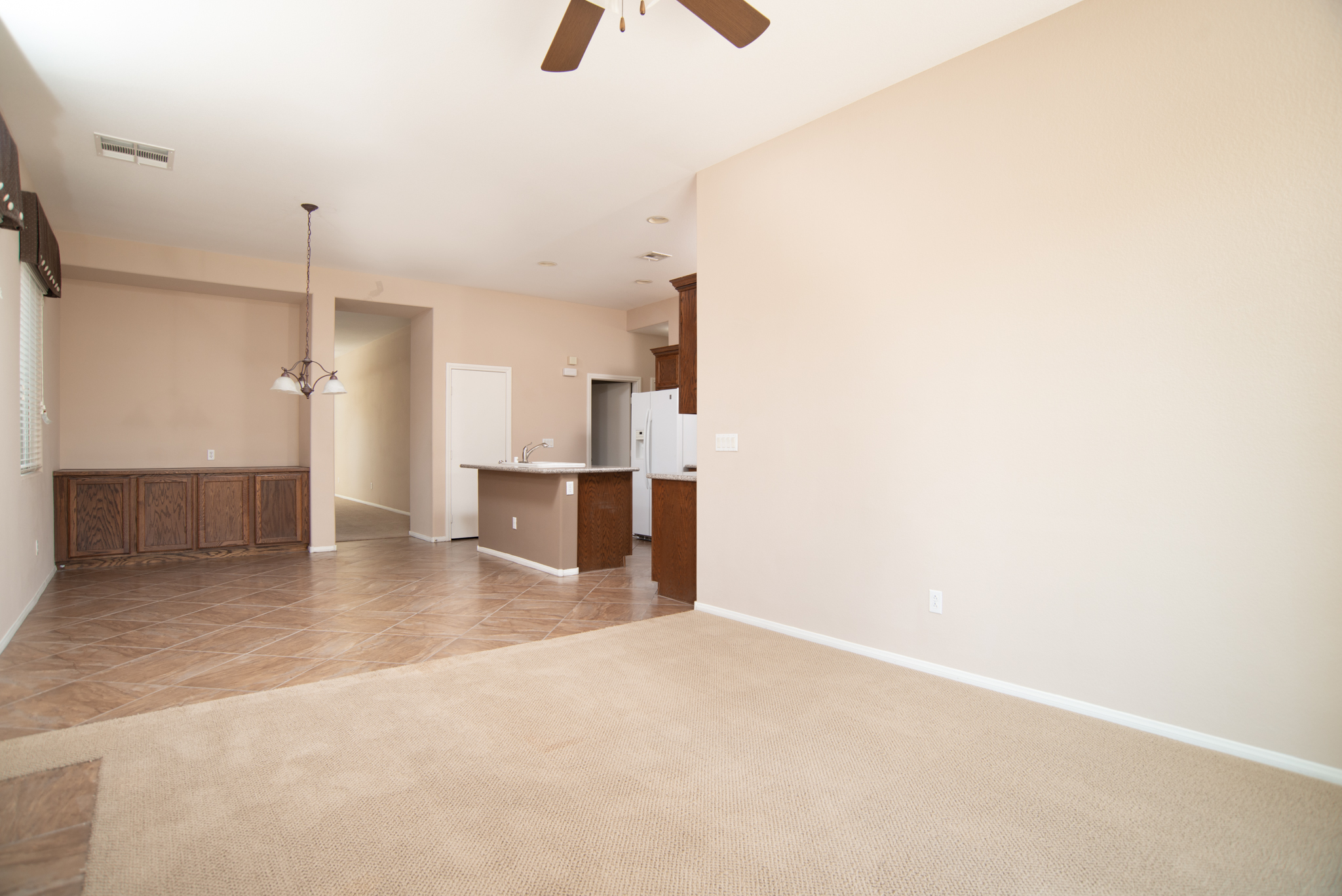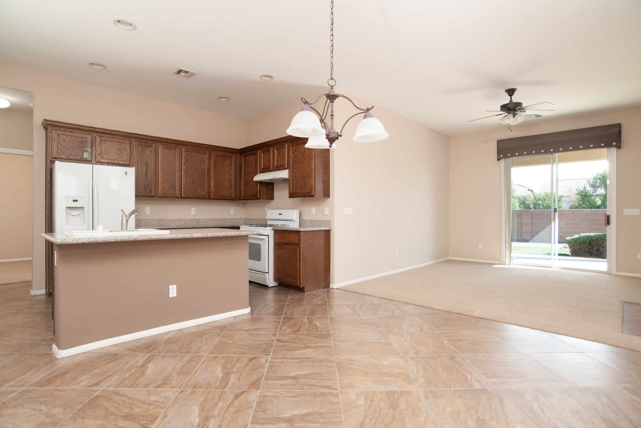 Located in a Gated Community, this Single Story Former Model Home has an open floor plan. 3 bds/2 baths. Formal living and Dining areas, breakfast nook, & family room. Chefs Kitchen w/ granite counters, upgraded white appliance pkg w/ refrigerator, nice open concept with Island open to the family room. The master bedroom boasts a sitting room & walk-in closet. Home has tile floors in the kitchen, dining, & bathrooms. Plush carpet throughout & custom designer paint and window treatments. Fully landscaped w/ covered patio and desert landscaping.