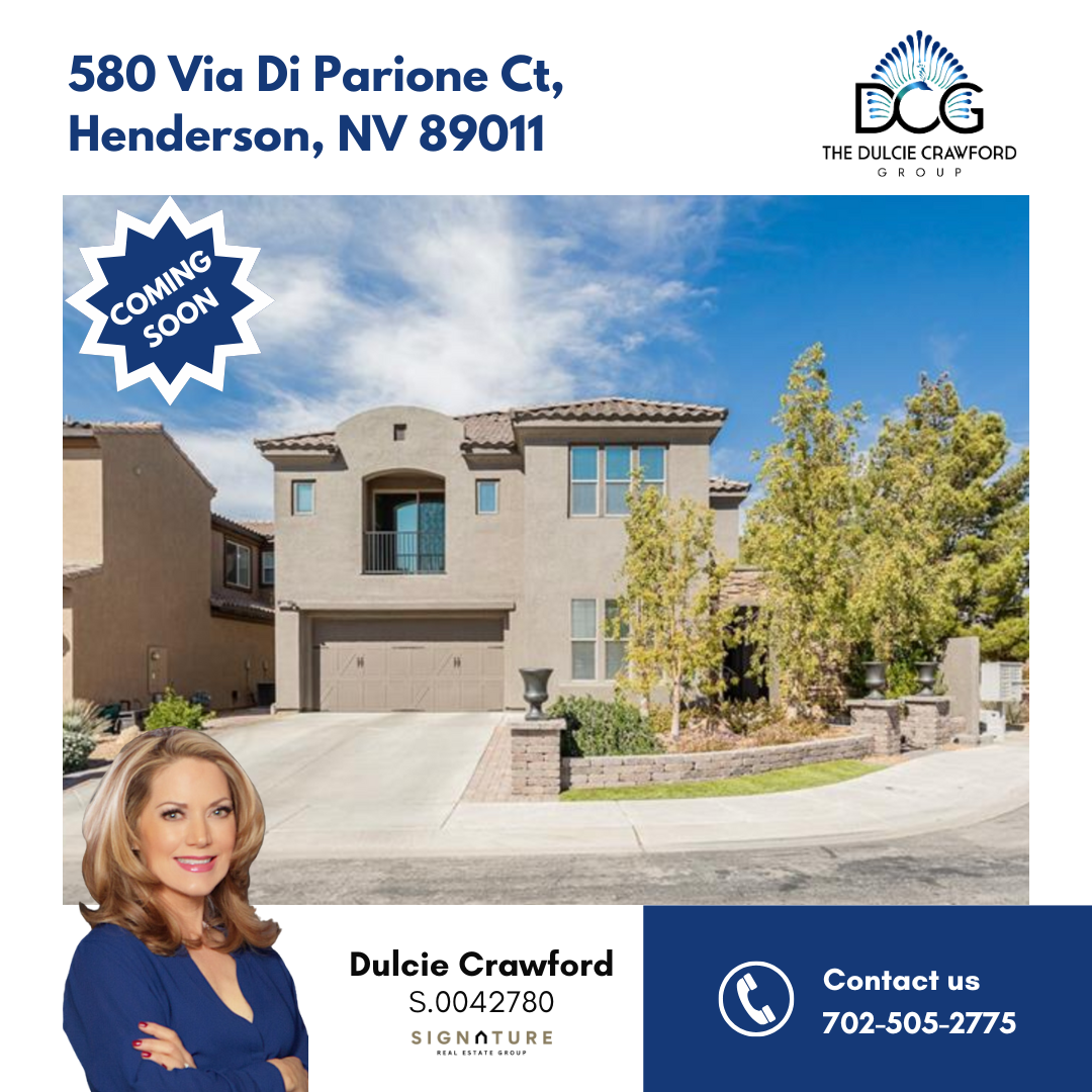 Listing Blogs Featured Photos (9) By Dulcie Crawford|2025-01-29T06:31:29-08:00January 29th, 2025| Share This Story, Choose Your Platform! FacebookXRedditLinkedInWhatsAppTumblrPinterestVkEmail Dulcie Crawford NV Lic #S.0042780 Signature Real Estate Group Buyers: 702.505.2775 Sellers: 702.505.2775 Office: 702.568.2530 Get Directions to My Office: 2200 Paseo Verde Pkwy Suite 300A, Henderson, NV 89052 FREE Real Estate Market Report Get in Touch
