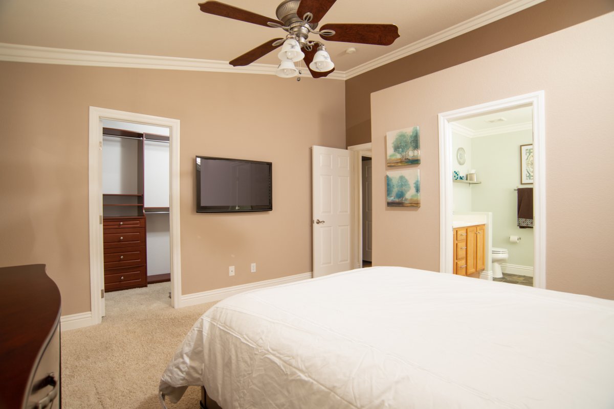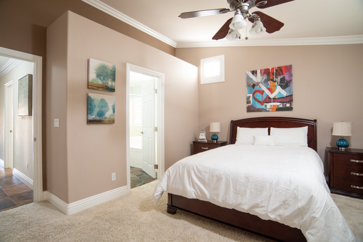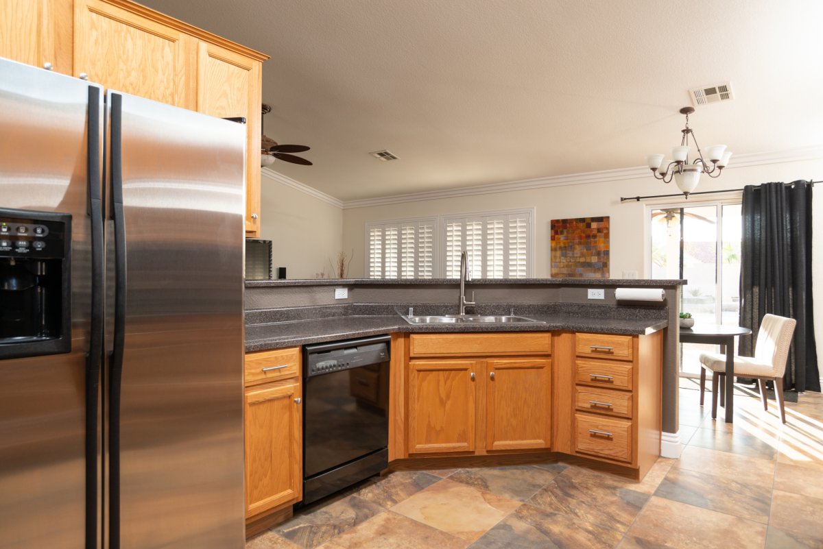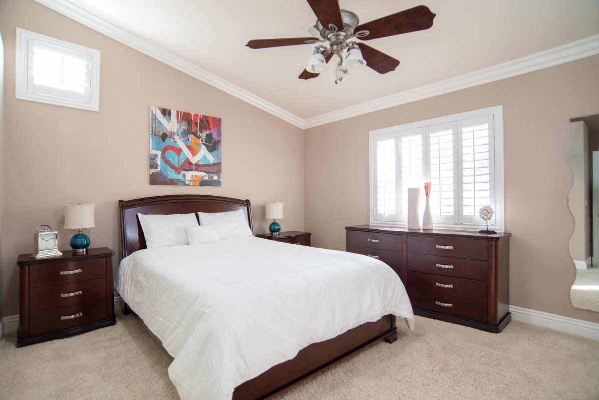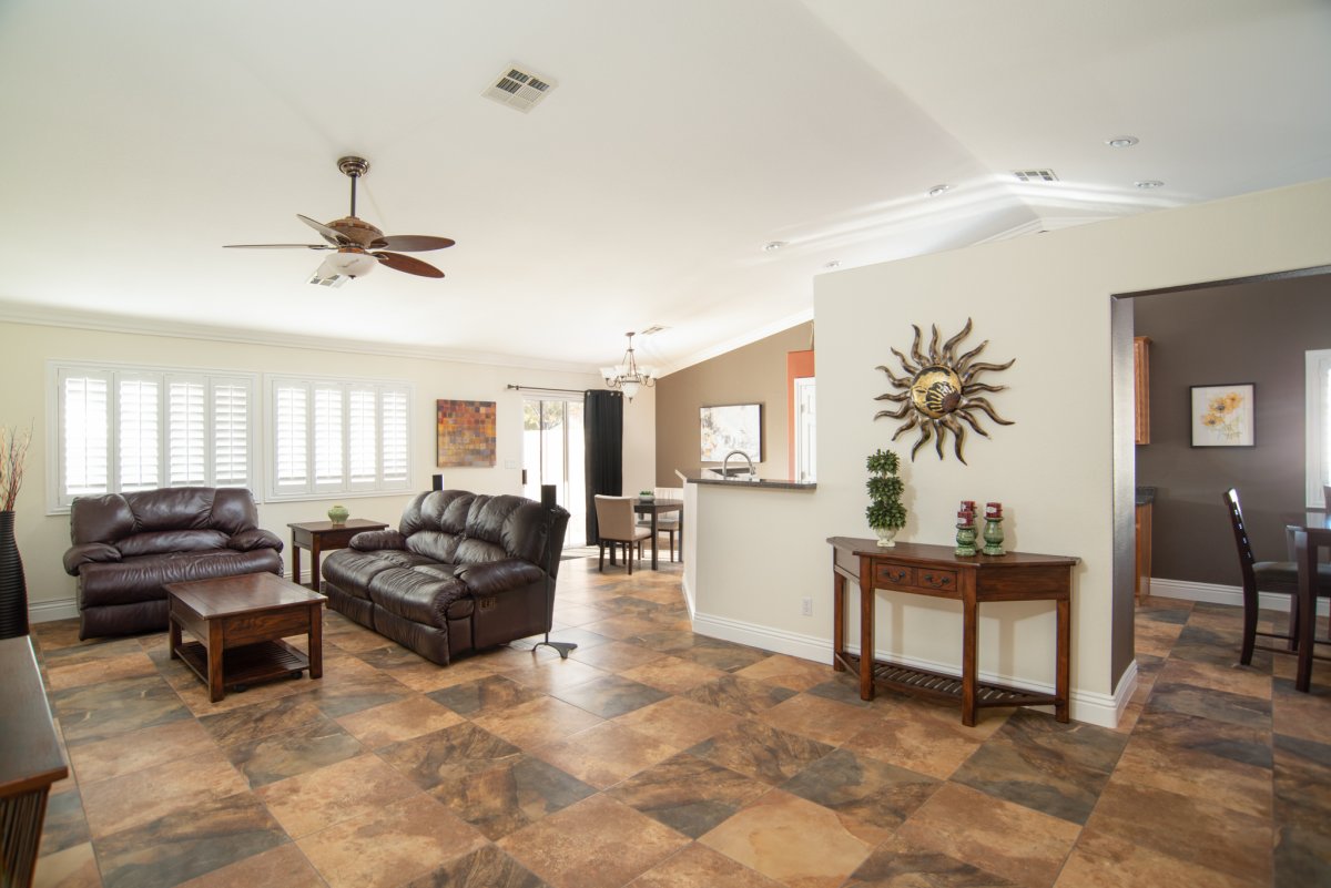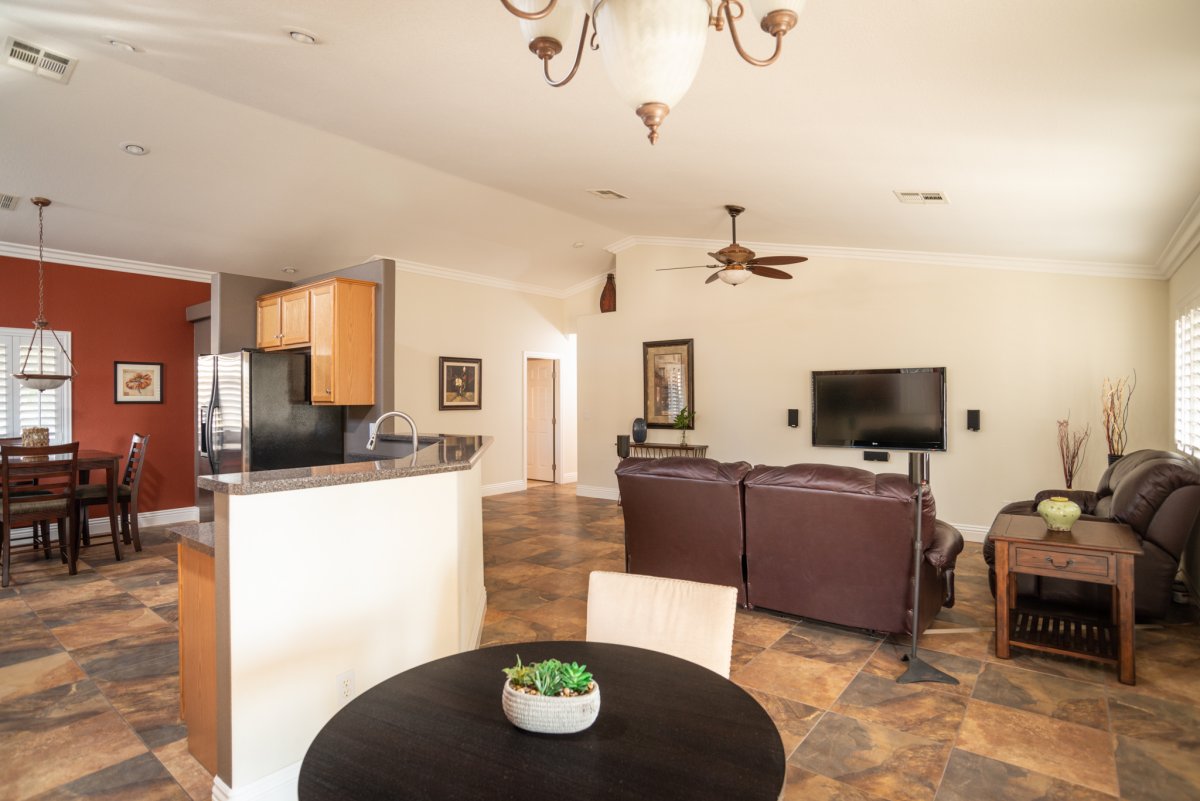 Designer Two tone paint, plantation shutters, upgraded Trim package, Inc crown moldings, and vaulted ceilings. Large Master suite w/ ensuite bath that includes a double vanity and separate tub and shower. Amazing Race Car inspired garage that any car enthusiast or mechanic would be impressed with, features a climate controlled Evaporative Cooler & Heater system, Epoxy floors, 220 Volt Hook ups, built in storage racks & Utility Sink .A Small RV Gate parking area large enough for a boat and toys or parking several cars.