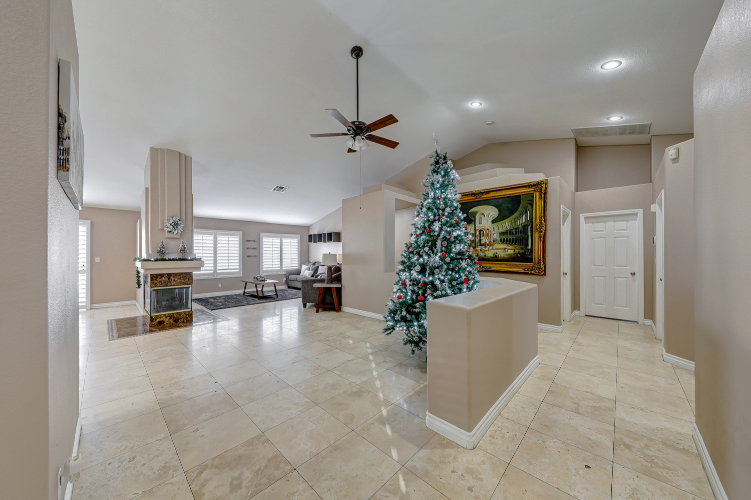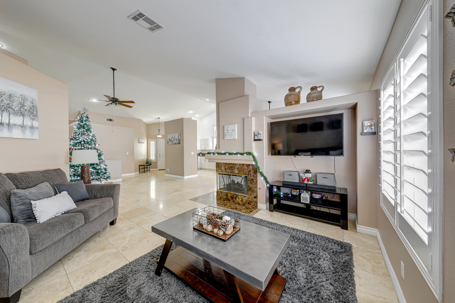 It’s also near two popular golf clubs, Stallion Mountain Golf Club and The Club at Sunrise Golf Course. The adjacent foothills and Sunrise Mountain at the valley’s edge provide beautiful mountain views and give this home the best of both city amenities and natural getaways.