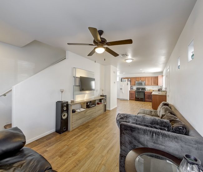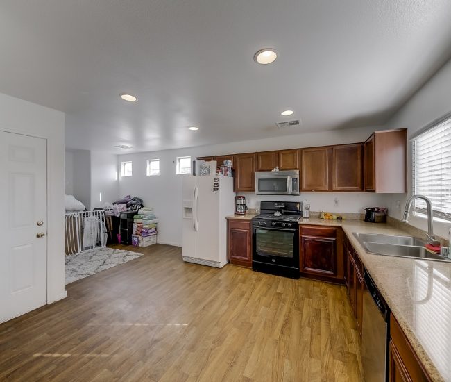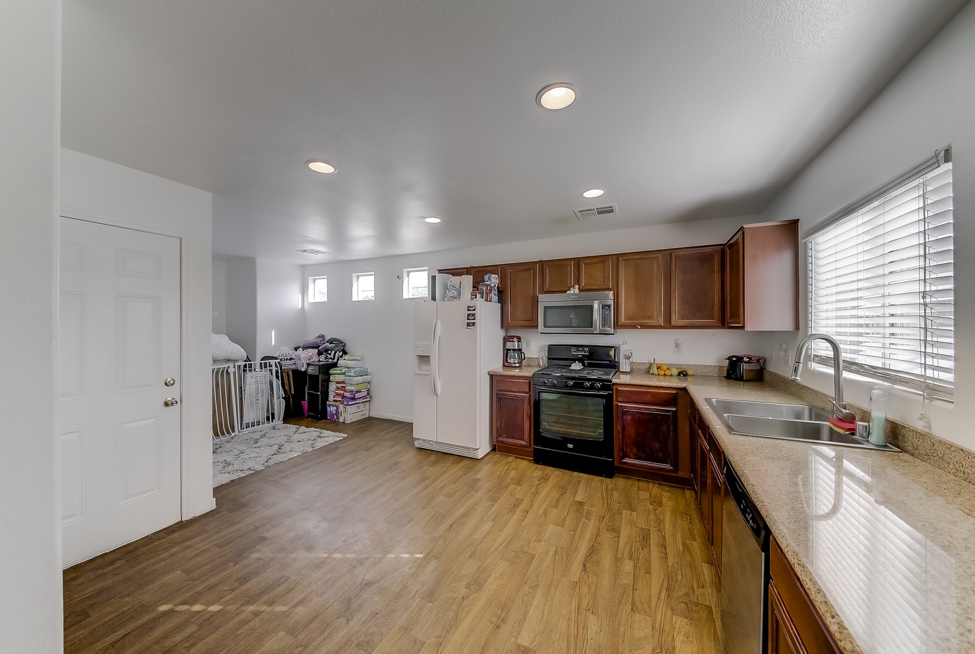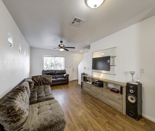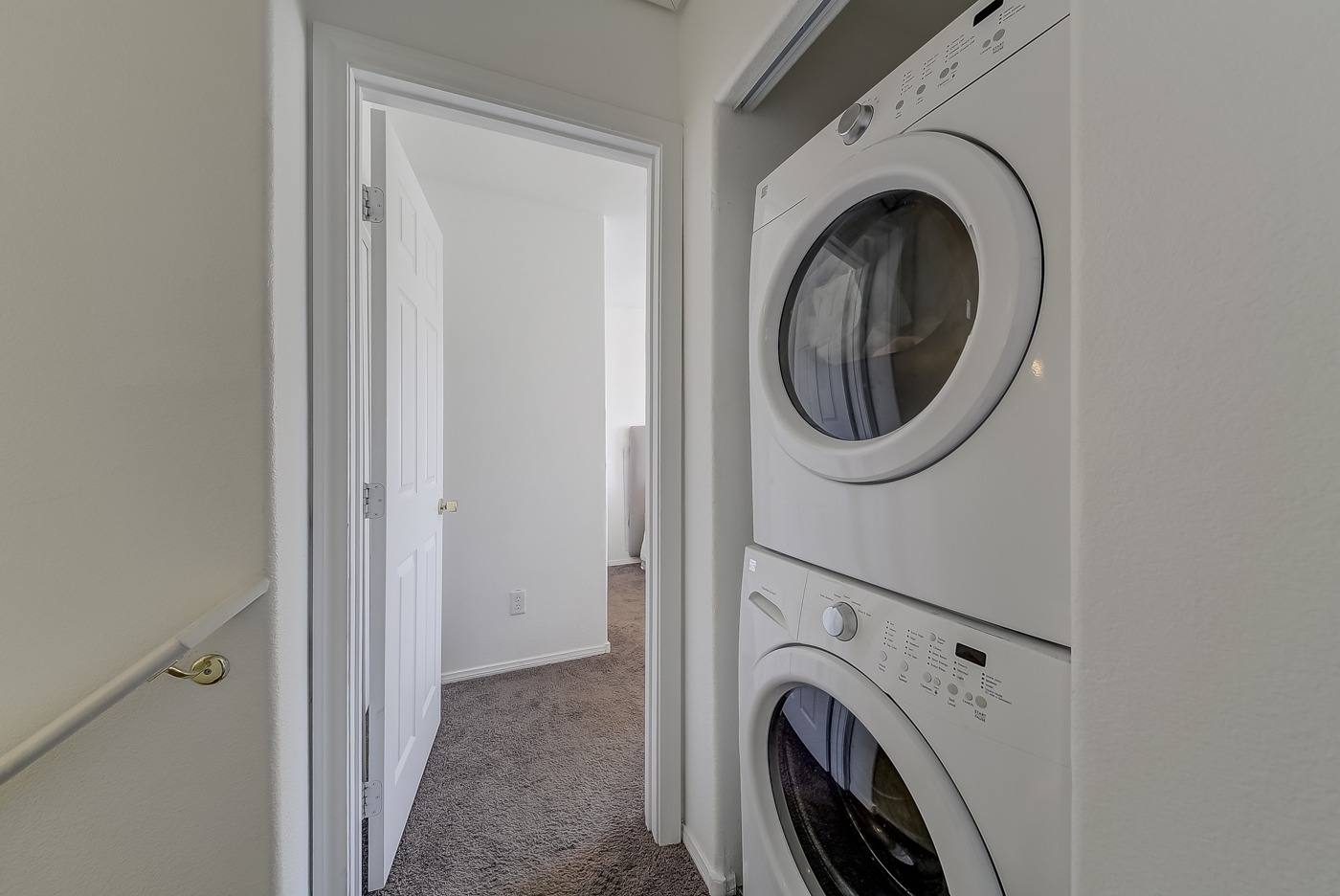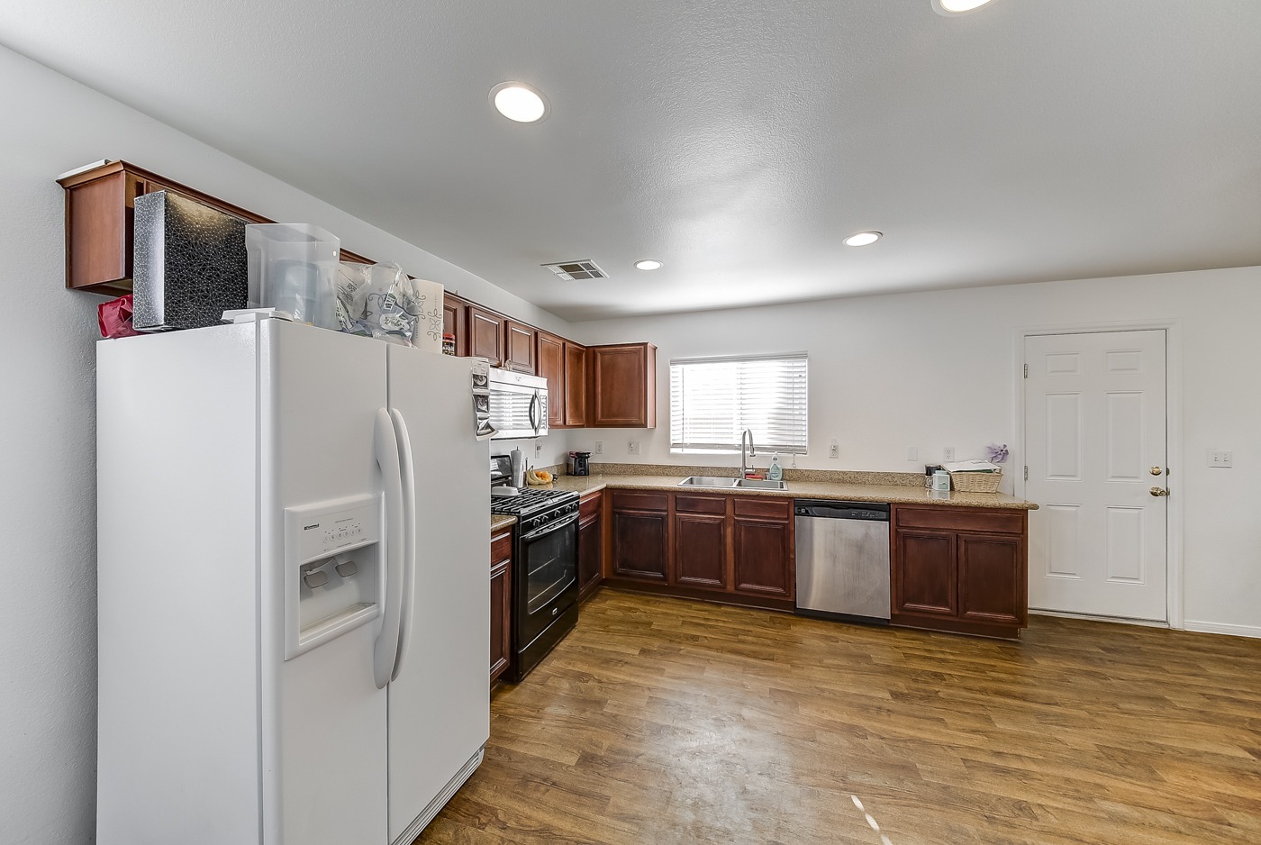 Great investment opportunity! Move-in ready home featuring 3 bedrooms 2 1/2 bathrooms over 1,160 square feet in the East Las Vegas area near Henderson. Open floor plan with upgraded wood laminate flooring throughout the entire downstairs, modern grey laminate in bathrooms, and newer plush grey carpet upstairs. Upgraded light fixtures. Kitchen features granite counter tops, upgraded appliances including stainless steel deep basin double sink, newer appliances and quality Mahogany colored wood cabinets. Large master suite with walk in closet and en suite bath. Upstairs laundry with washer, dryer, and refrigerator included. Remodeled bathrooms with newer sinks and light fixtures. Large backyard and one car garage. Nearby Sam Boyd Stadium, Clark County Wetlands Park, and close to the Galleria Mall shopping center.
