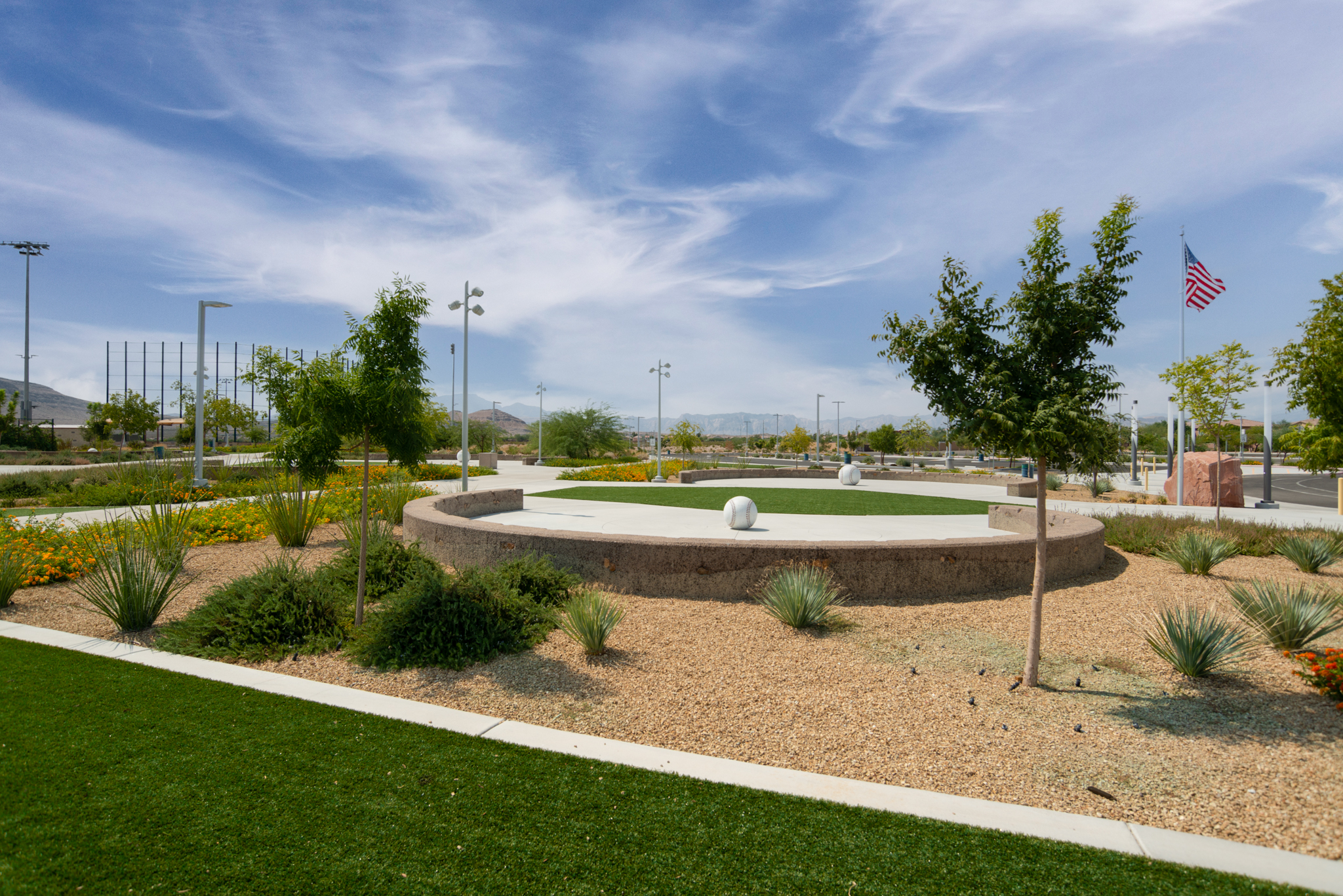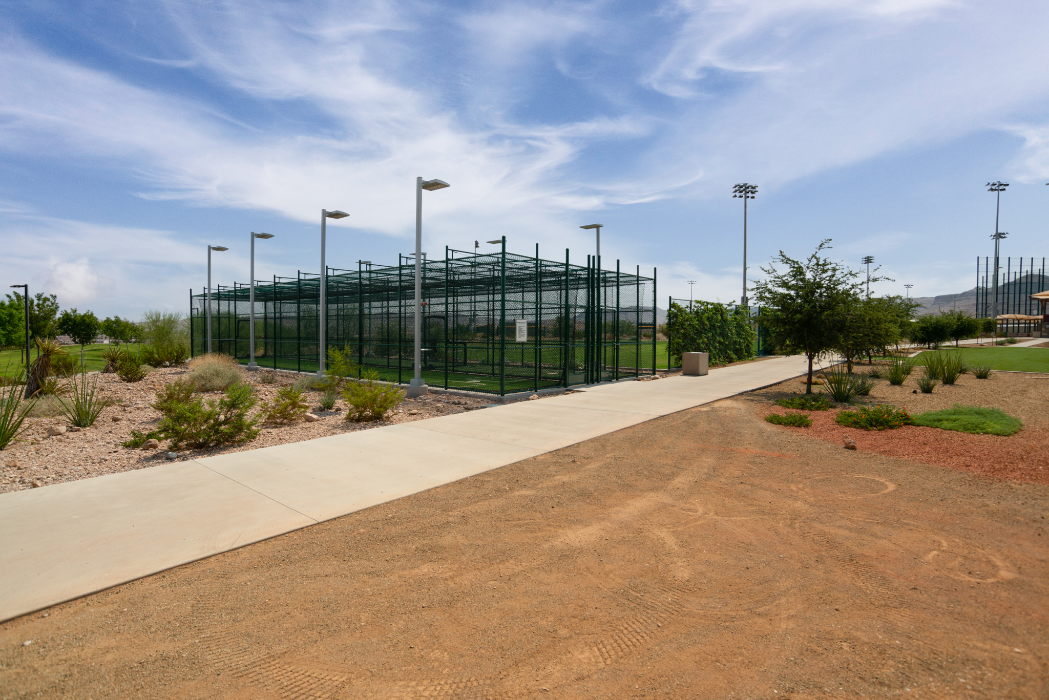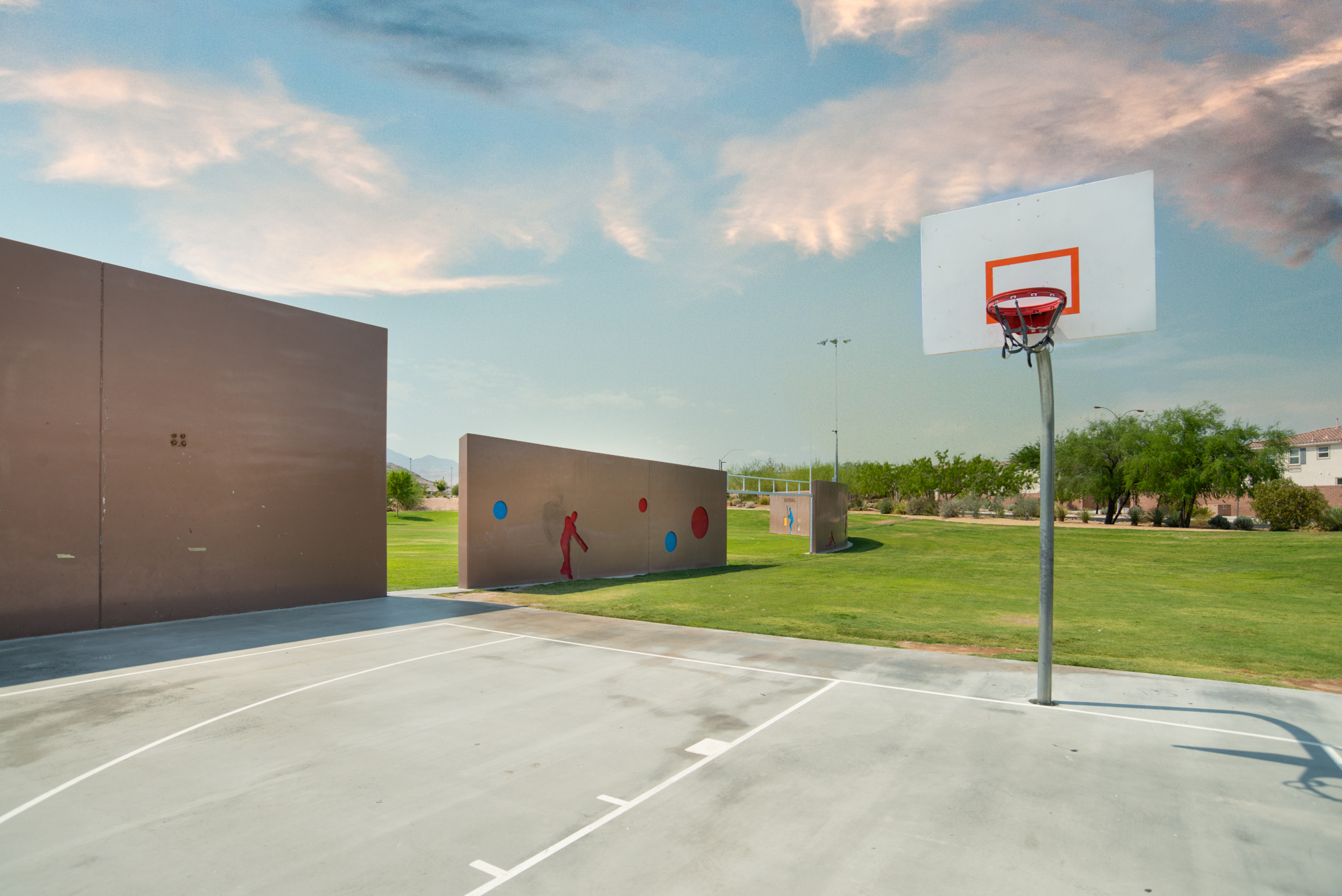 Paiute Park is a newer park in Mountain’s Edge, and it features a multi-use sports field, basketball courts, sand volleyball and tot lot.