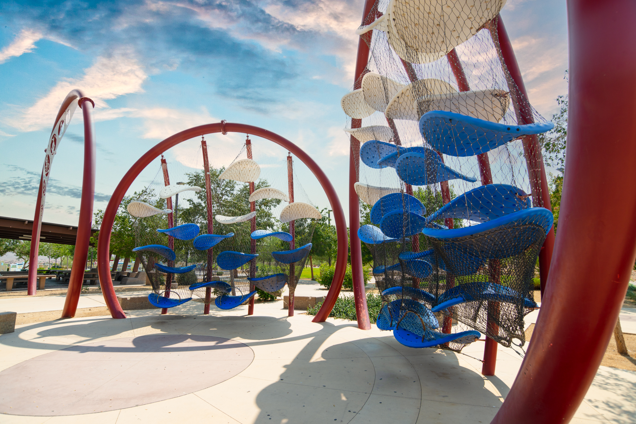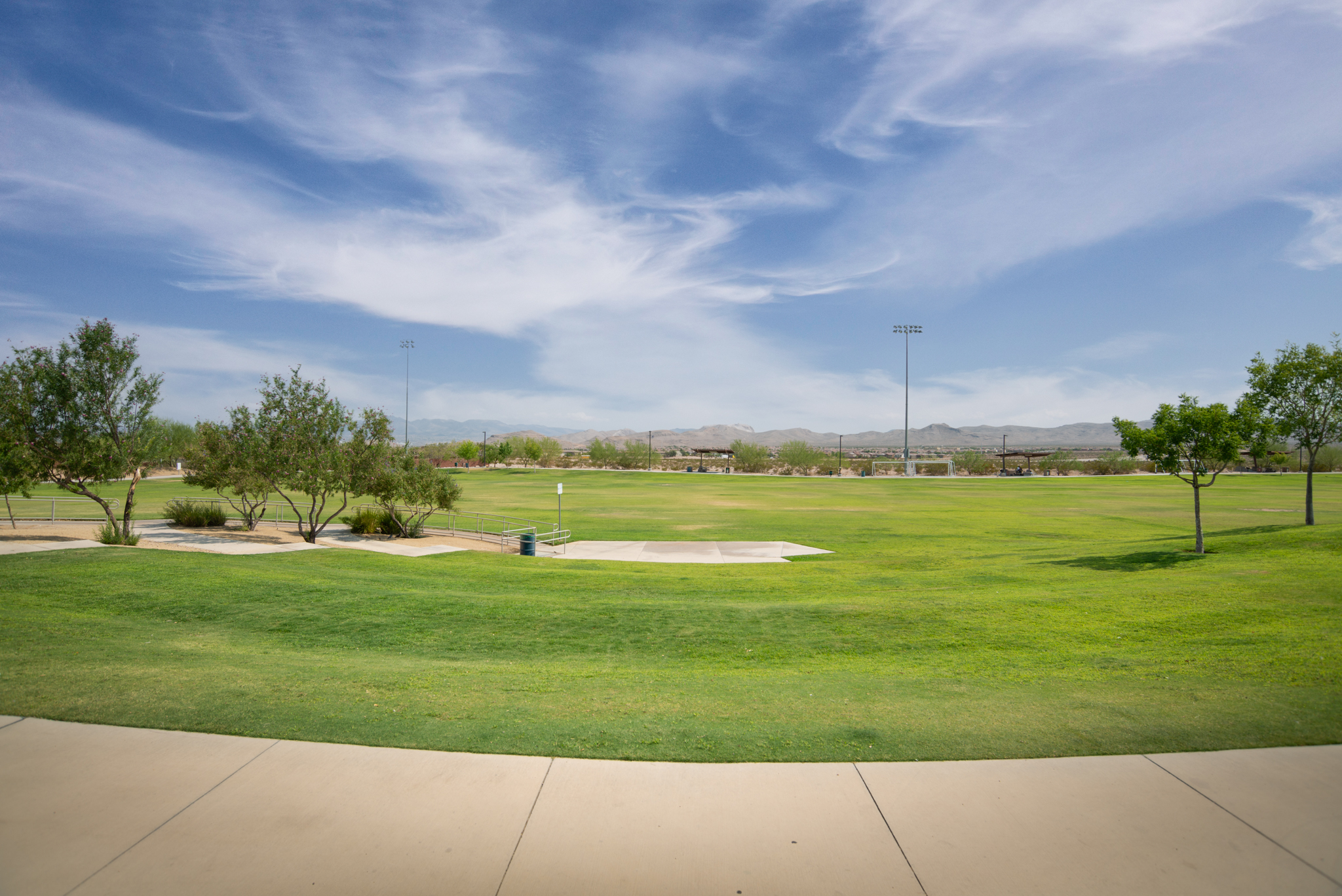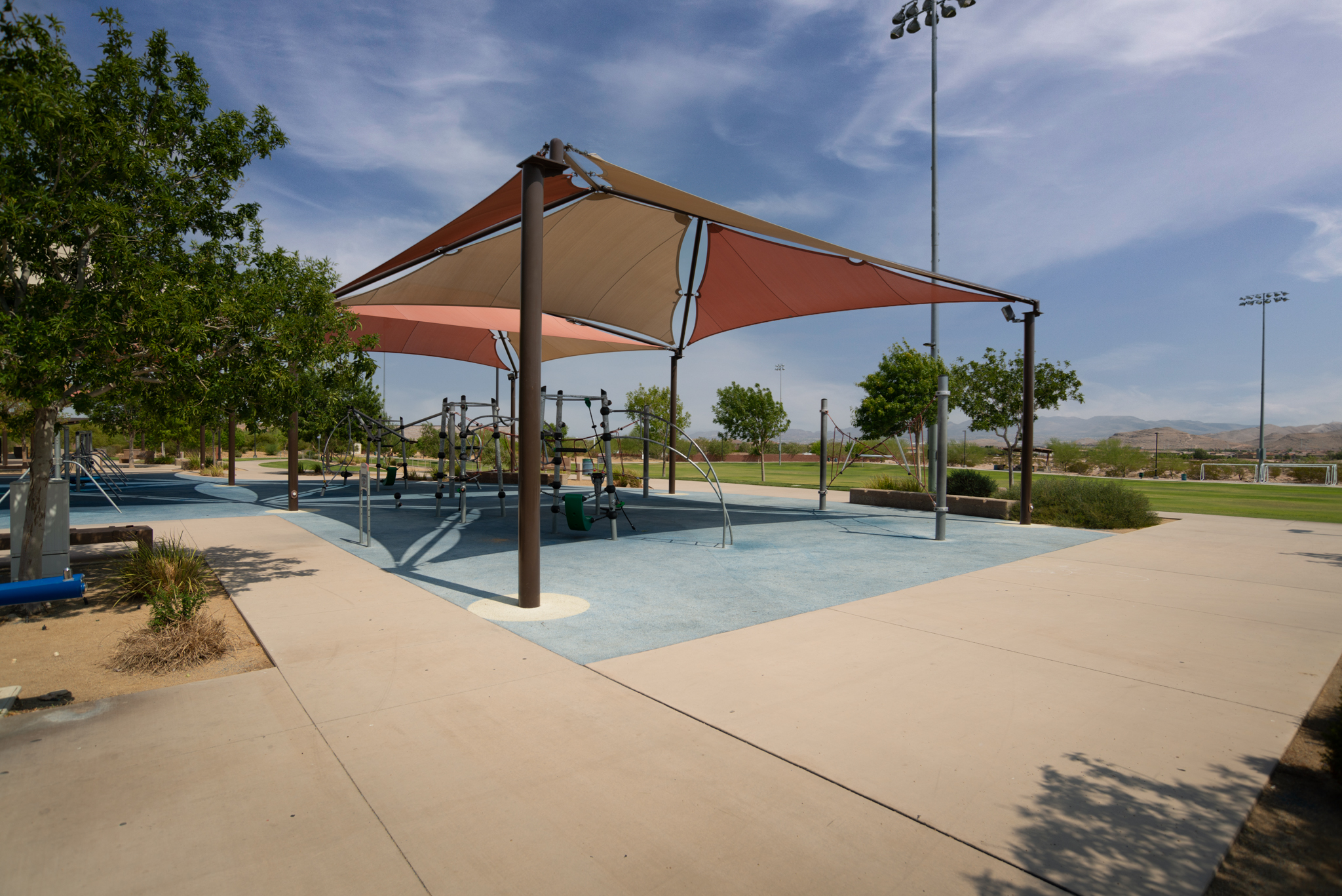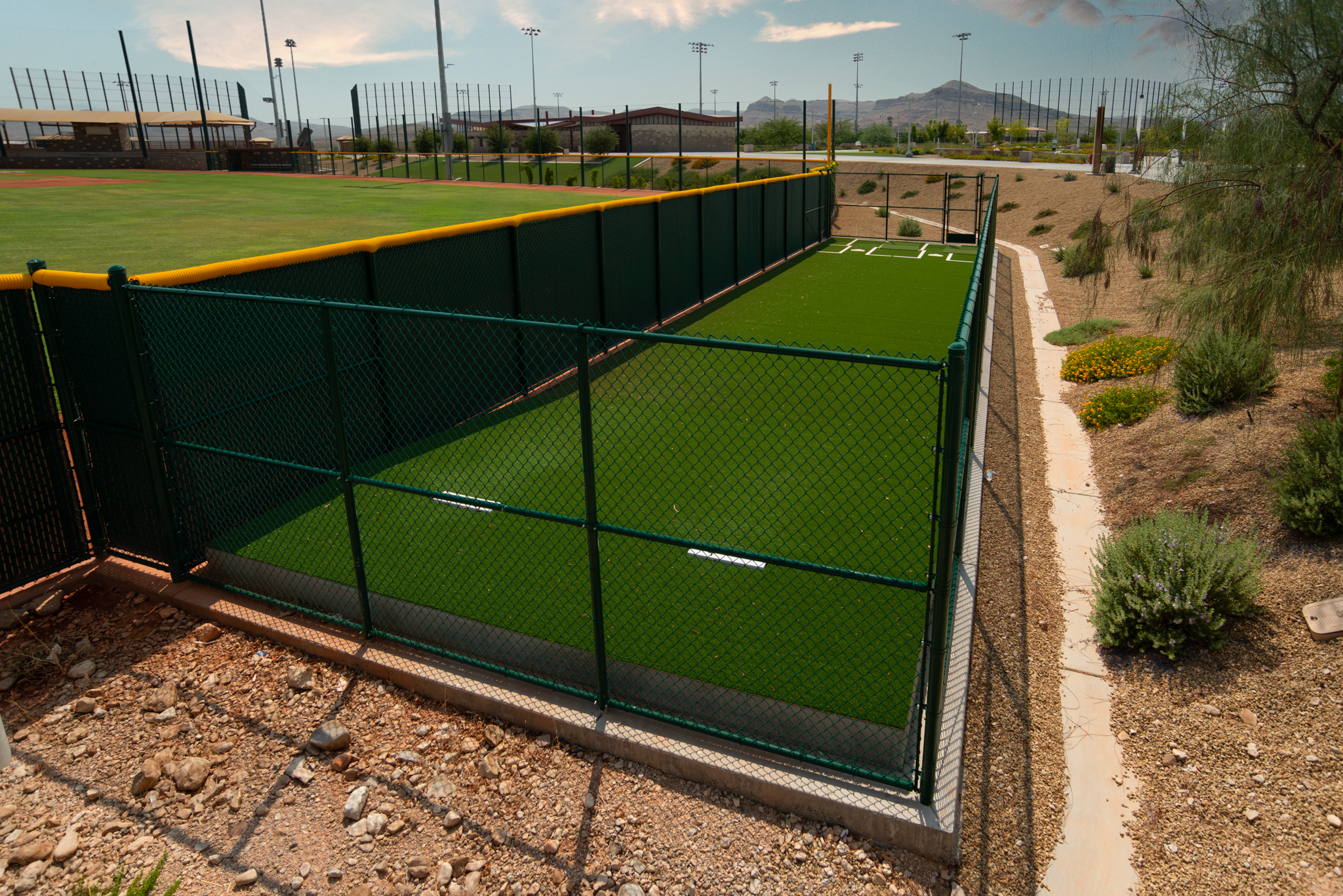 Paiute Park is a newer park in Mountain’s Edge, and it features a multi-use sports field, basketball courts, sand volleyball and tot lot.