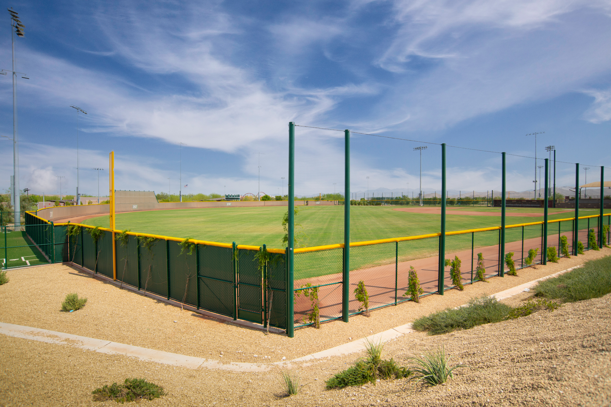 Mountain’s Edge is home to many parks integrated with the natural environment. Exploration Peak, the mountain park at the main entrance to the community, was re-vegetated with close to 10,000 native yucca and creosote plants. The playground is on a 2,800-foot natural mountain with an 80-acre western-themed park at the bottom.