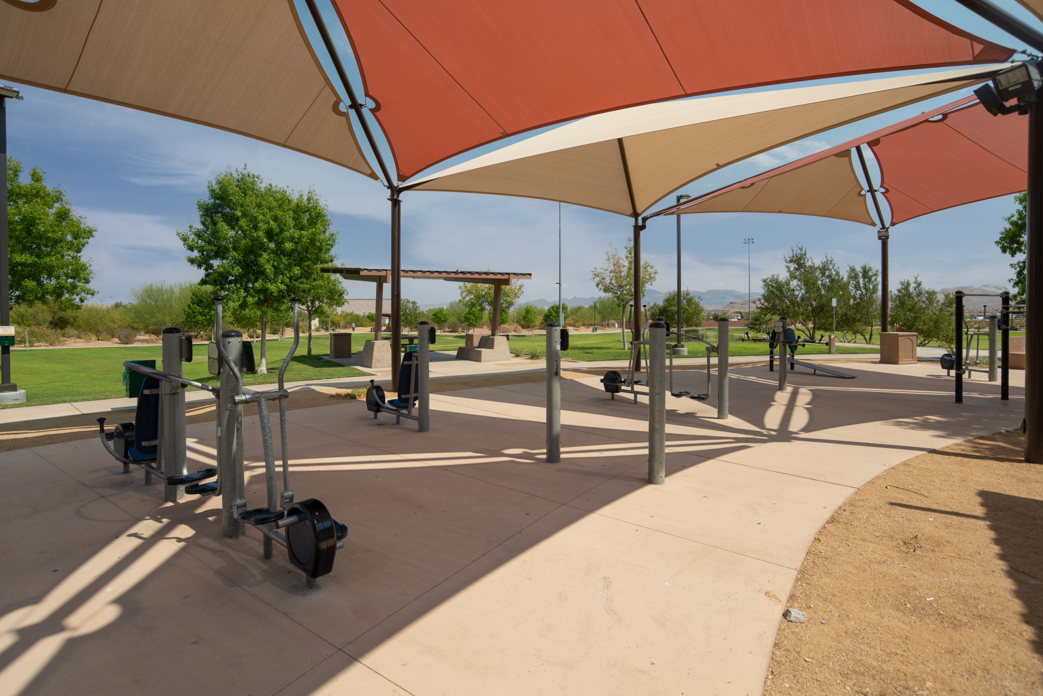 Walking and biking trails lead to scenic mountaintop vistas with a panoramic view of the Las Vegas Valley, as well as the Mountain’s Edge community itself. Other features of Exploration Park include replicas of a western town and Indian village, an archaeology dig site, a water play area and outdoor amphitheater.