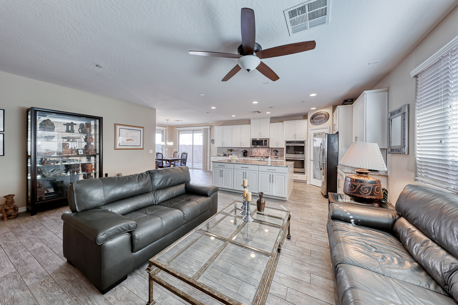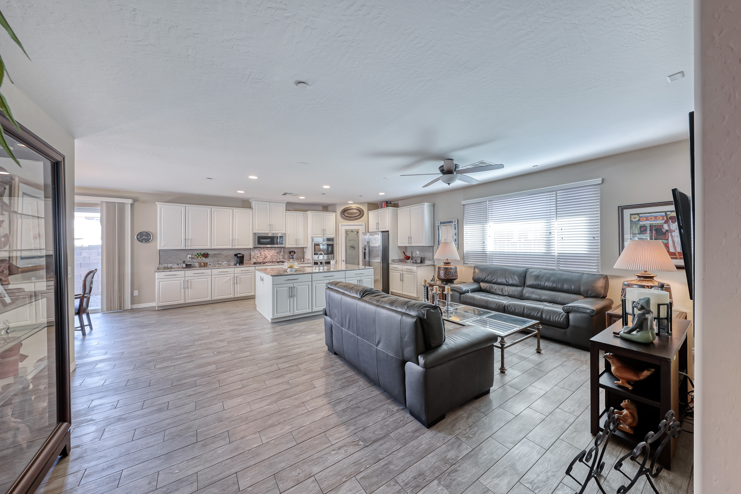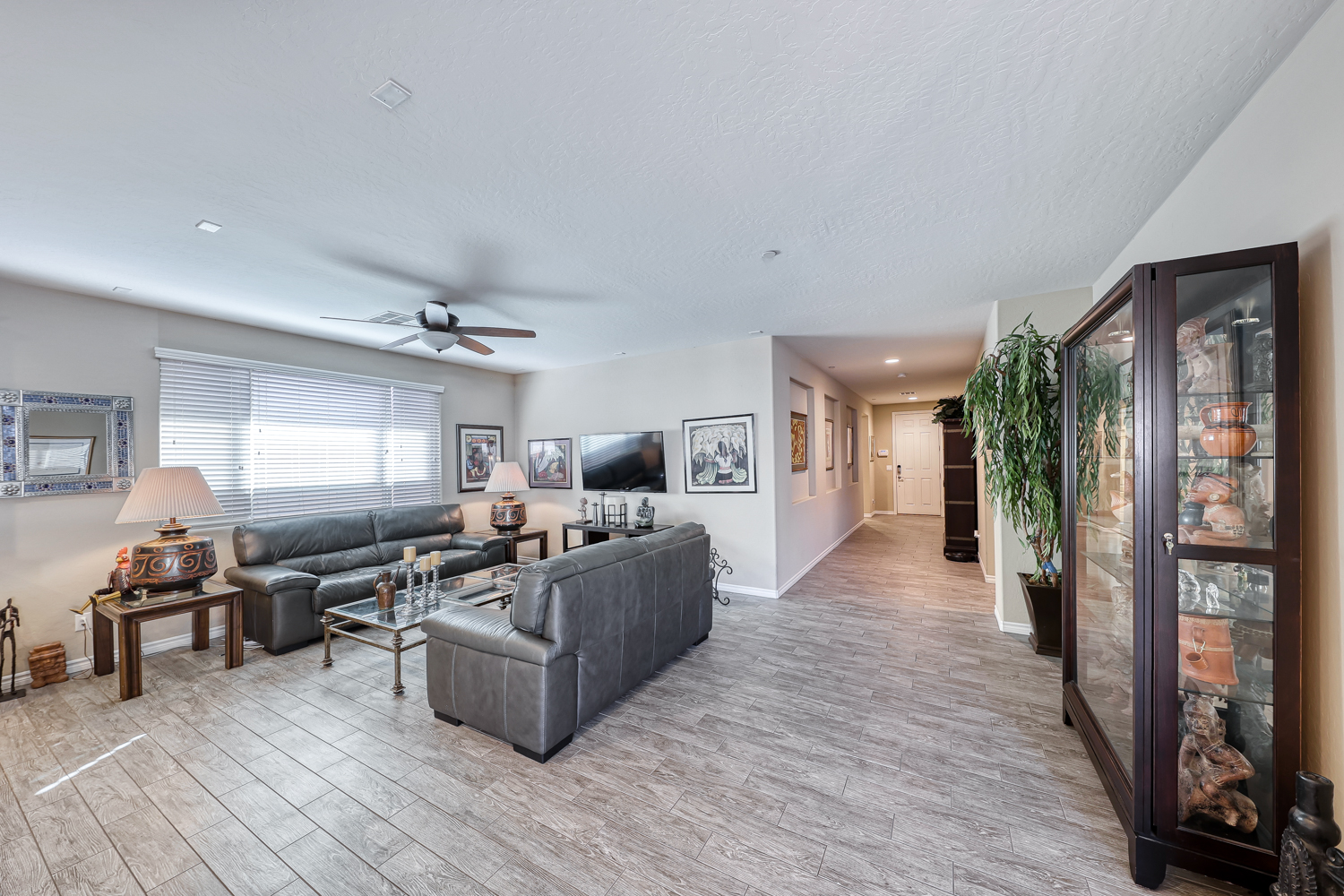 Gorgeous Upgraded wood plank style ceramic tile flooring in all the home except bedrooms.