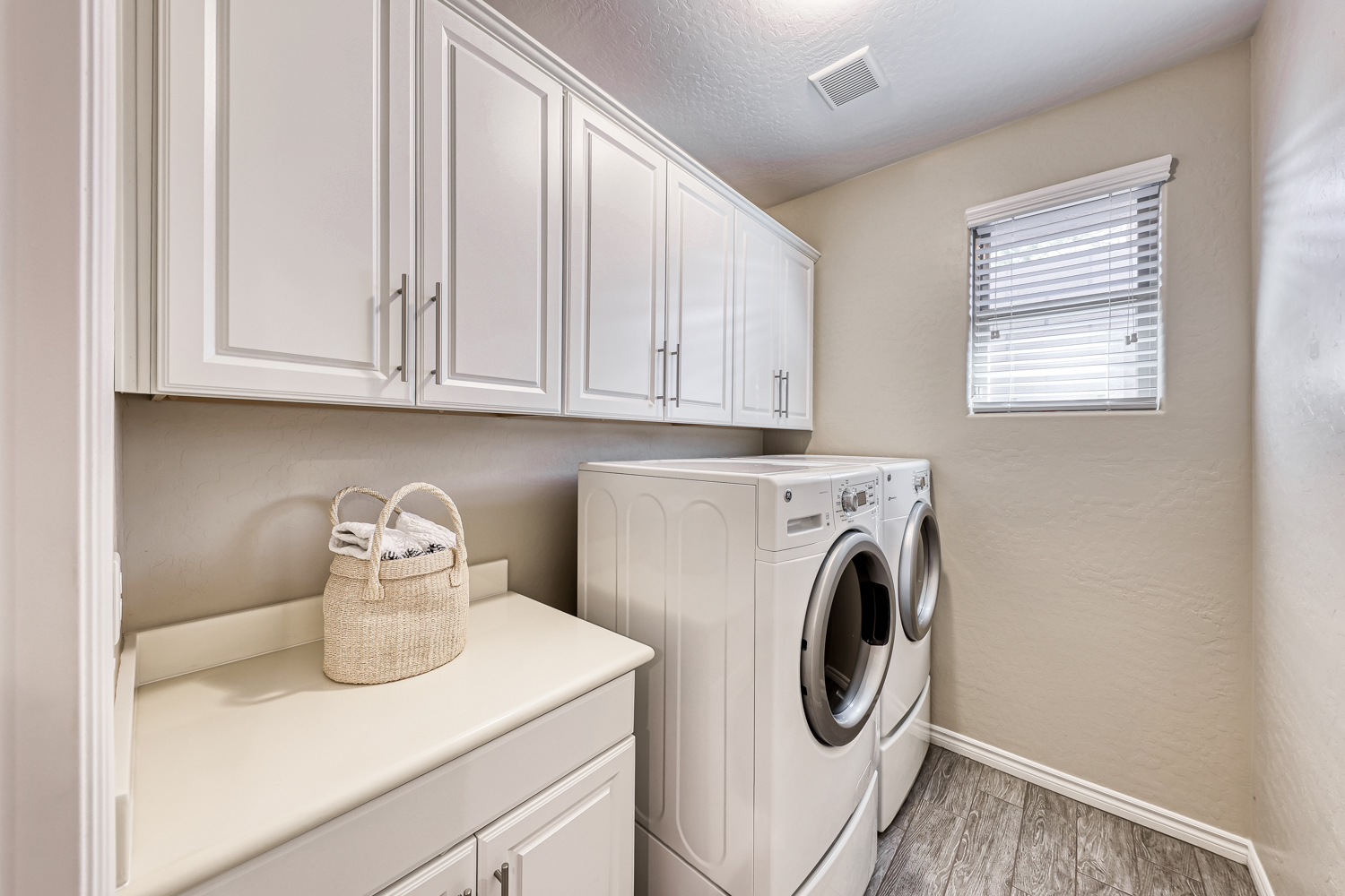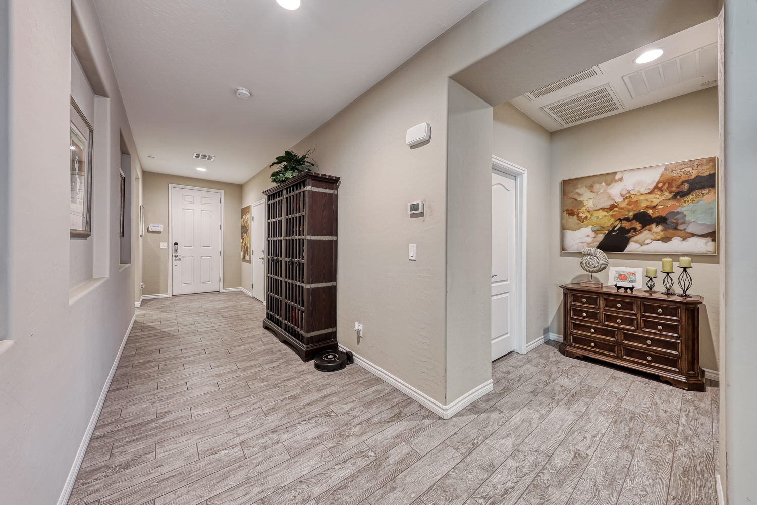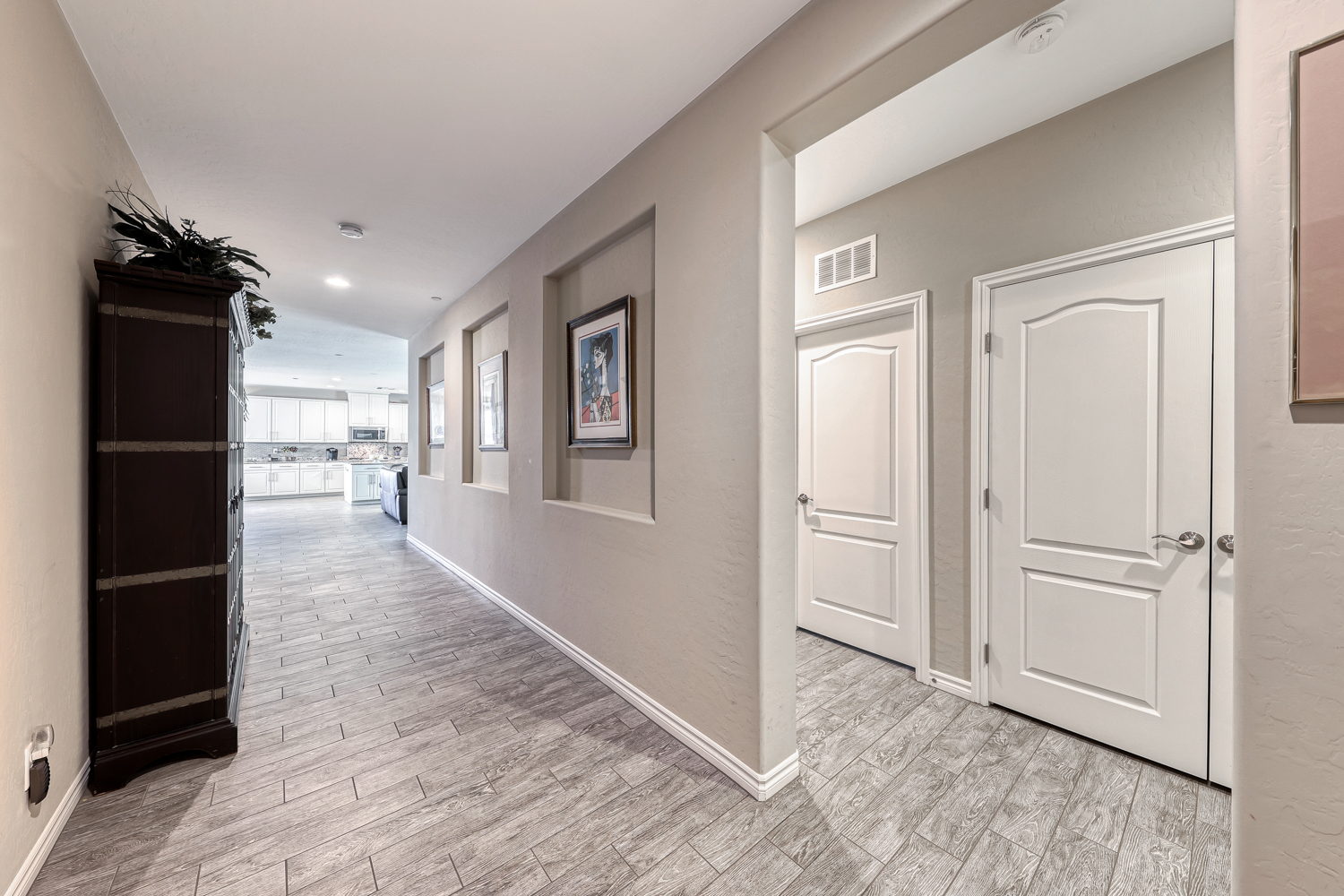 Gorgeous Upgraded wood plank style ceramic tile flooring in all the home except bedrooms.