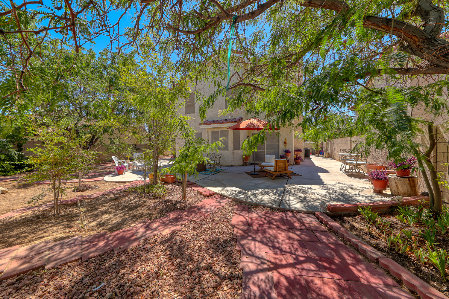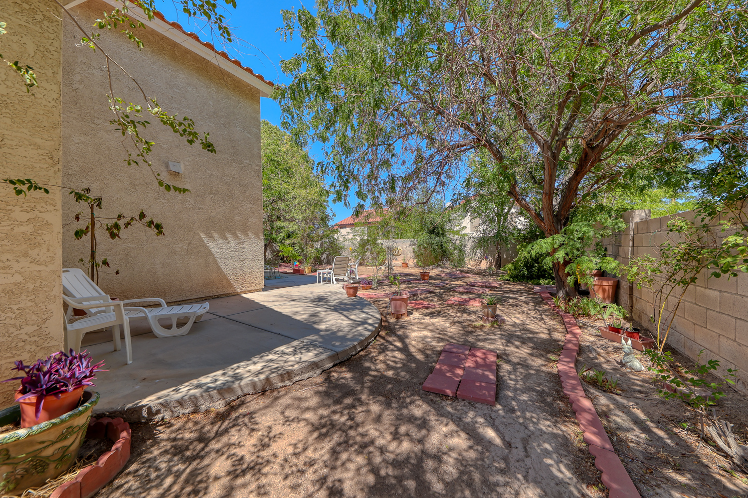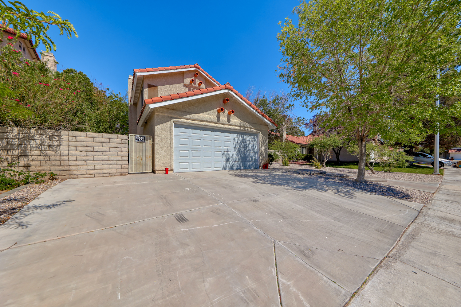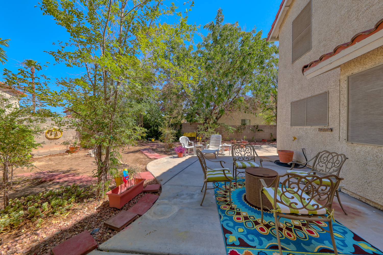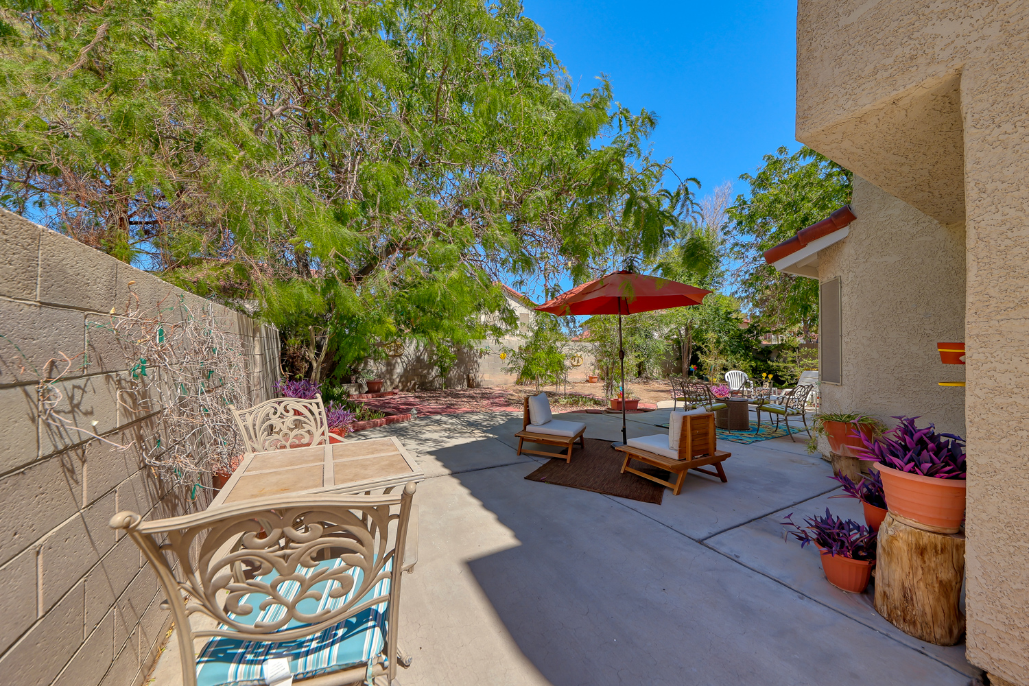 Perfect west-facing exposure creates a cool space for the oversized rear yard. The backyard also features an expanded rear patio with tall evergreen trees that create shade and privacy! Original owner, Las Palmas is a great community featuring community parks and pools for residents to enjoy. Close & convenient proximity to the South Strip, McCarran Airport and 215 beltway.