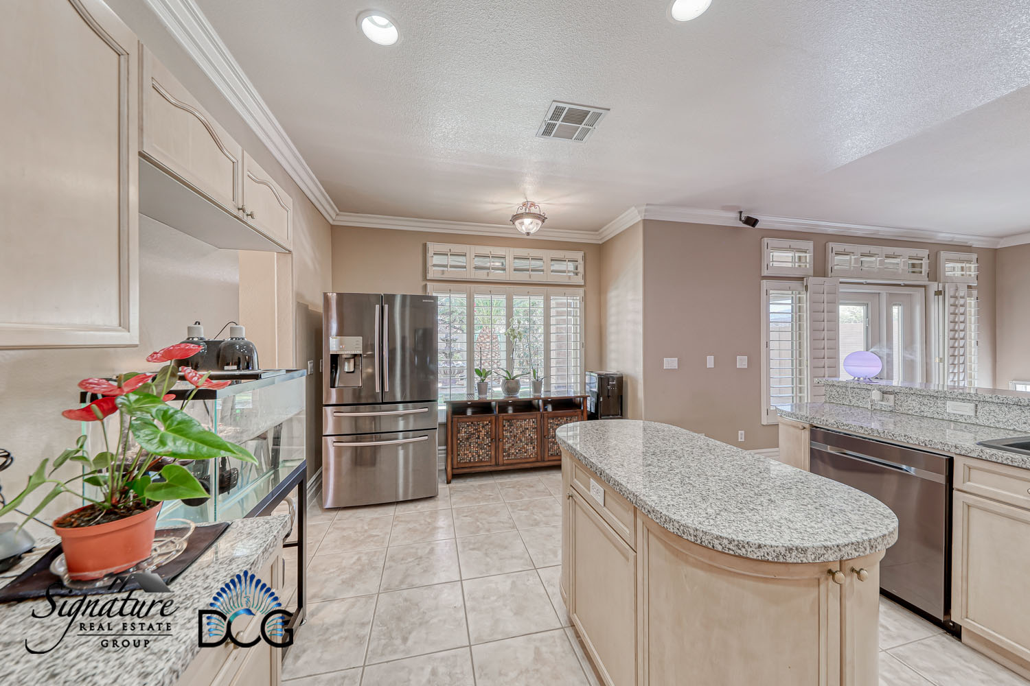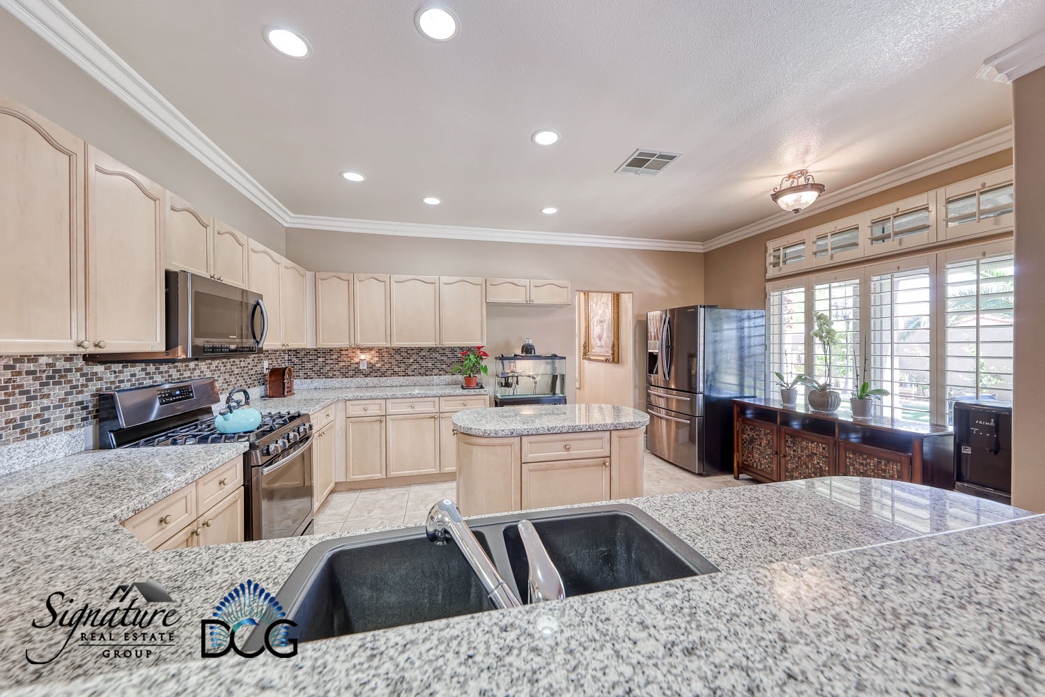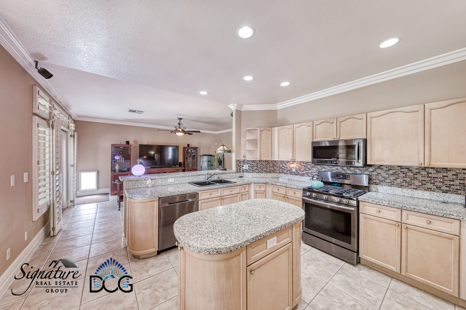 Plantation Shutters on all windows, Great Floor plan, Large Island Kitchen with Maple cabinets, granite counters, and open to the family room & Breakfast Nook, large tile floors downstairs and nice wood flooring upstairs, fully landscaped front and back & and new landscape Irrigation system .