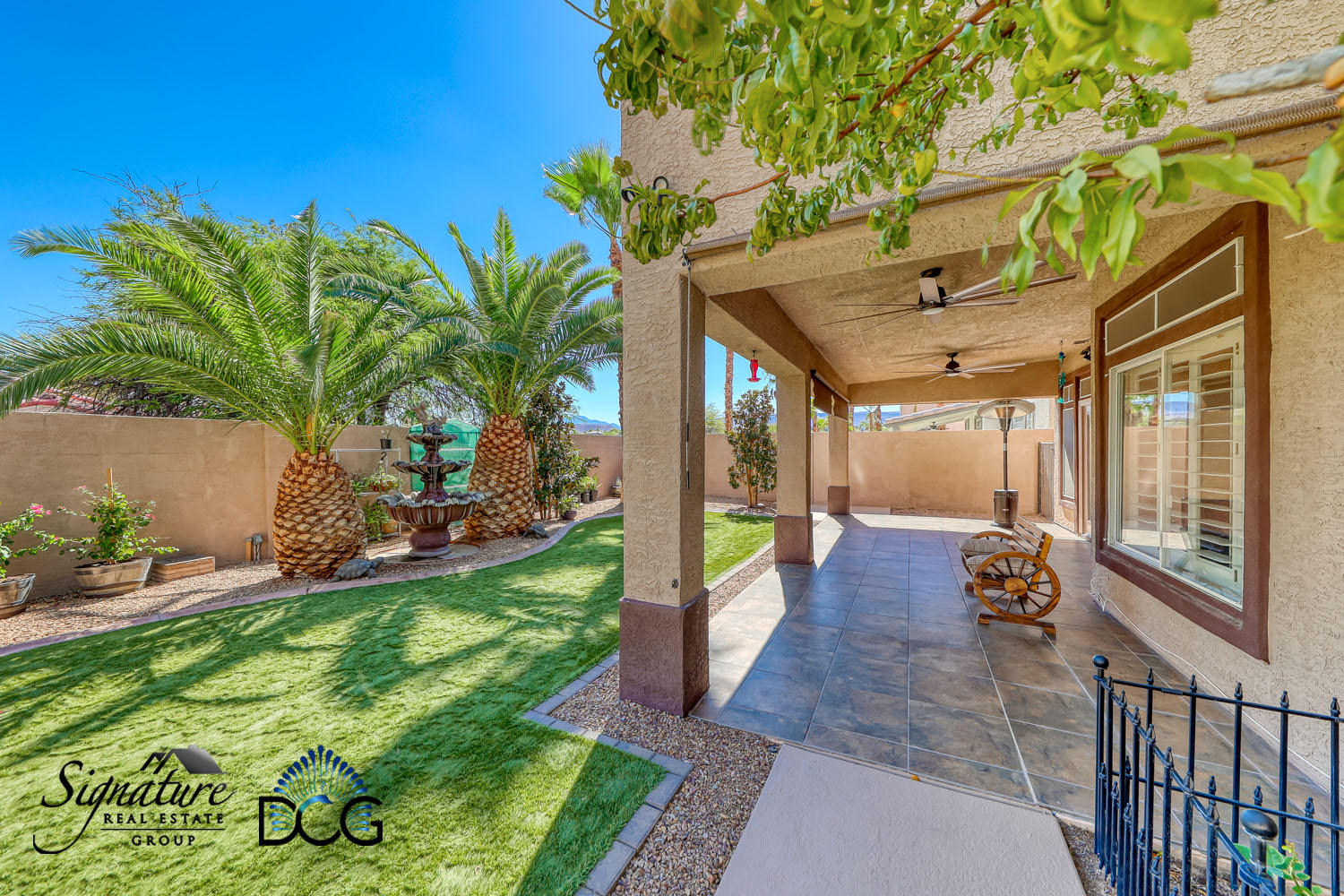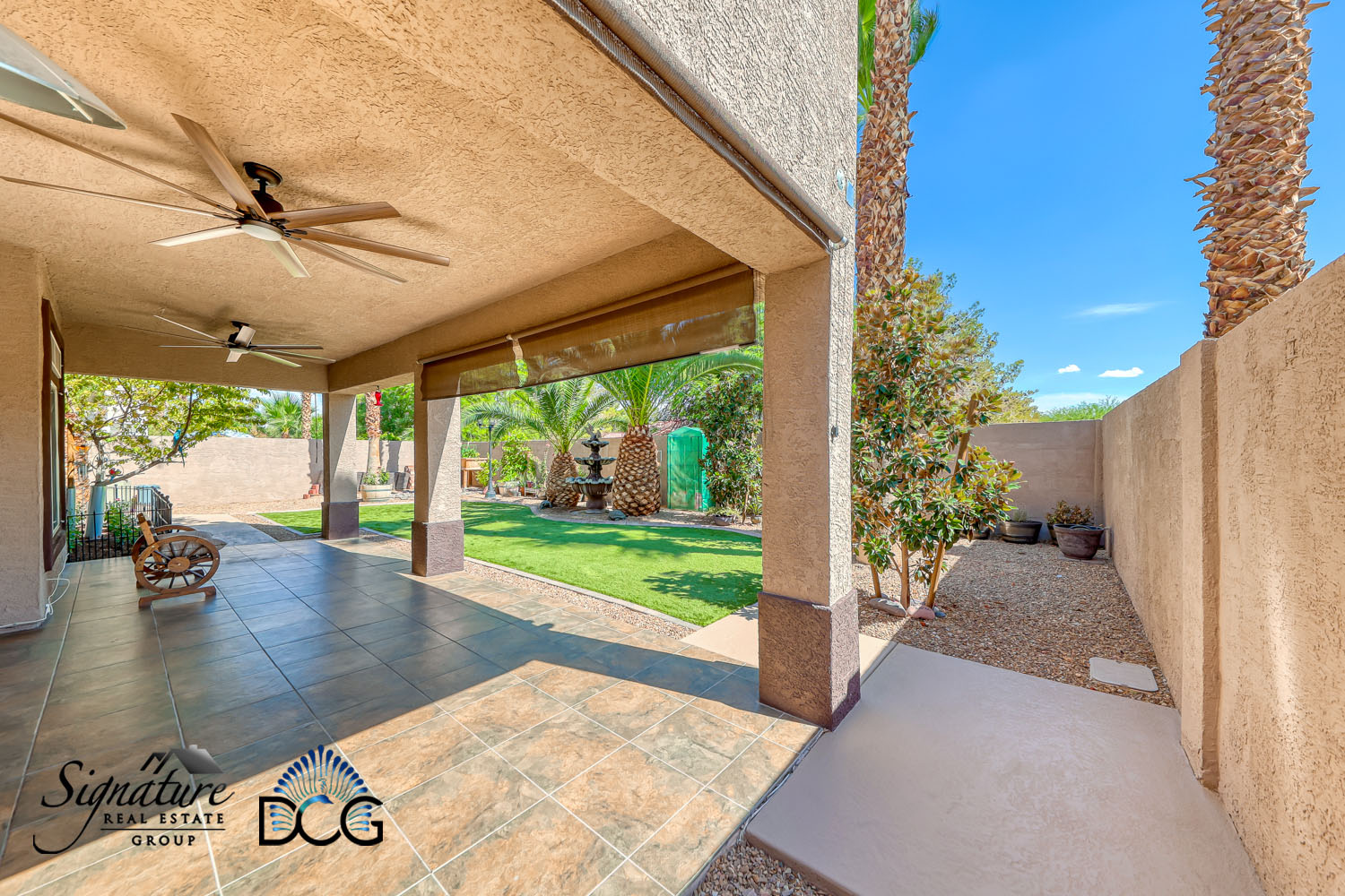 Backyard with a dog run. Full length Covered patio with tile floorings and 2 celling fans for all your enjoyment.