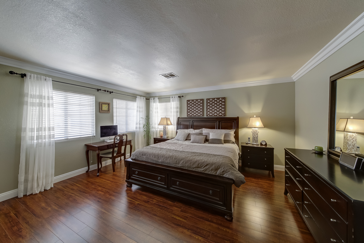 Gorgeous 4 bed plus DEN 2.5 baths almost 2,100 square foot home in the heart of Peccole Ranch. Beautiful tile floors downstairs and wood flooring throughout the entire upstairs. Crown molding throughout. Upgraded modern kitchen with breakfast bar and sunny kitchen nook. Custom white cabinets, hardware and black granite counter tops. Large family room with fireplace and spacious living room w/ upgraded fans and light fixtures. Large master bedroom. Luxury remodeled ensuite bath with glass rain shower, new soaking tub, white quartz counters and white cabinets. Renovated downstairs bathroom with new white cabinets and black granite counter tops, and upstairs bathroom with new cabinets and sink/ faucet. Newly remodeled fully heated pool/ spa with relaxing multi color lighting and new energy saver pool pump. Mature desert landscaping in the backyard, paved stone walkway and extended patio. Amenities for residents of Peccole Ranch include access to tennis courts, volleyball courts, a community park, walking trails and nearby golf. Close access to the Sahara library, schools, and shopping centers.