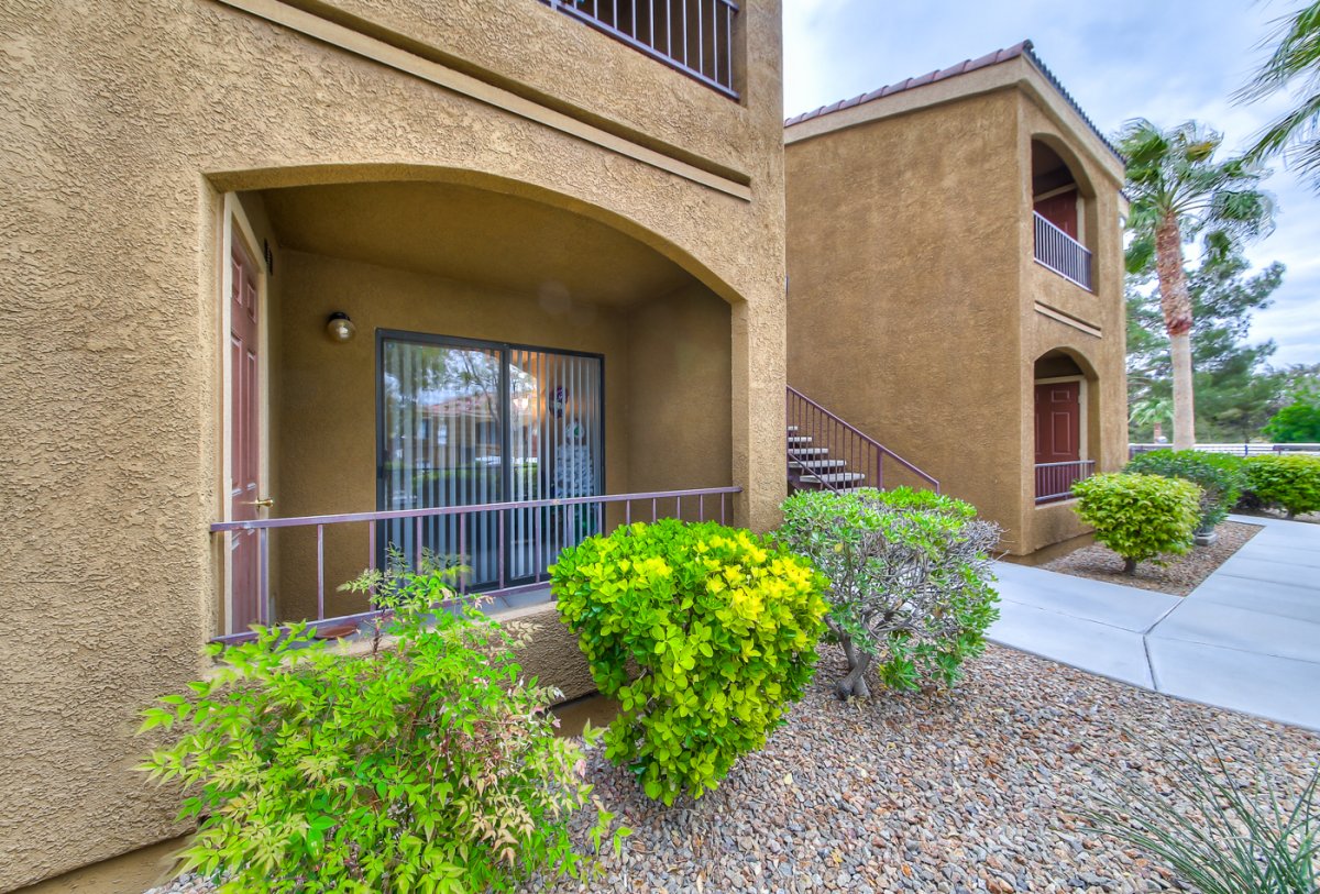 Adorable gated 1 bed 1 bath, hard to find ground-level condo with private garage and covered parking space in the beautiful Horizons at Seven Hills. Newly upgraded wood style laminate flooring and open concept great room that leads to the covered balcony with views of the lush community landscape and garden area. Kitchen features gas stove, microwave and stainless steel sink with spacious separate dining area and great sit down breakfast bar. Large master bath features garden tub, combo shower and newer vanity with chrome faucet. Unit includes 1 car garage as well as additional covered parking. Amenities are just a step away including a Clubhouse, Swimming Pool / Spa, Covered Seating by Pool, Family Friendly Playground, and Fitness Center. HOA covers water, sewer, and trash expenses. This condo is conveniently located by multiple vibrant shopping centers, Costco and the Seven Hills Allegro Park nearby.