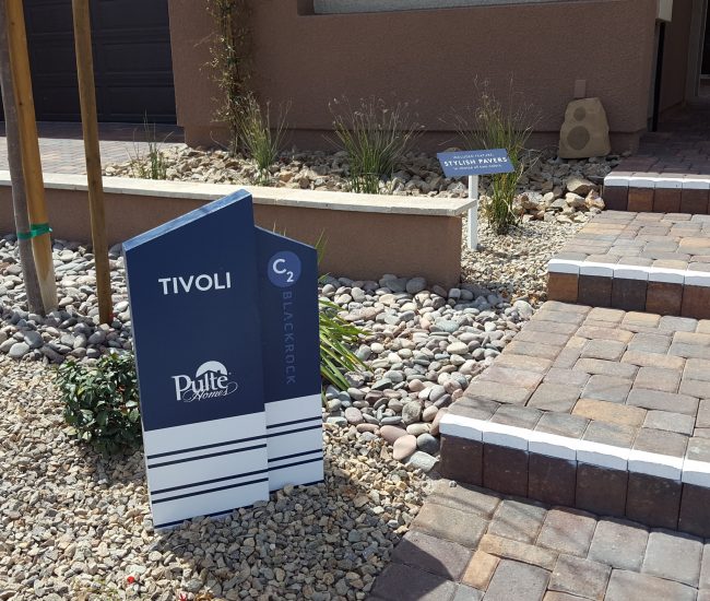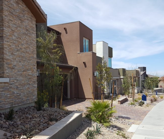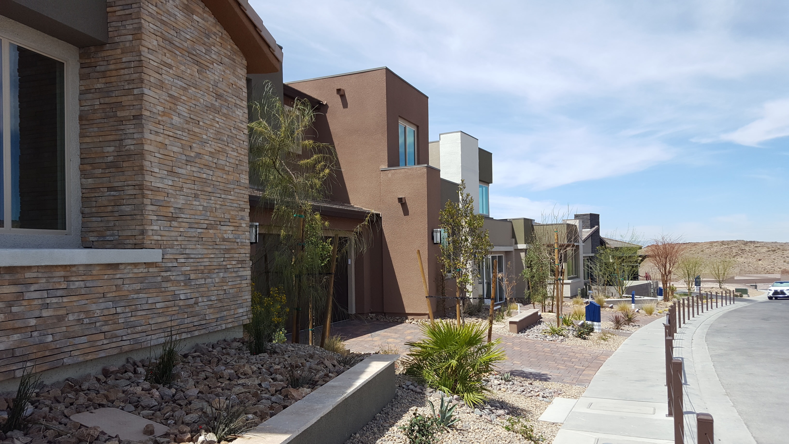 As you can see by the photo below, Pulte homes has just started construction on their new Blackrock development at the south end of Canyon Heights Dr in Henderson. Lets start right off with $60 per mo HOA fees! This really surprised us considering the quality of the new homes and the views of the city to the north.