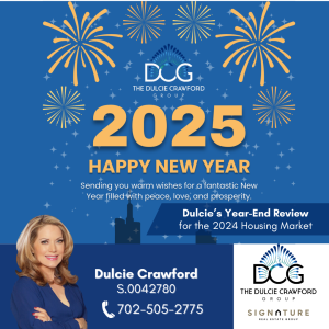 Blog ThumbnailsFeatured Photos (2) By Dulcie Crawford|2024-12-31T11:50:14-08:00December 31st, 2024| Share This Story, Choose Your Platform! FacebookXRedditLinkedInWhatsAppTumblrPinterestVkEmail Dulcie Crawford NV Lic #S.0042780 Signature Real Estate Group Buyers: 702.505.2775 Sellers: 702.505.2775 Office: 702.568.2530 Get Directions to My Office: 2200 Paseo Verde Pkwy Suite 300A, Henderson, NV 89052 FREE Real Estate Market Report Get in Touch