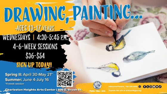 For families and young artists, Las Vegas offers enriching classes designed to build artistic skills and encourage creative expression. Local artist Mary Homan leads foundational painting and drawing classes at the Charleston Heights Arts Center, providing a fun and supportive environment for youth to explore their creativity and develop confidence.